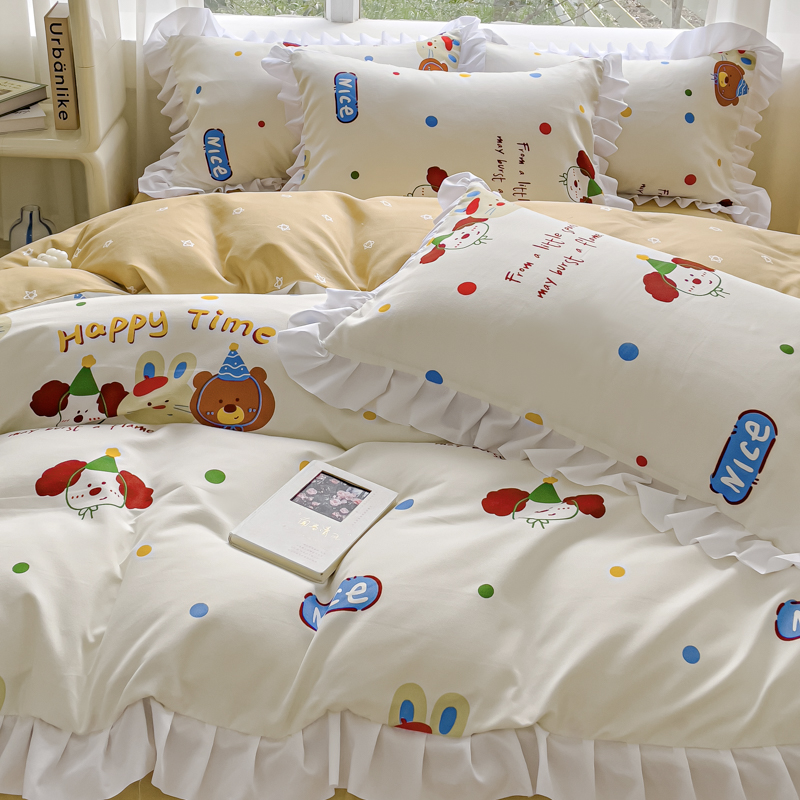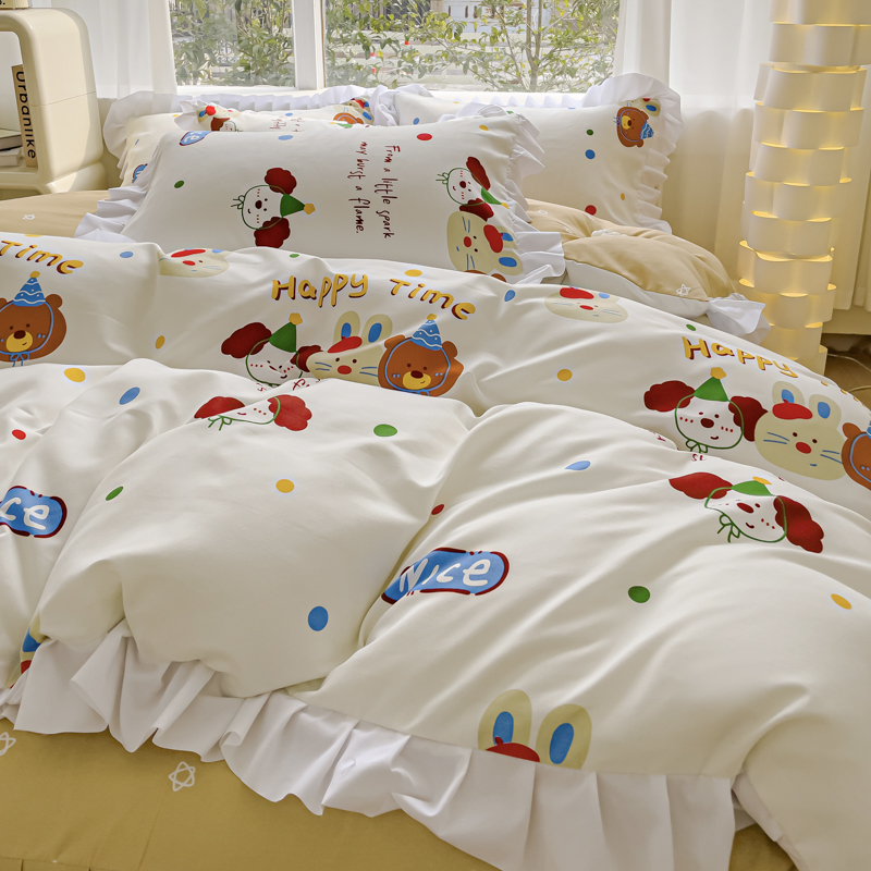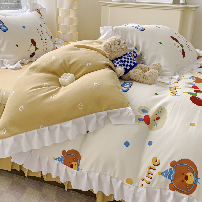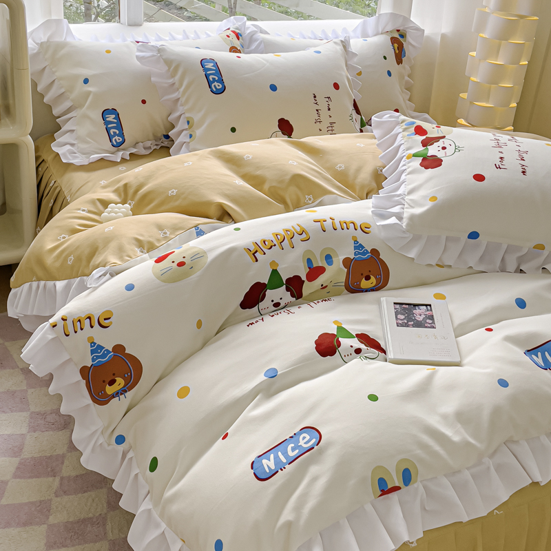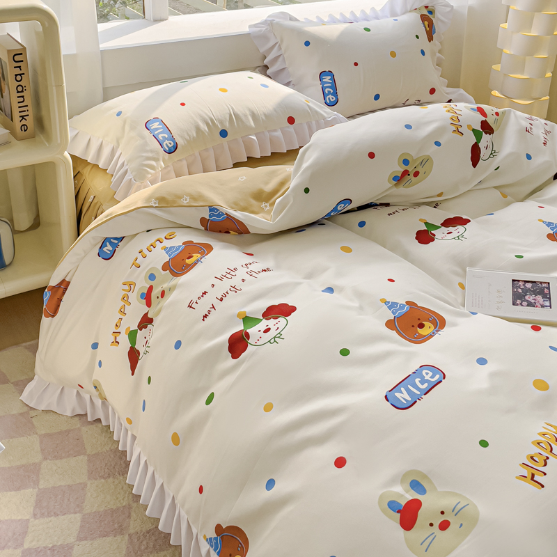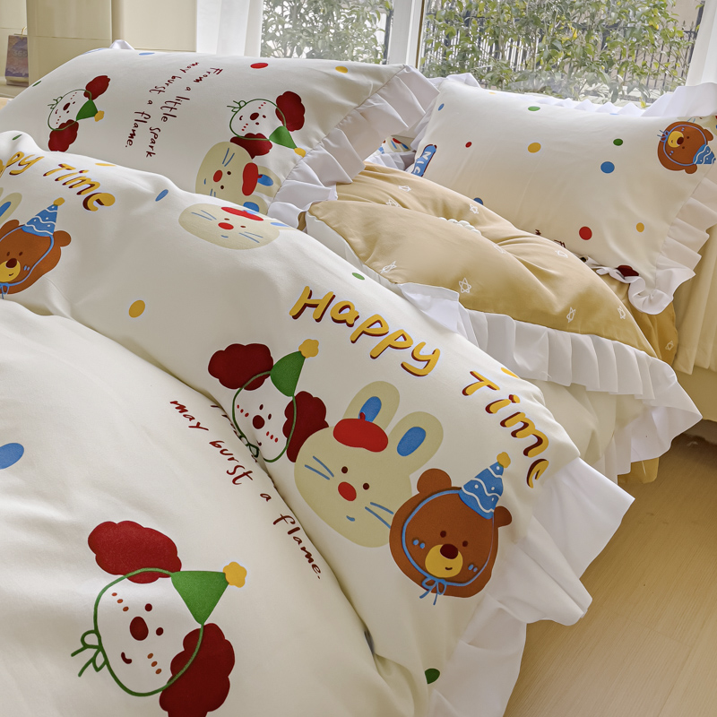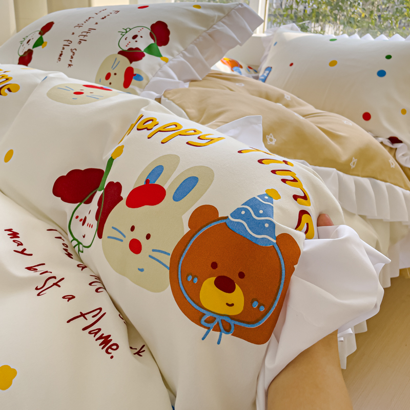 (总)麦瑞家纺 2024新款韩版公主风花边四件套,花园兔,熊宝贝,桔小花,汪星人,cat猫,可爱小熊,小葡萄,紫色兔兔,甜心世界,元气桃桃,晴空,童年游戏,摩登天空