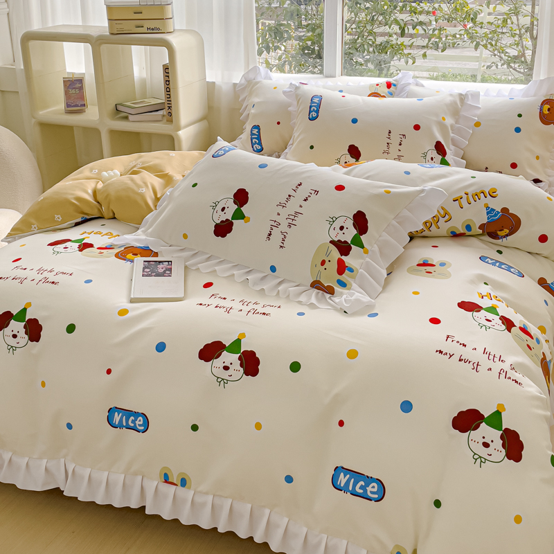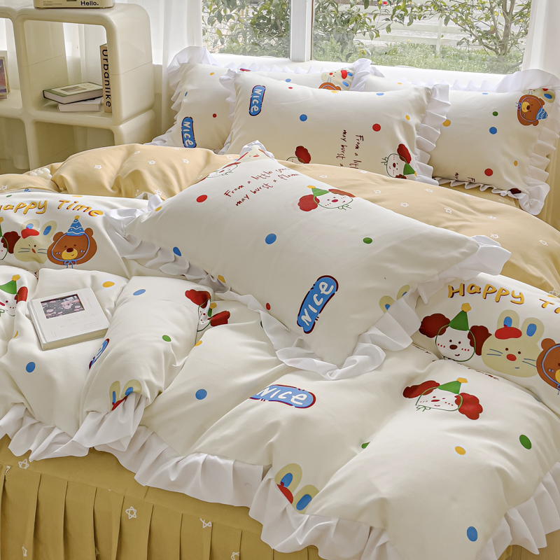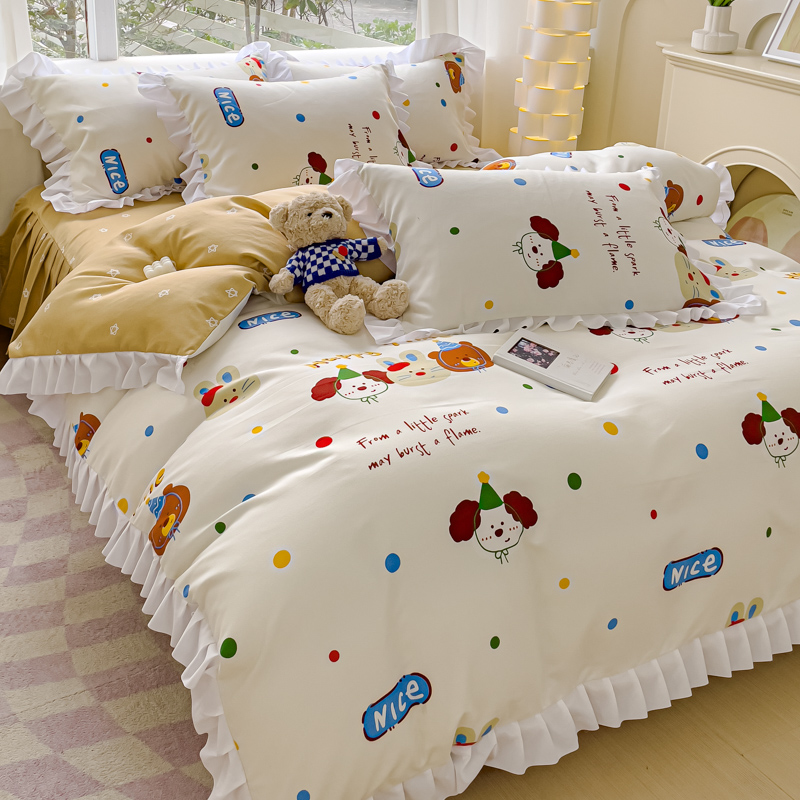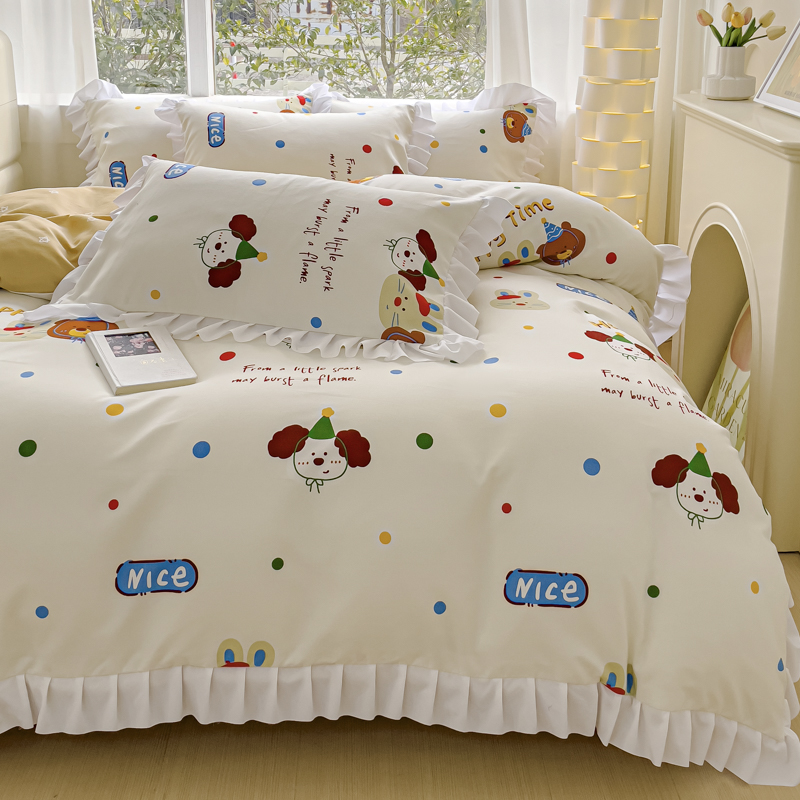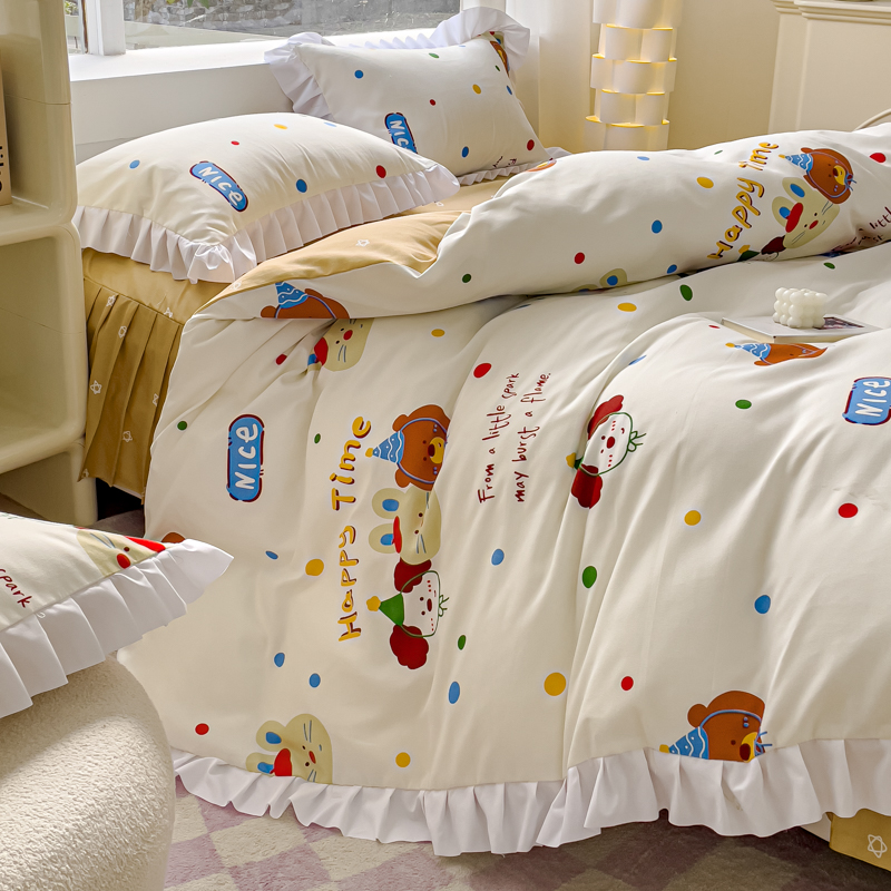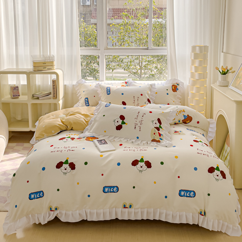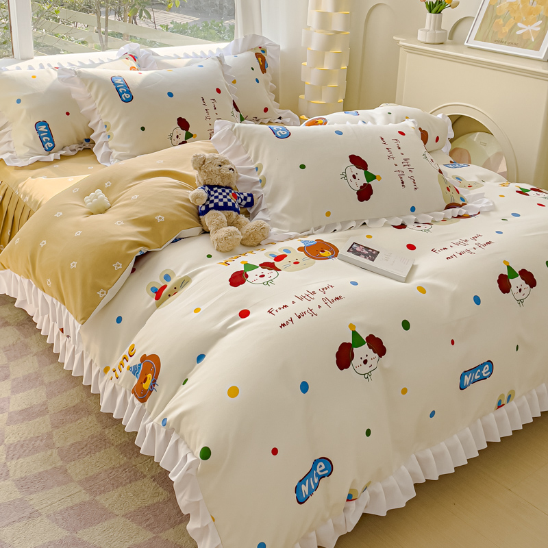 (总)麦瑞家纺 2024新款韩版公主风花边四件套,花园兔,熊宝贝,桔小花,汪星人,cat猫,可爱小熊,小葡萄,紫色兔兔,甜心世界,元气桃桃,晴空,童年游戏,摩登天空
