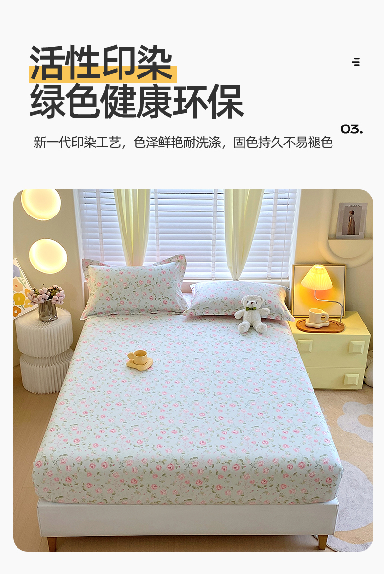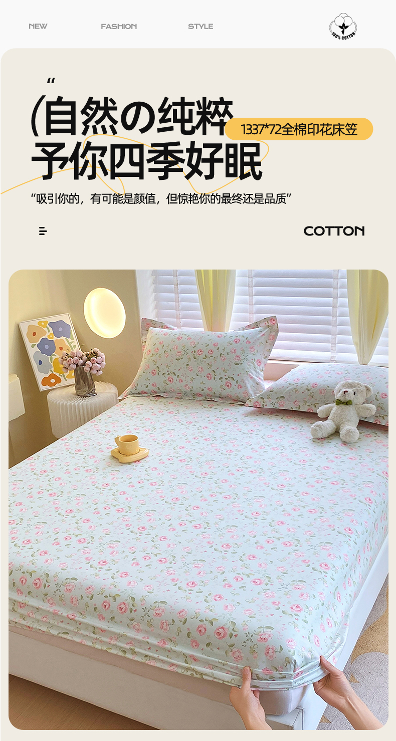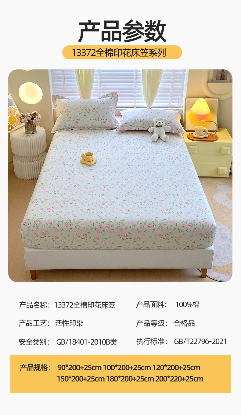 • 91家纺网 家纺一手货源 找家纺 宝齐莱家纺 2024新款13372全棉印花系列单品床笠 芬芳