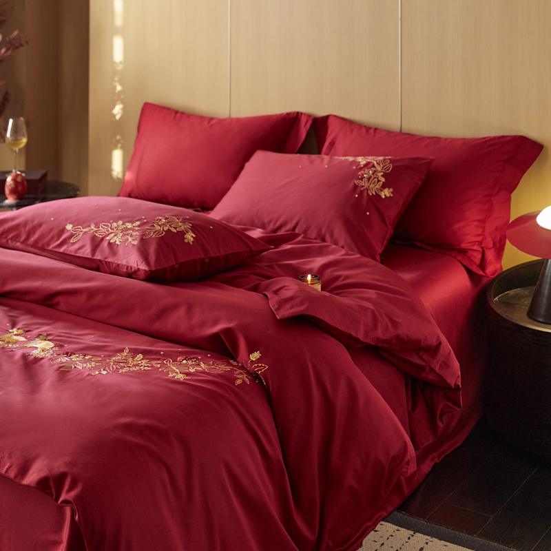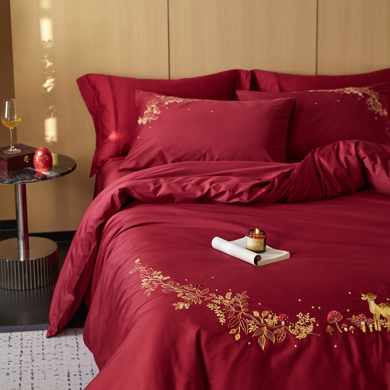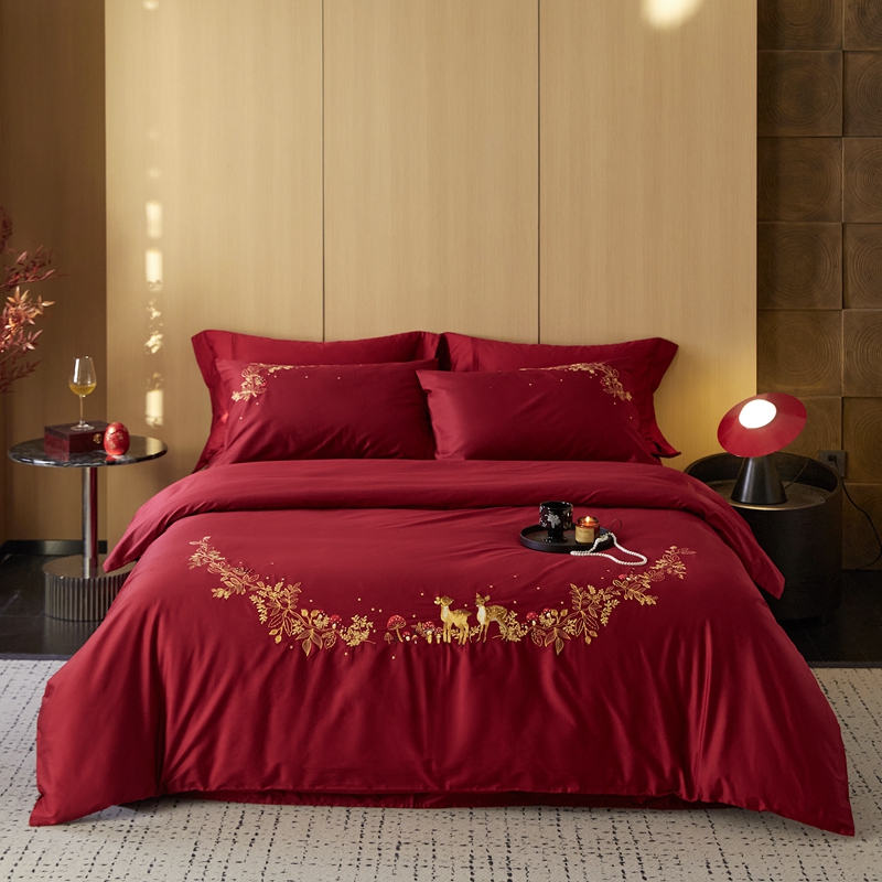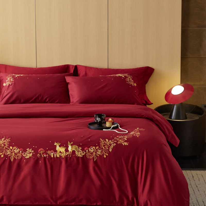 商品名称:(总)云胡 2024新款50s双股长绒棉婚庆款重工刺绣四件套-一鹿有你