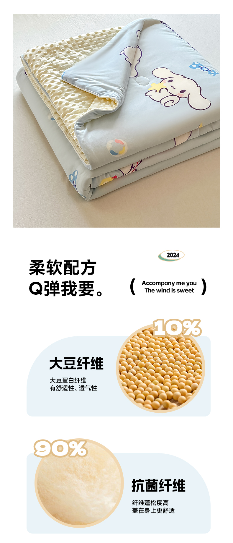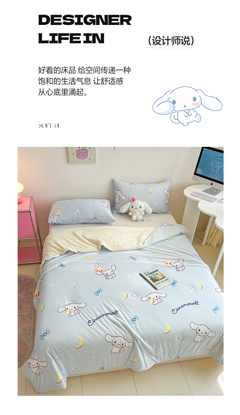 商品名称:莱登卡奴 2025春夏款A类针织棉三丽鸥豆豆被大豆夏被 晚安大耳狗