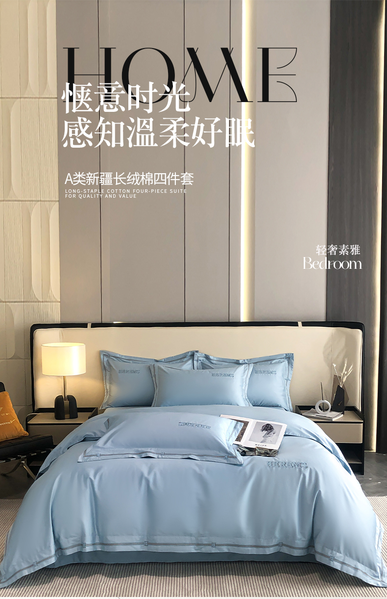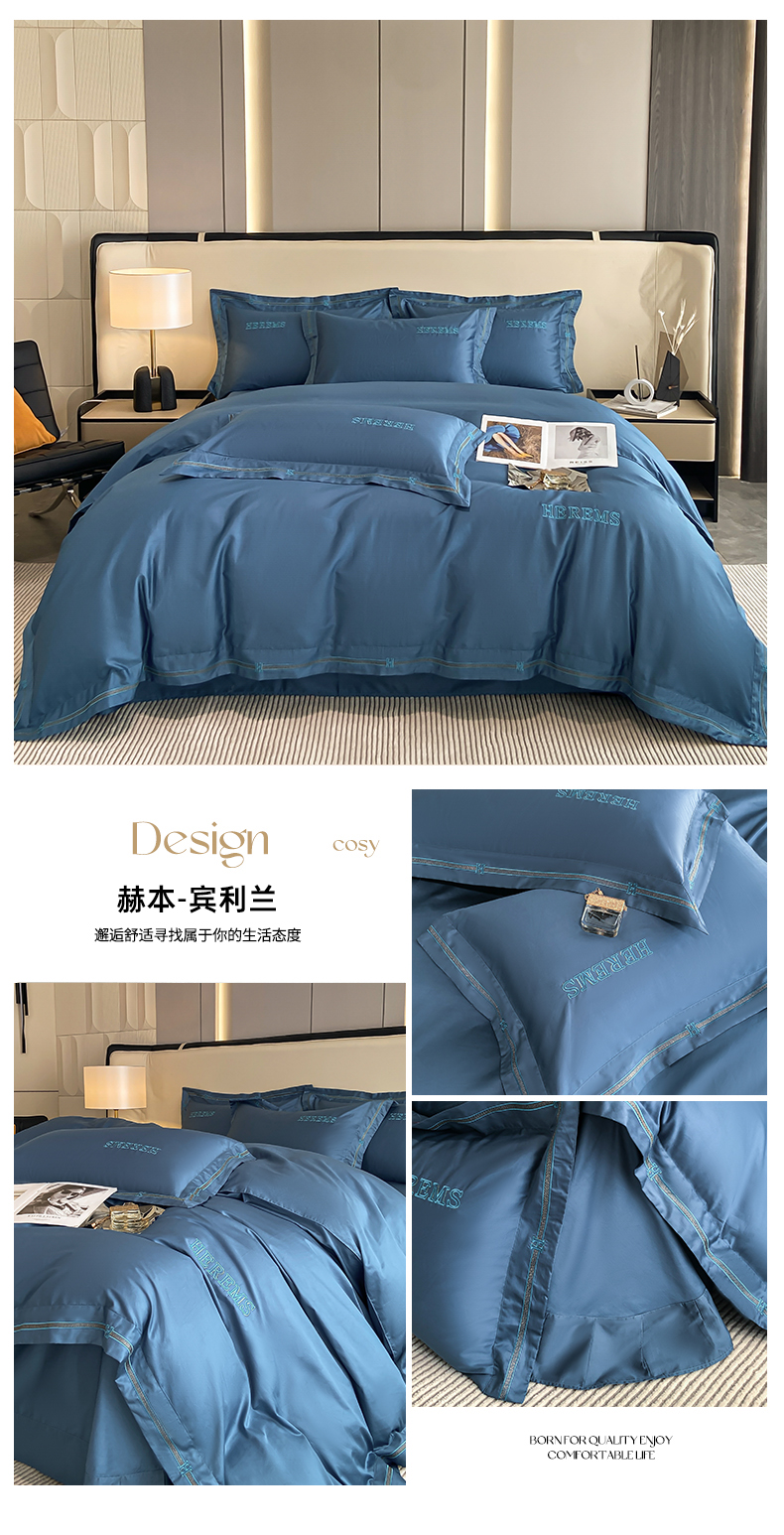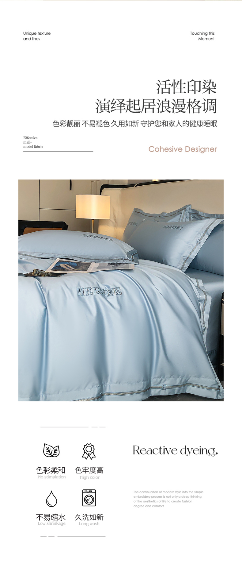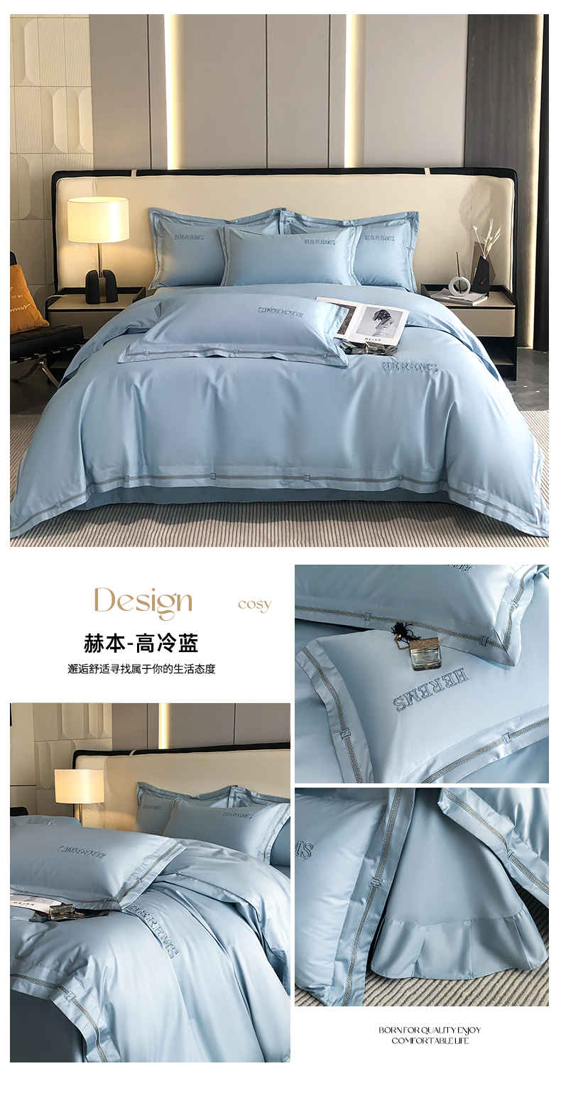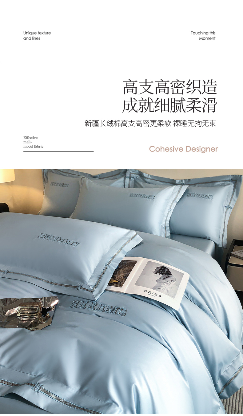 (总)祺瑞佳家纺 2024新款春季新品60支长绒棉双面100%全棉刺绣绣花四件套-赫本