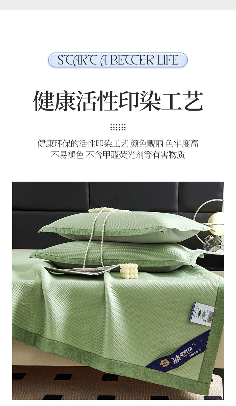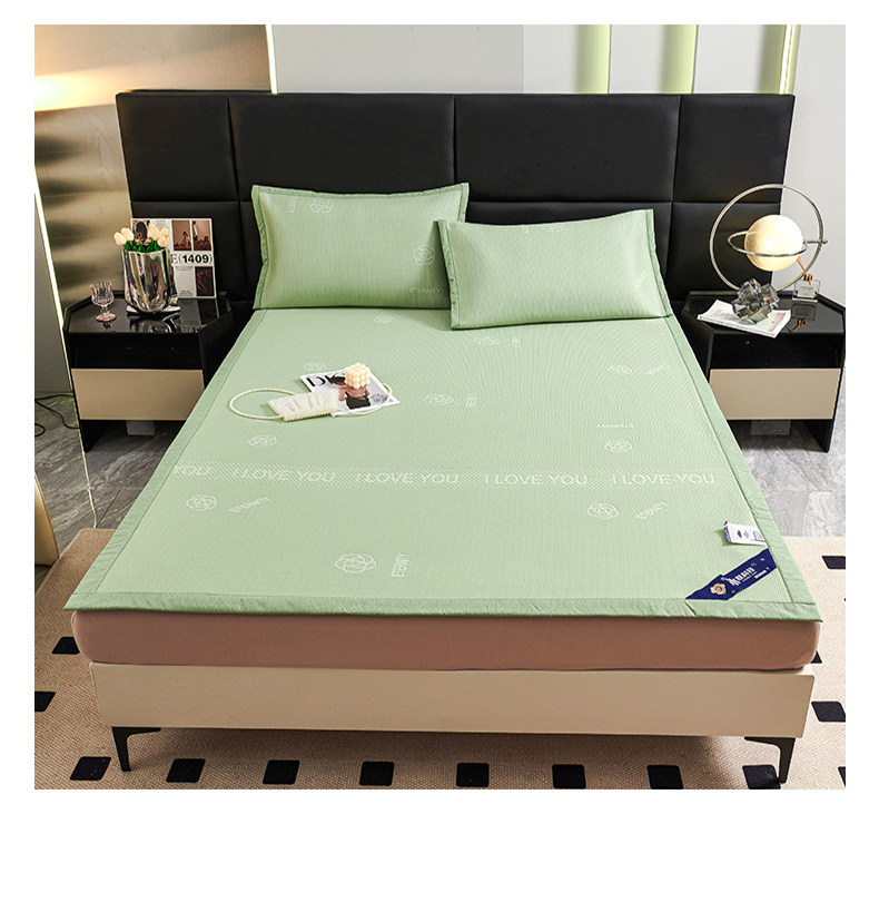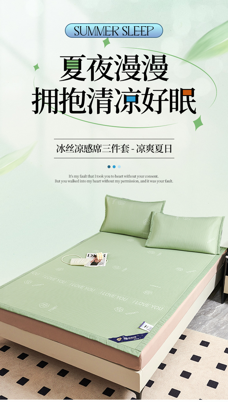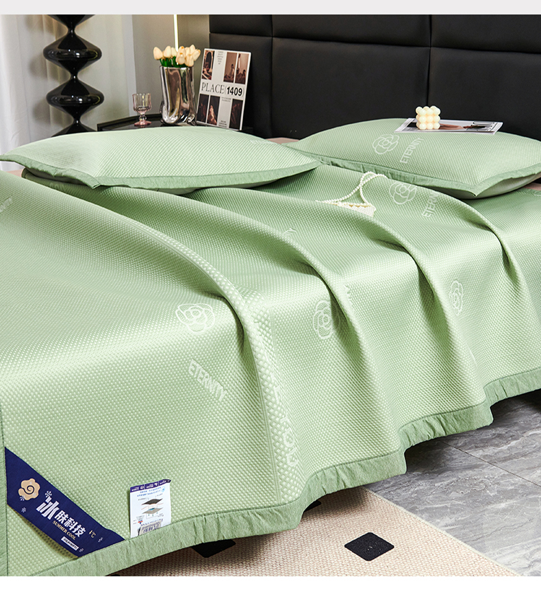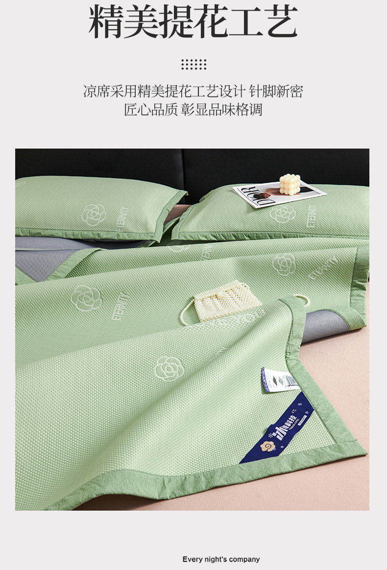 宜派家纺 2024新款凉感丝刺绣凉席三件套 小花-绿-床笠