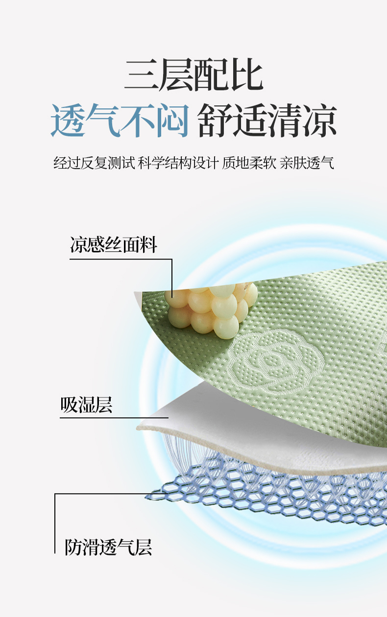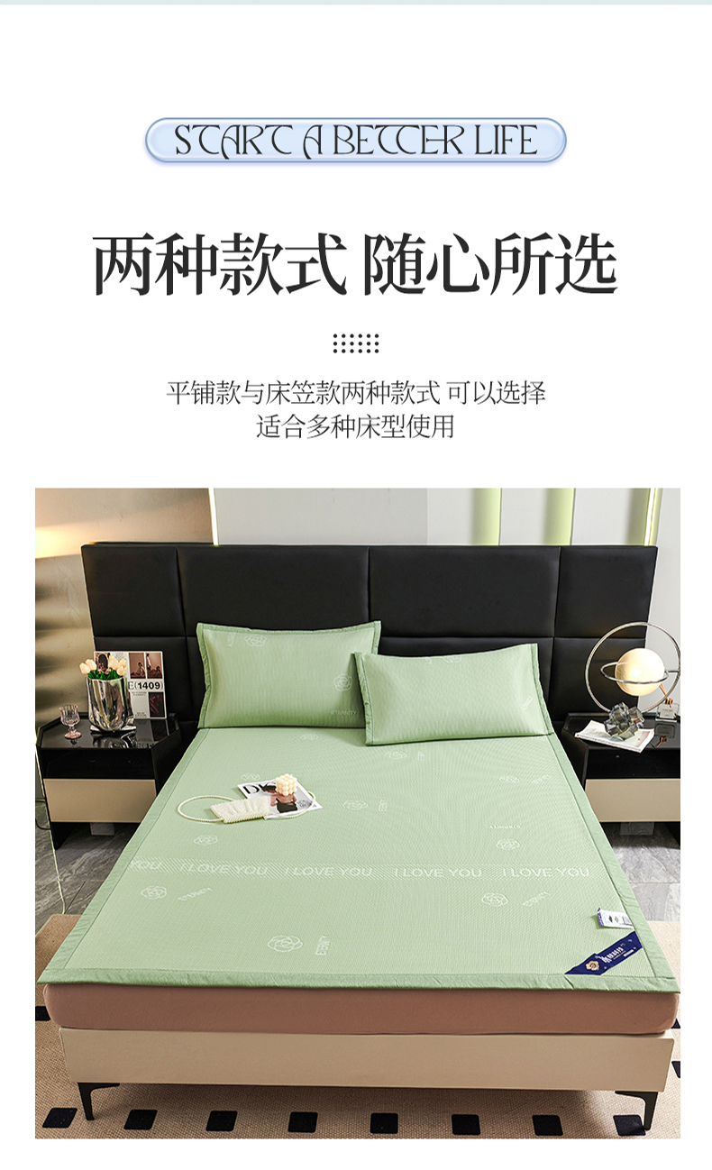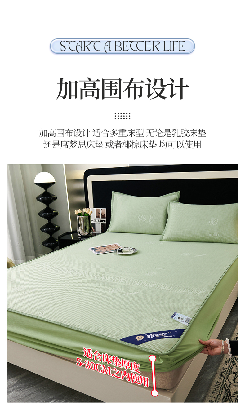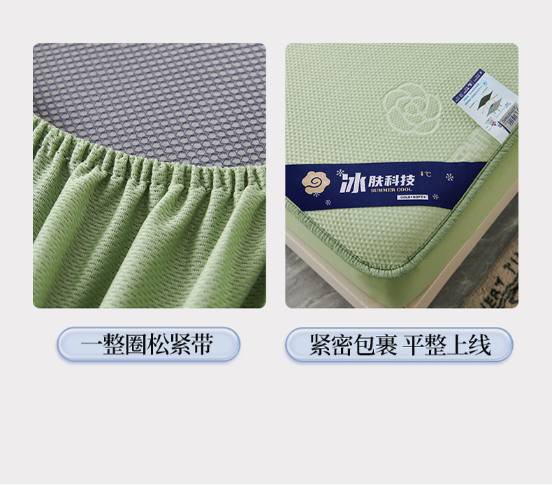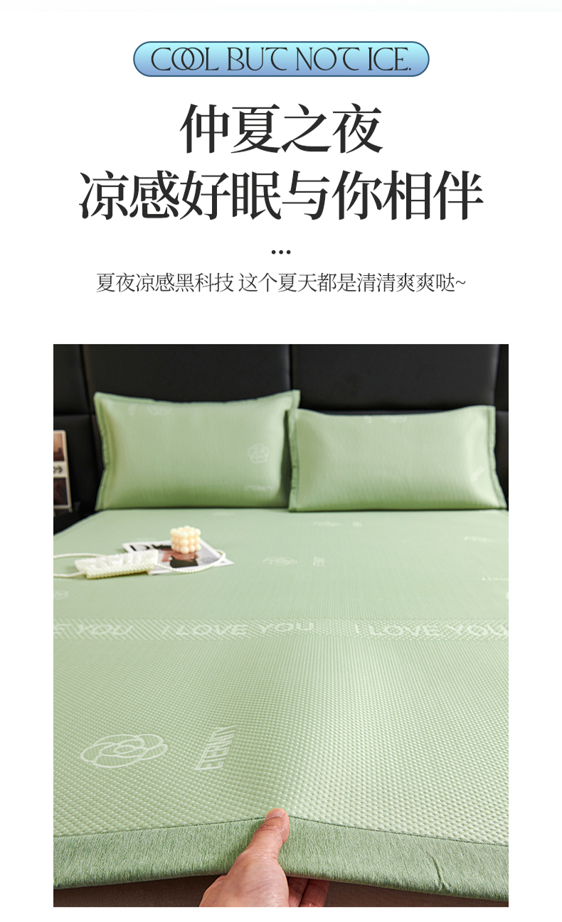 宜派家纺 2024新款凉感丝刺绣凉席三件套 小花-绿-床笠