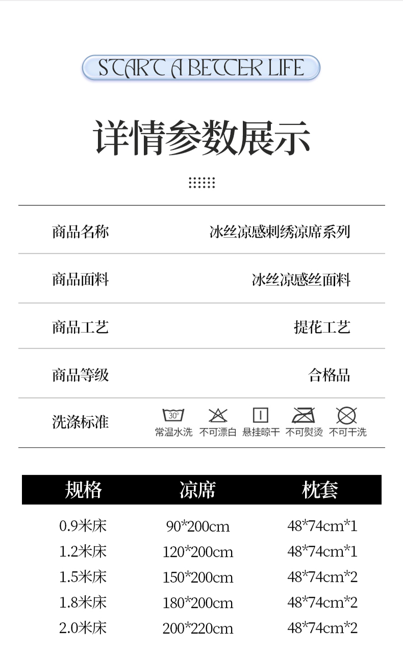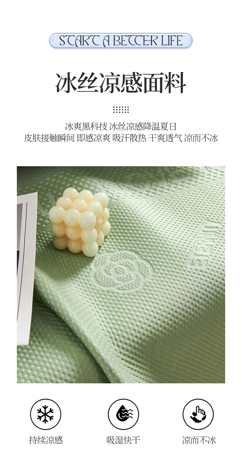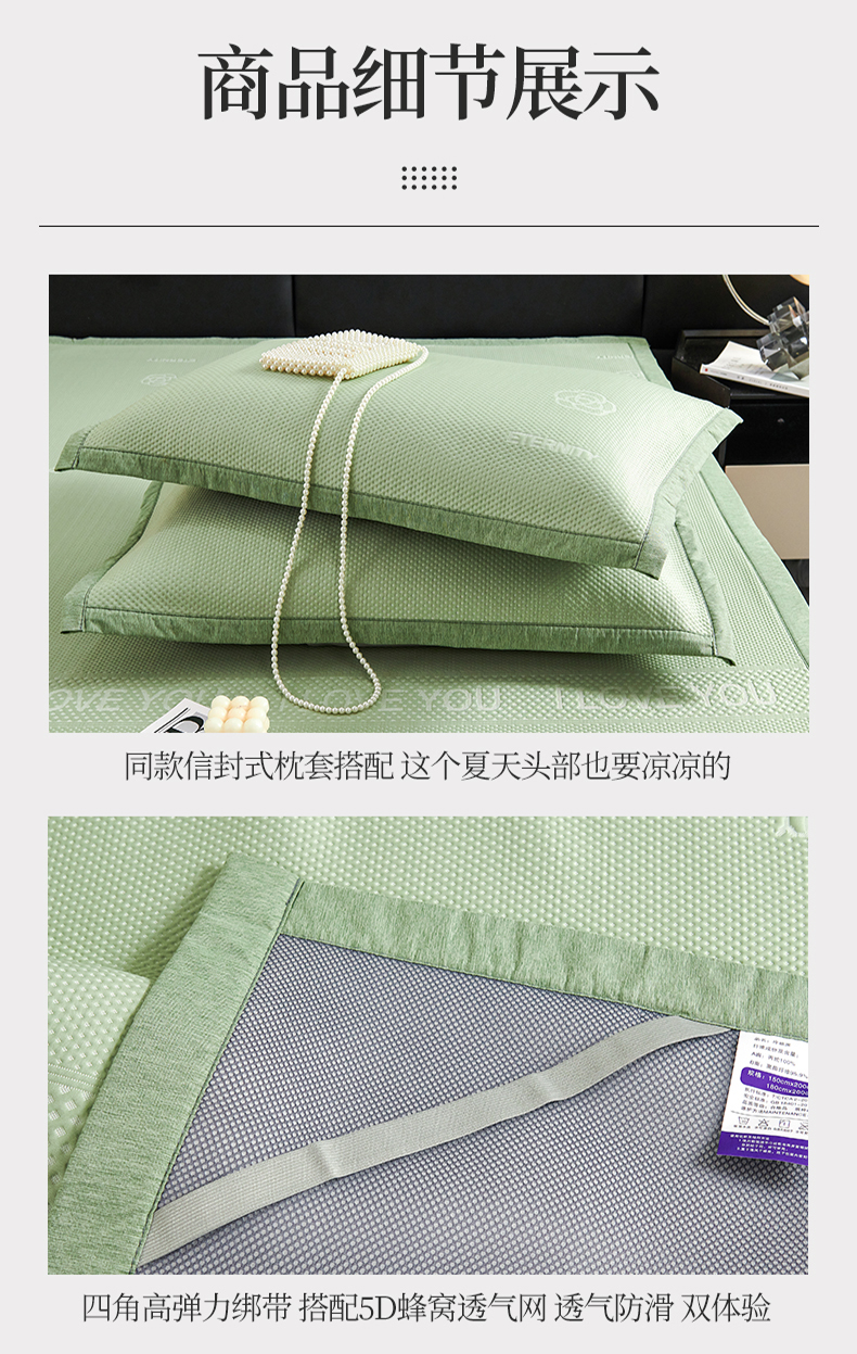 商品名称:宜派家纺 2024新款凉感丝刺绣凉席三件套 小花-绿-床笠