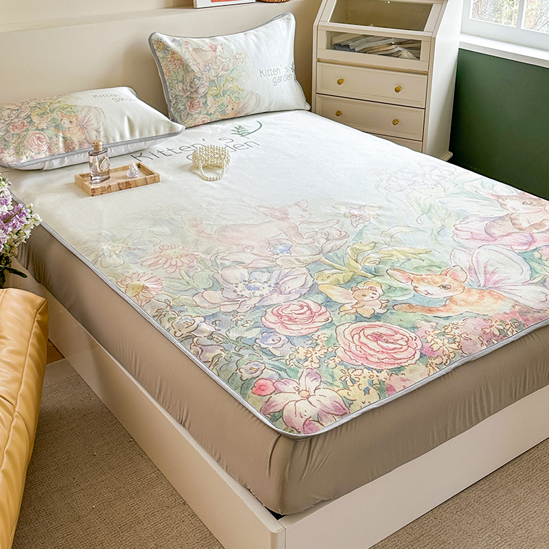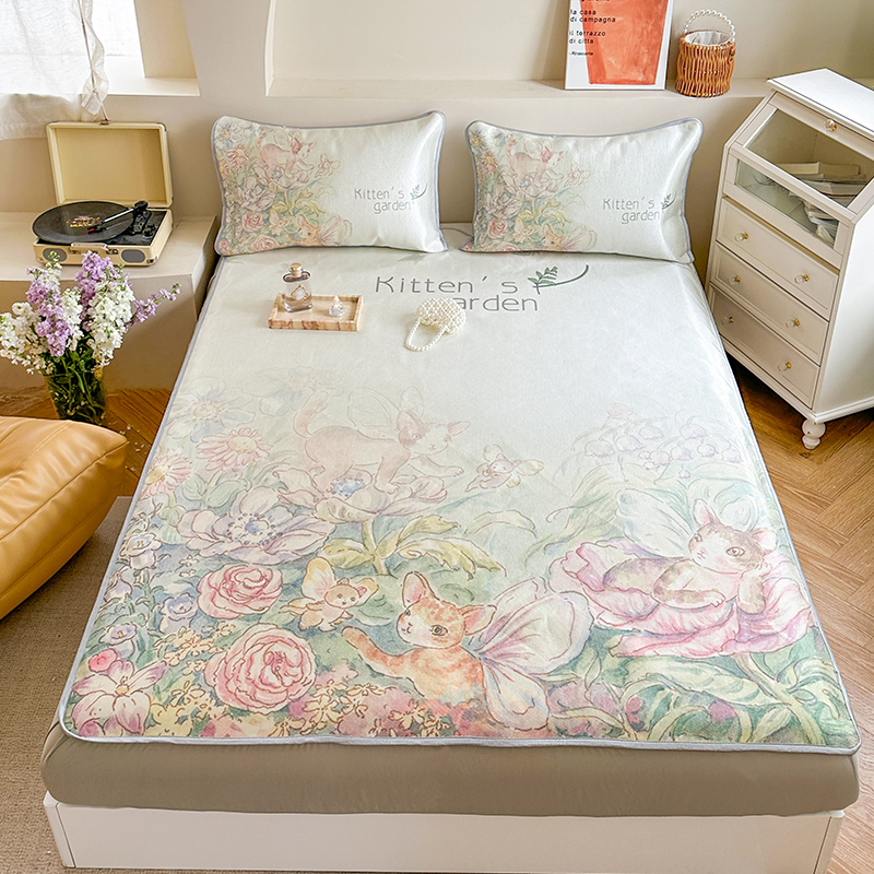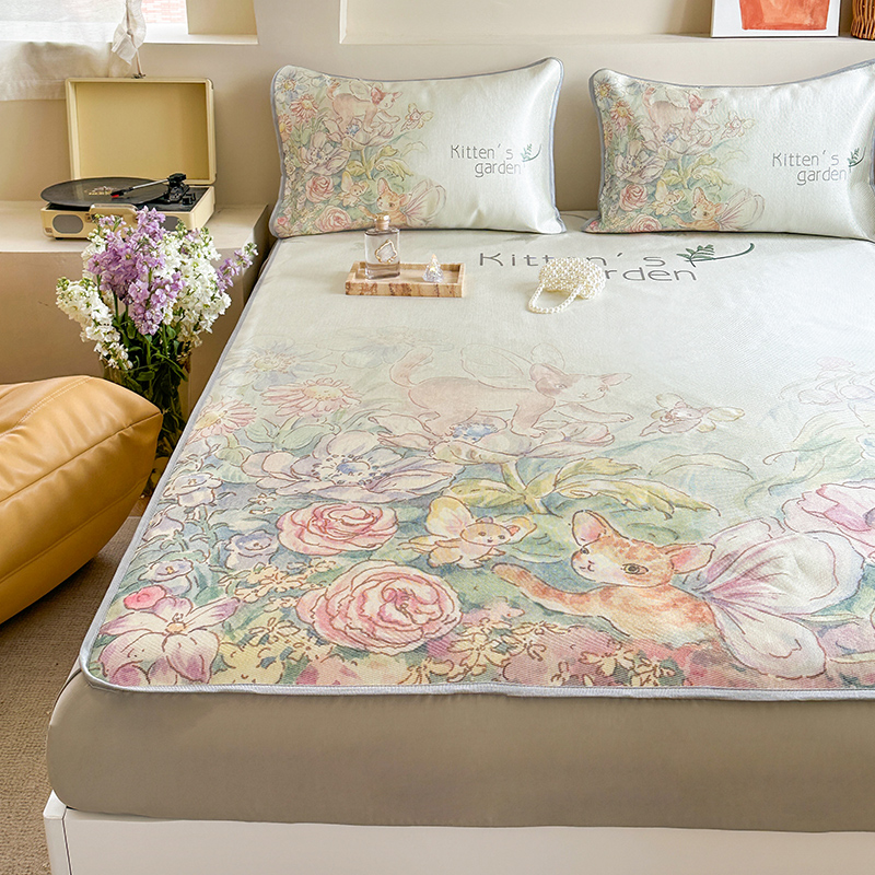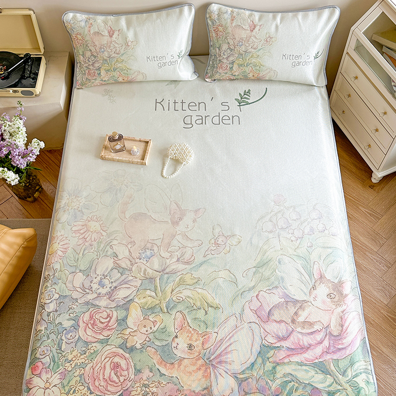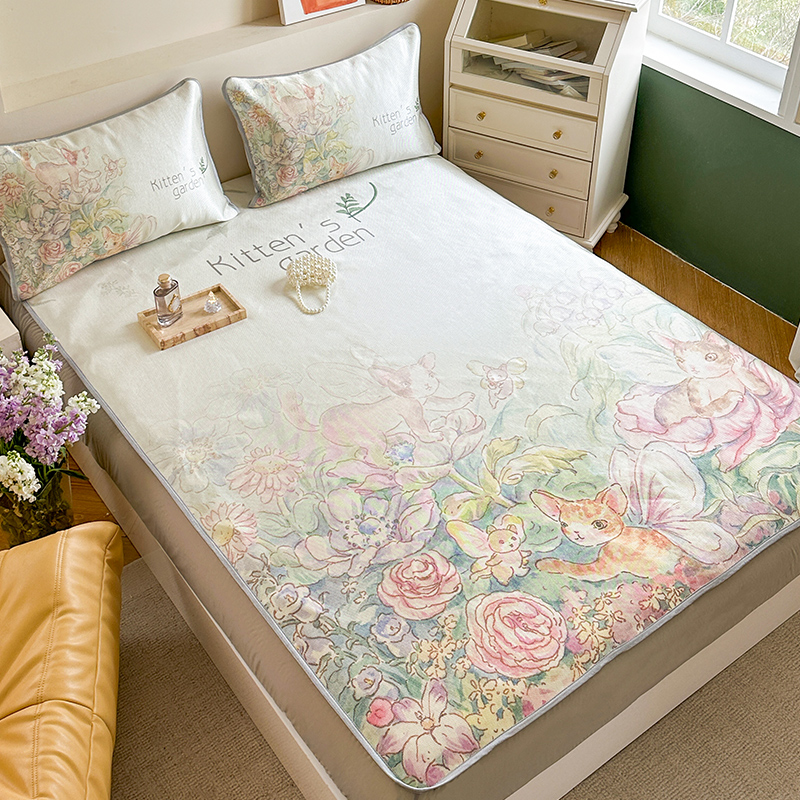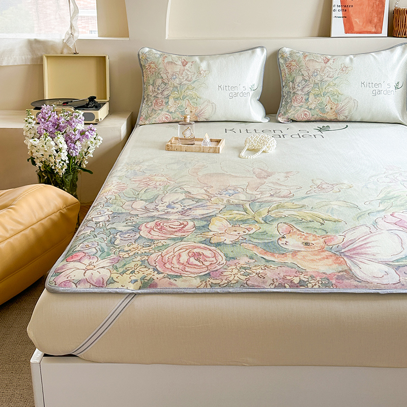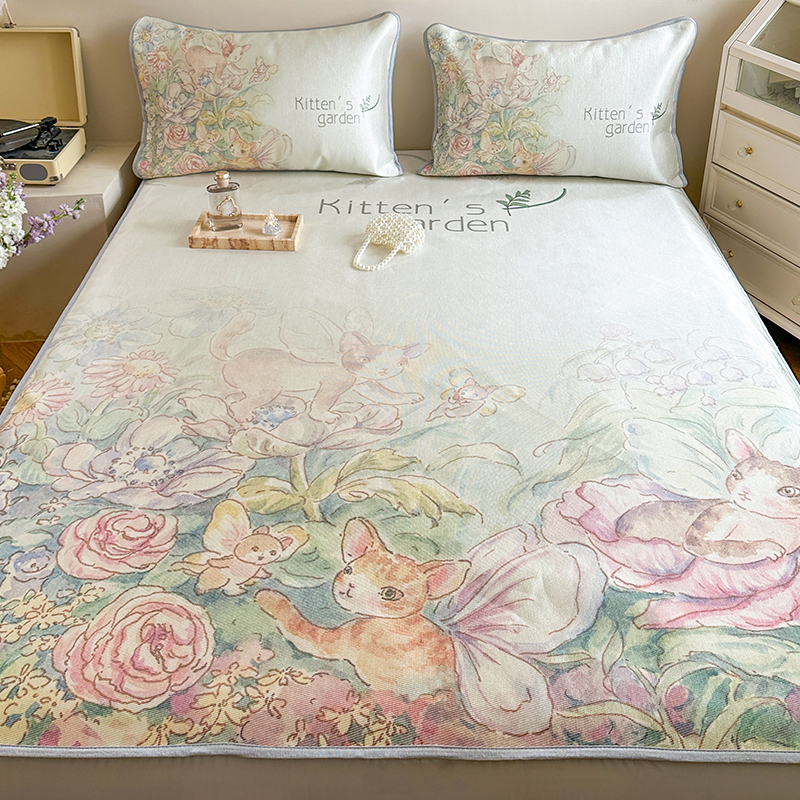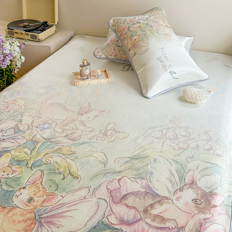 当前位置: 91家纺网 > 商品网购 > 床上用品 > 凉席 > 冰丝席 > 萝莉家纺 2024新款大版印花冰丝凉席床席床笠款 小猫咪的花园-床笠款