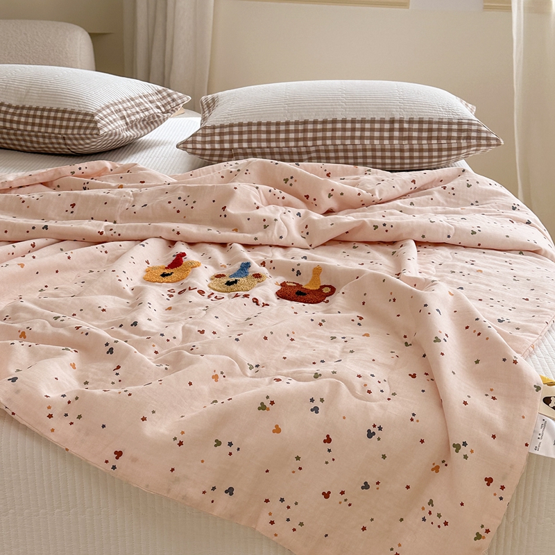 (总)洋铭区 2023新款全棉皱皱双层纱夏被,粉色郁金香,甜萝卜,旺旺熊,微笑,香甜草莓,小花仙,小鸭鸭