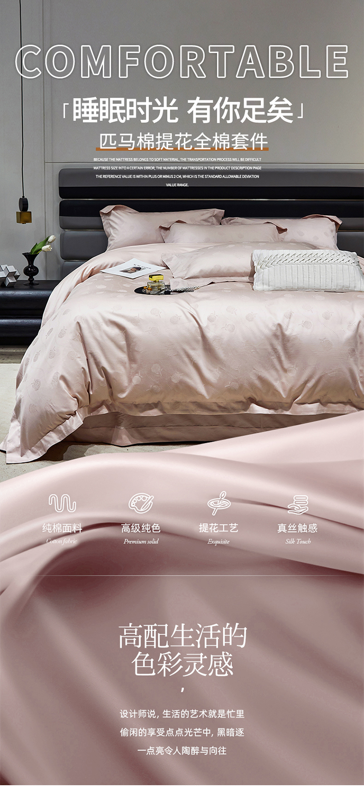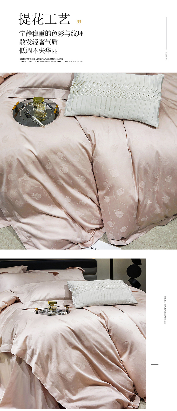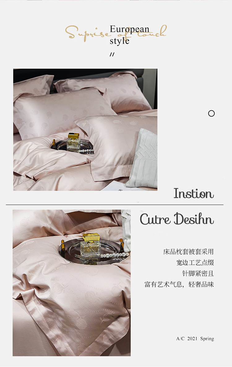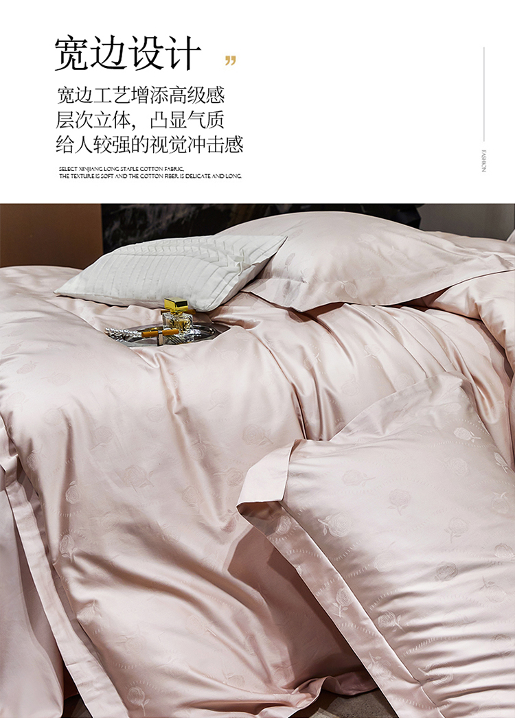 商品名称:红番天家居馆 2025新款长绒棉全棉提花四件套--格林系列 格林 白桃茶粉