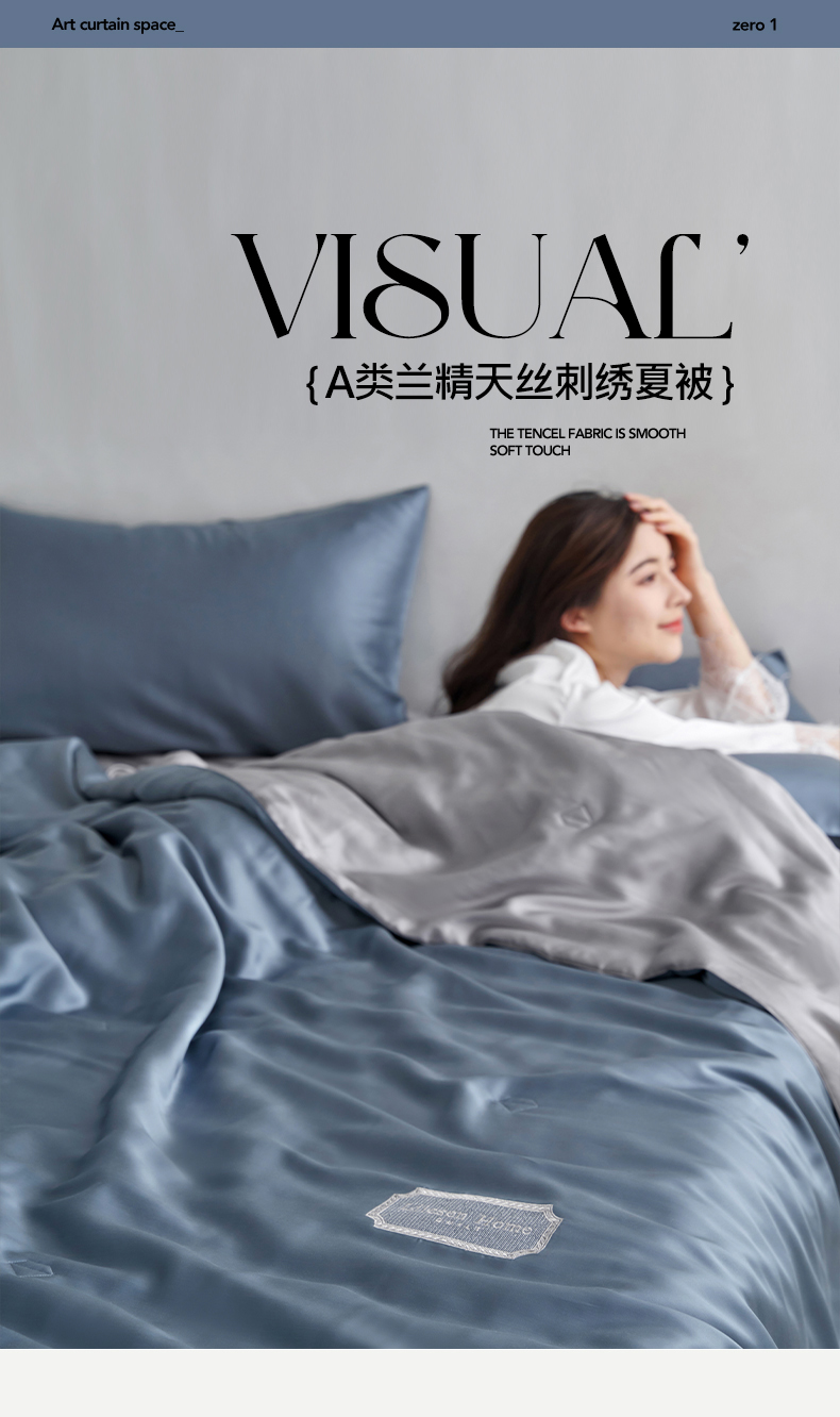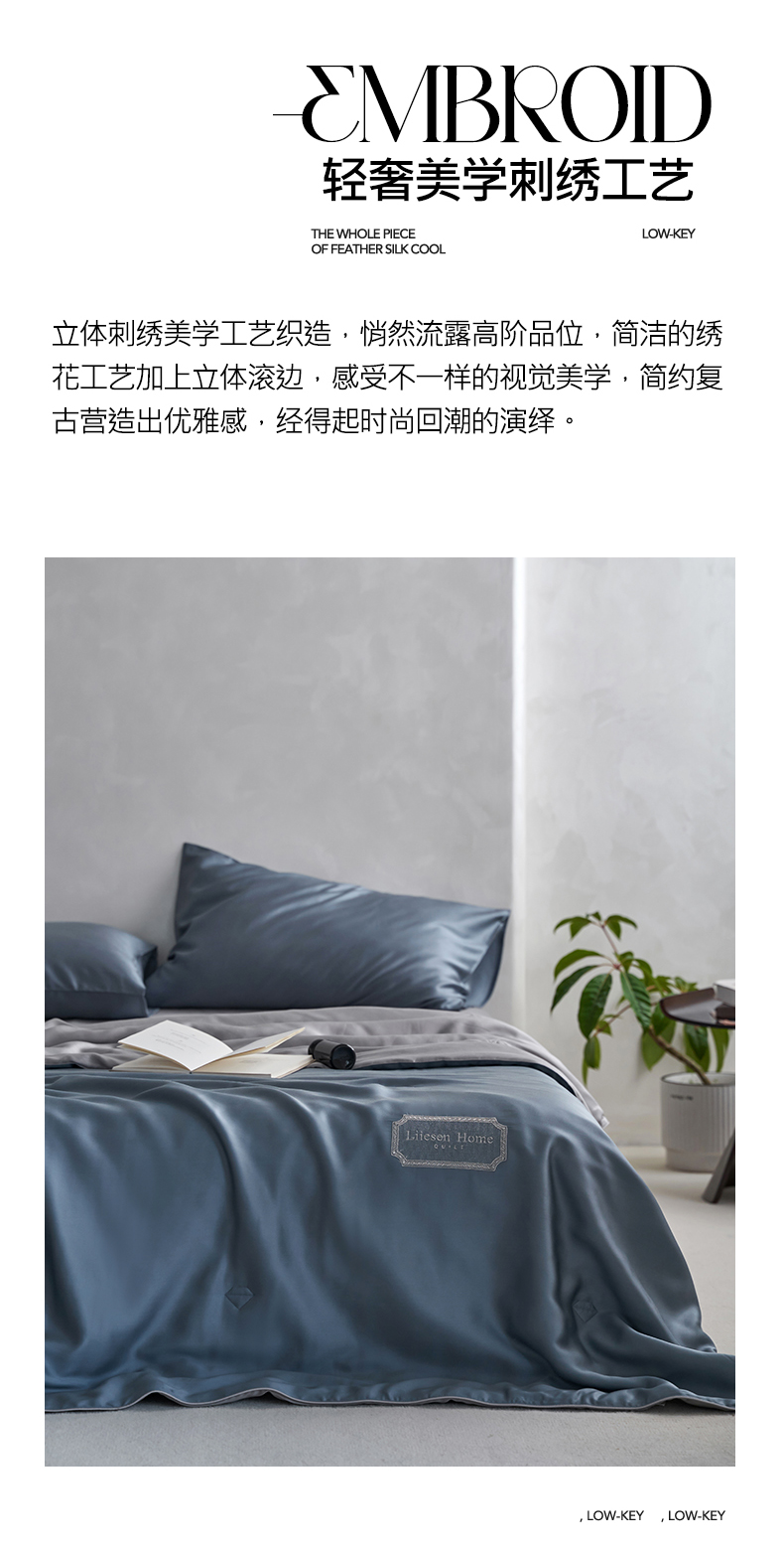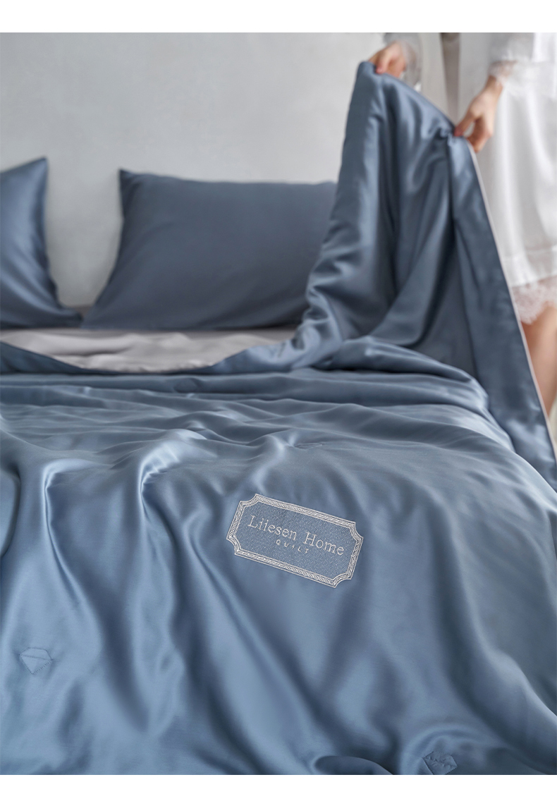 • 91家纺网 家纺一手货源 找家纺 丽笙 2024新款A类兰精天丝素色刺绣夏被被子被芯 炫彩色简朴蓝