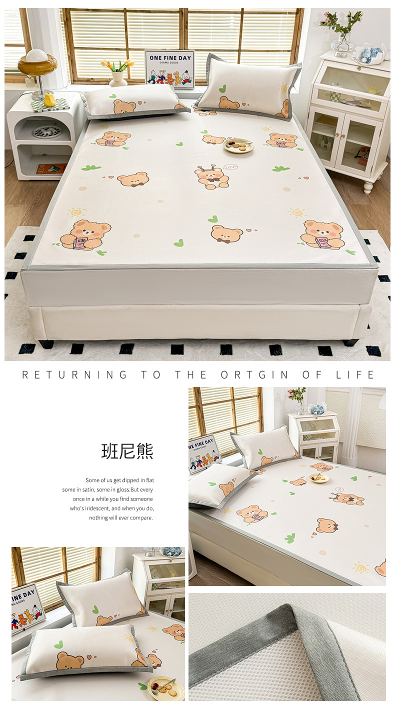 • 91家纺网 家纺一手货源 找家纺 栩裕纺织 2025款数码印花1200D碳光牛奶冰丝凉席 班尼熊