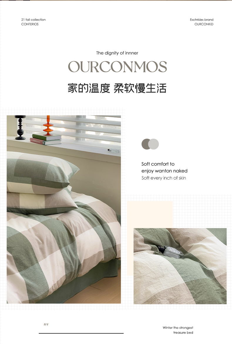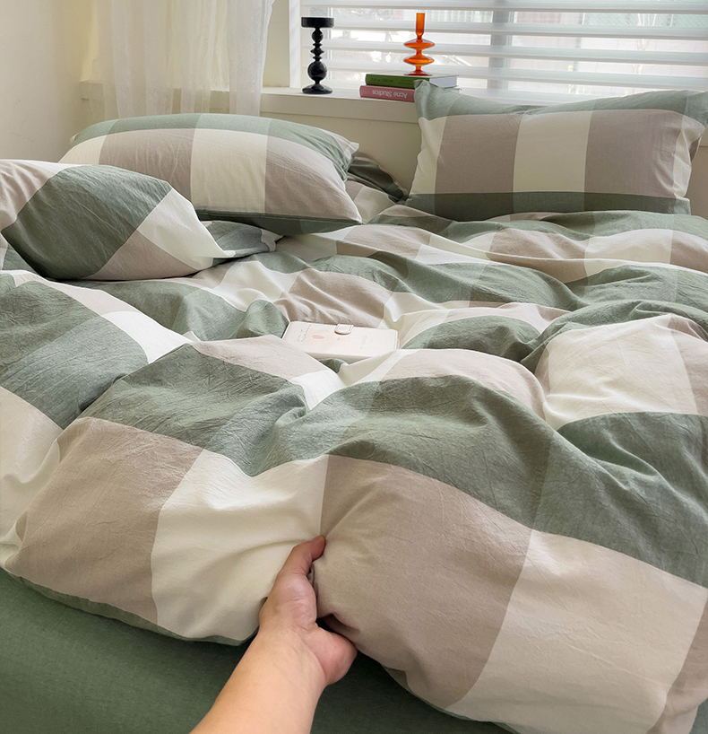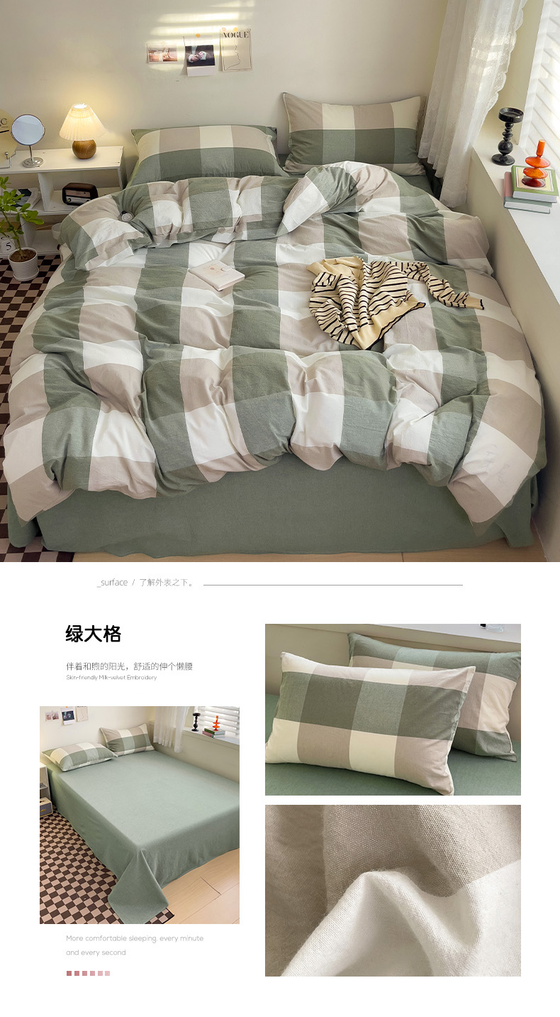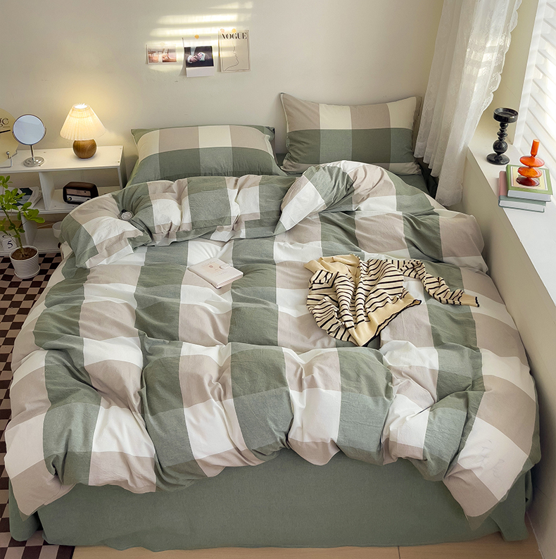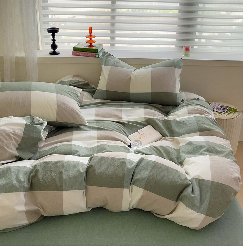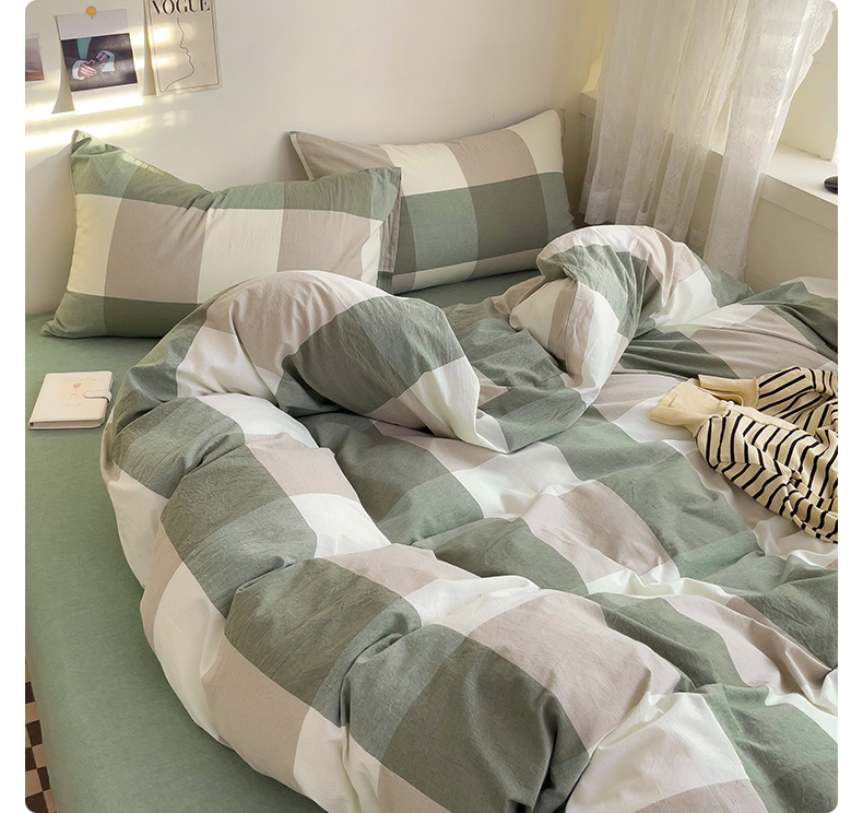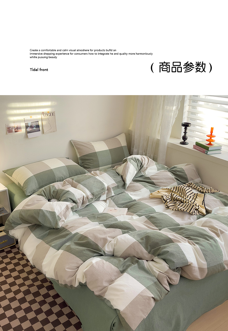 当前位置: 91家纺网 > 商品网购 > 床品套件 > 四件套 > 全棉普通四件套 > 大柏树 2025新款A类色织全棉水洗棉单品系列-四件套 绿大格