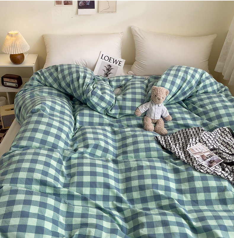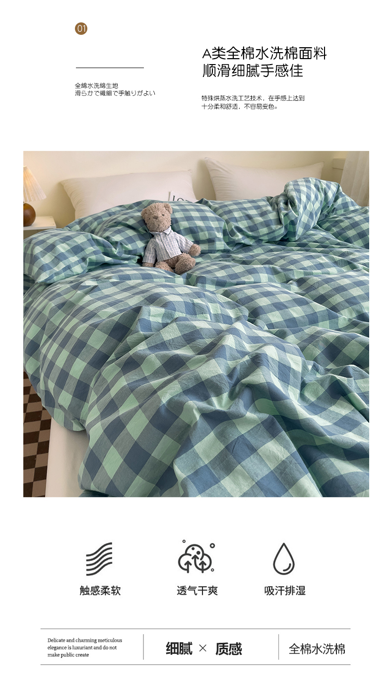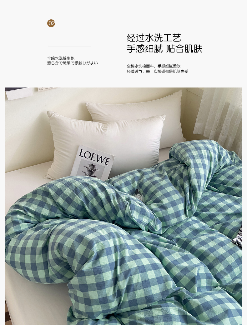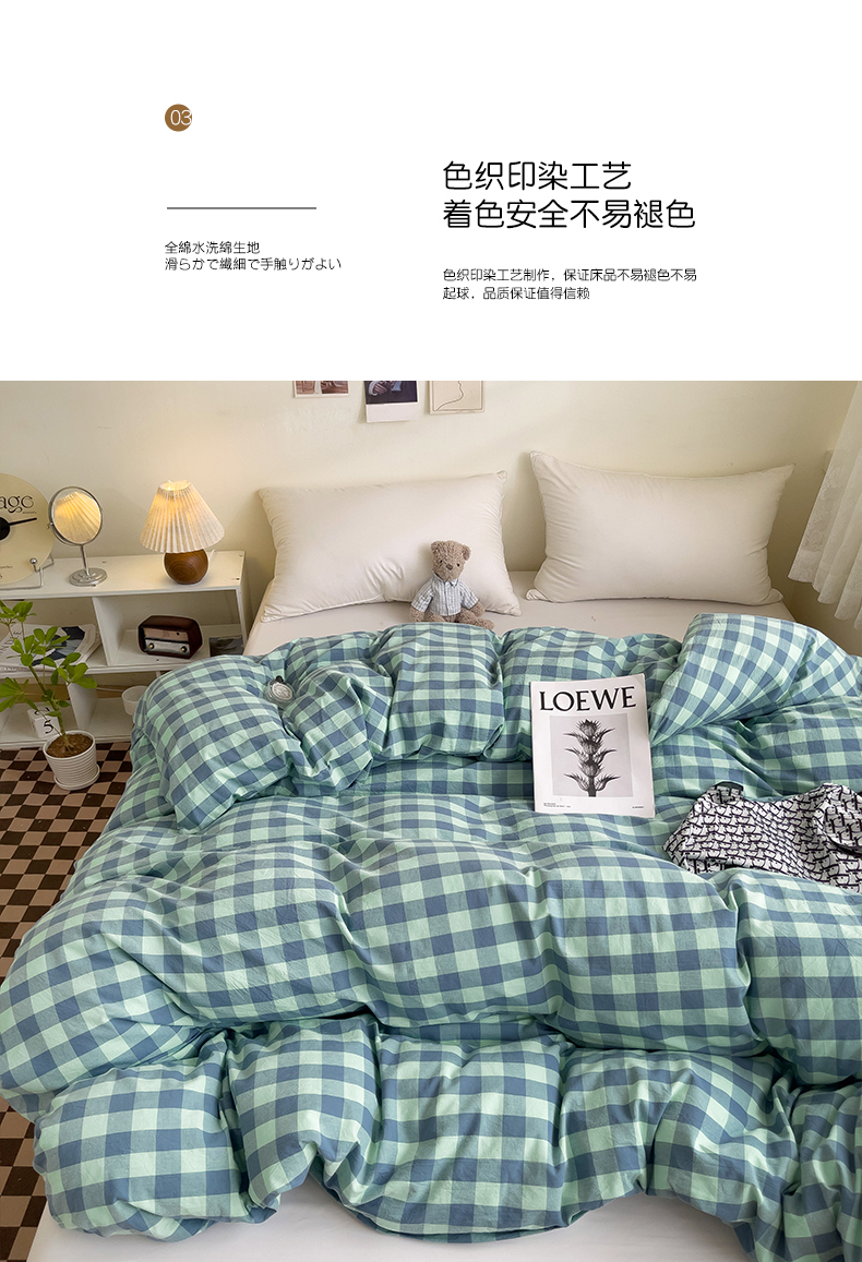 (总)大柏树 2025新款A类色织全棉水洗棉无印风四件套床单被套枕套,粉灰小格,黑白中格,黄粉三分格,灰细条,简兮兰,蓝大格,蓝黄三分格,蓝灰中格,蓝细条,流年灰,绿大格,绿灰小格,绿小格,米小格,牛油果大格,浅蓝小格,如意玉,森林桔,斯诺克,小冰激凌,英伦桔,英伦蓝,紫粉三分格,紫黄三分格