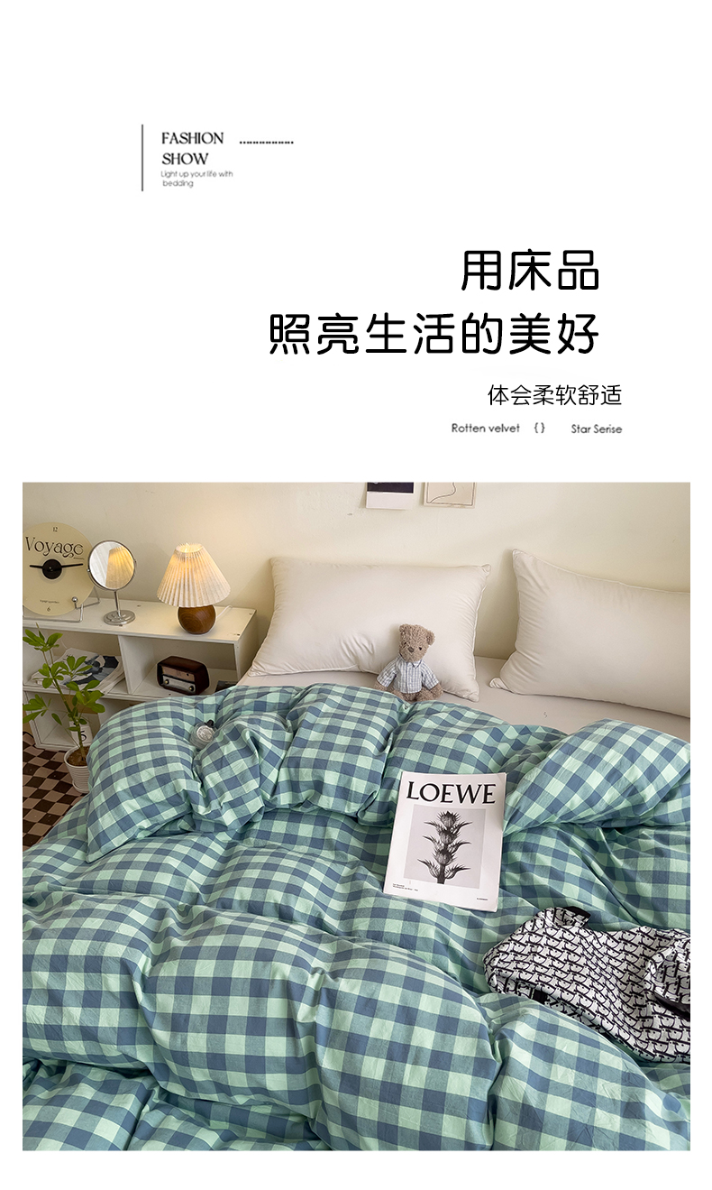 (总)大柏树 2025新款全棉水洗棉套件-床笠四件套,艾莎绿小格,春野咖,春野兰,春野玉,绿紫中格,洛伊粉咖小格,莫妮卡,诺卡,日落红,日落灰,云素红,云岫粉咖,云岫绿咖
