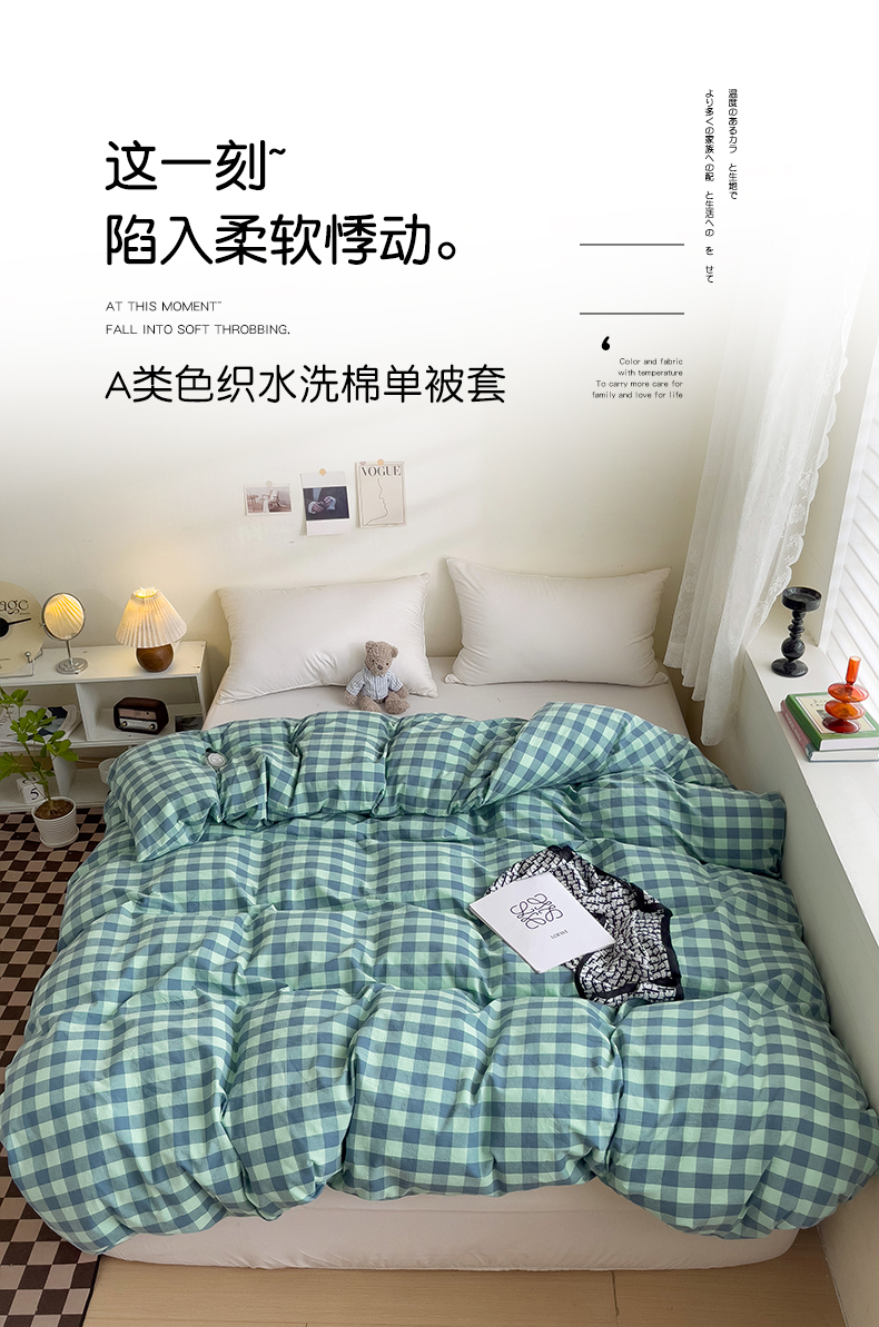 大柏树 2025新款A类色织全棉水洗棉单品系列-单被套 绿灰小格