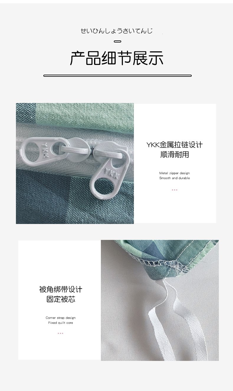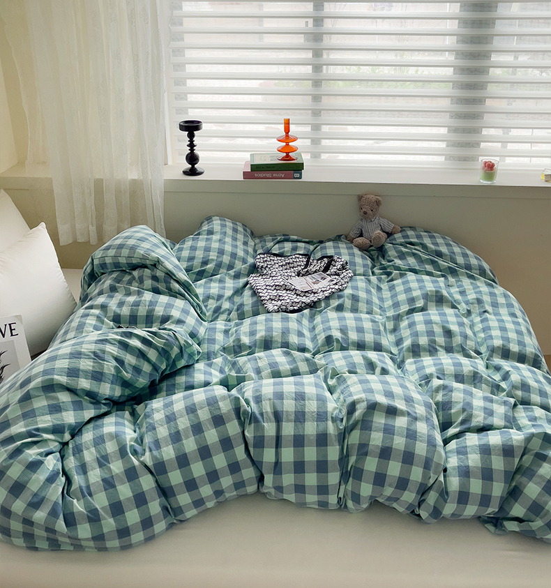 商品名称:大柏树 2025新款A类色织全棉水洗棉单品系列-单被套 绿灰小格
