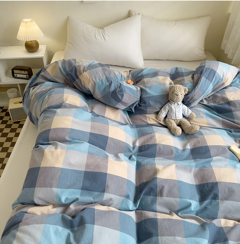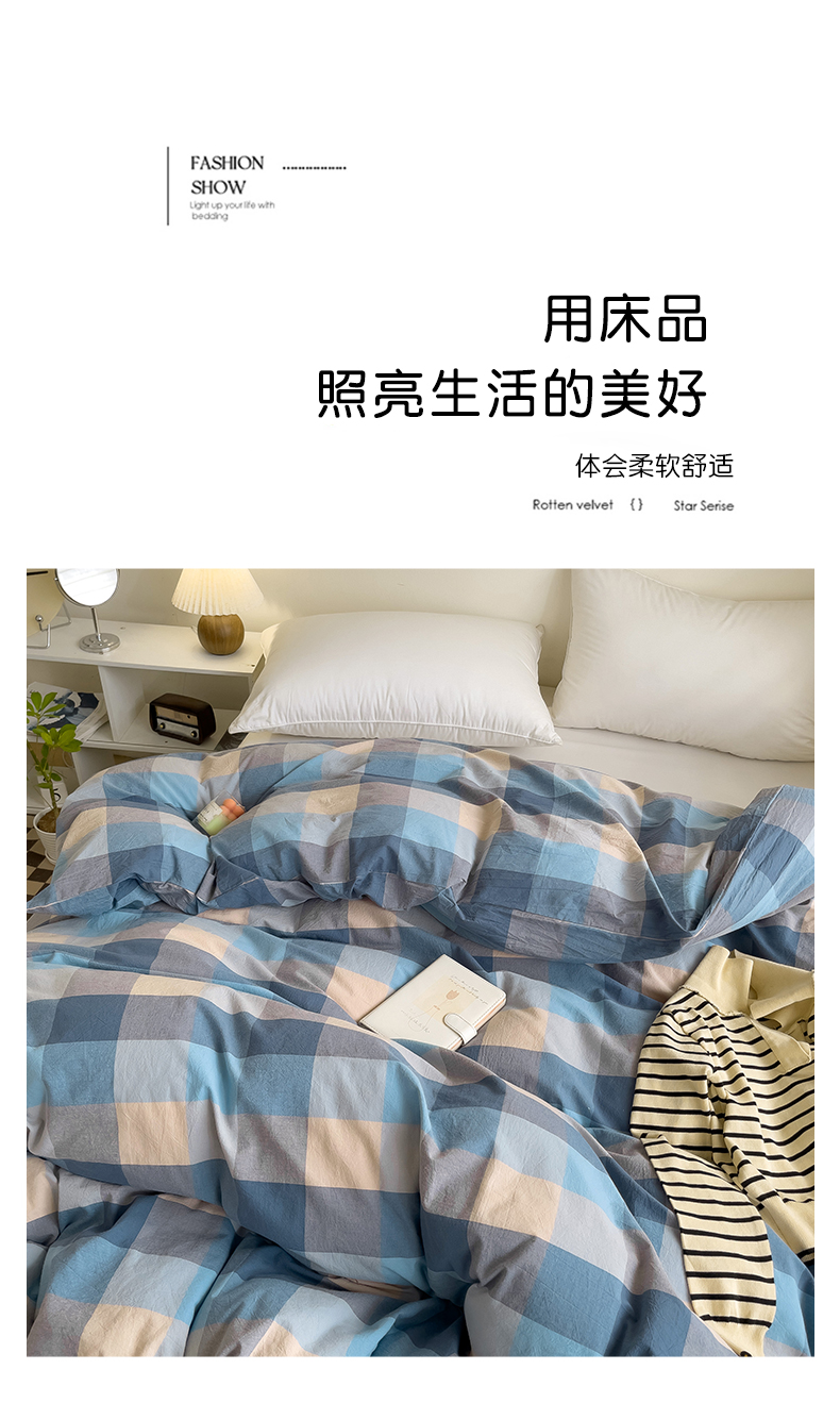 (总)大柏树 2025新款A类色织全棉水洗棉无印风四件套床单被套枕套,粉灰小格,黑白中格,黄粉三分格,灰细条,简兮兰,蓝大格,蓝黄三分格,蓝灰中格,蓝细条,流年灰,绿大格,绿灰小格,绿小格,米小格,牛油果大格,浅蓝小格,如意玉,森林桔,斯诺克,小冰激凌,英伦桔,英伦蓝,紫粉三分格,紫黄三分格