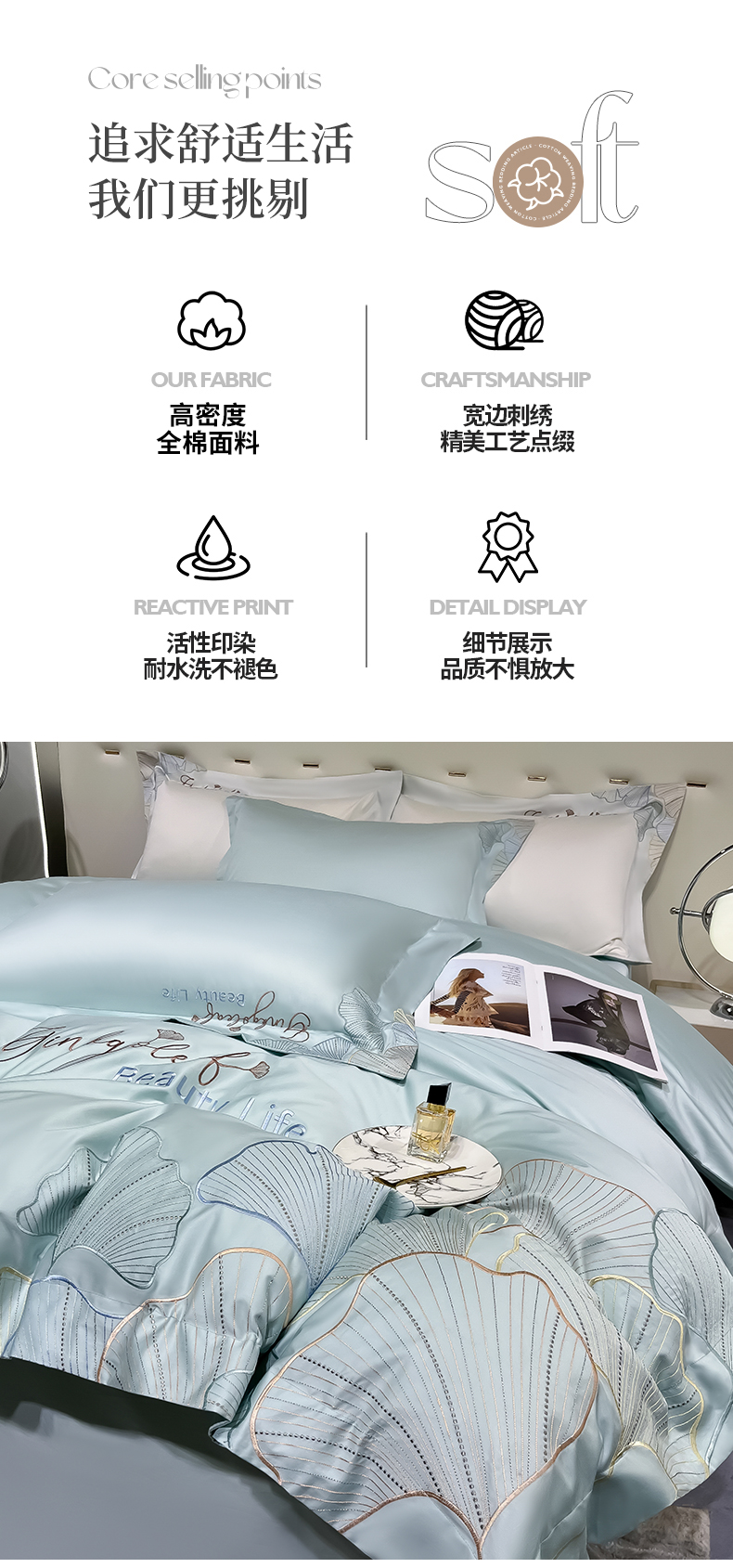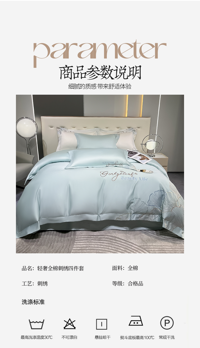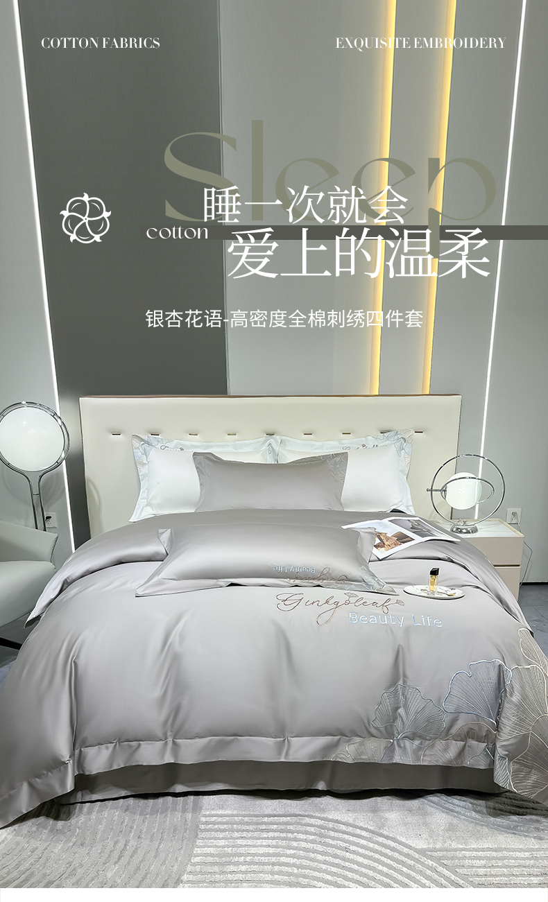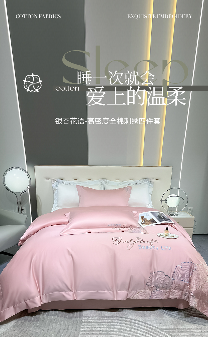 当前位置: 91家纺网 > 商品网购 > 床品套件 > 四件套 > 全棉普通四件套 > (总)家居1号家纺 2024新款轻奢双面100纯棉长绒棉刺绣四件套床单被套全棉床上用品直播热款-银杏花语