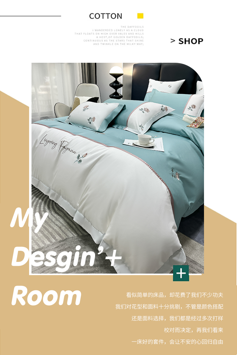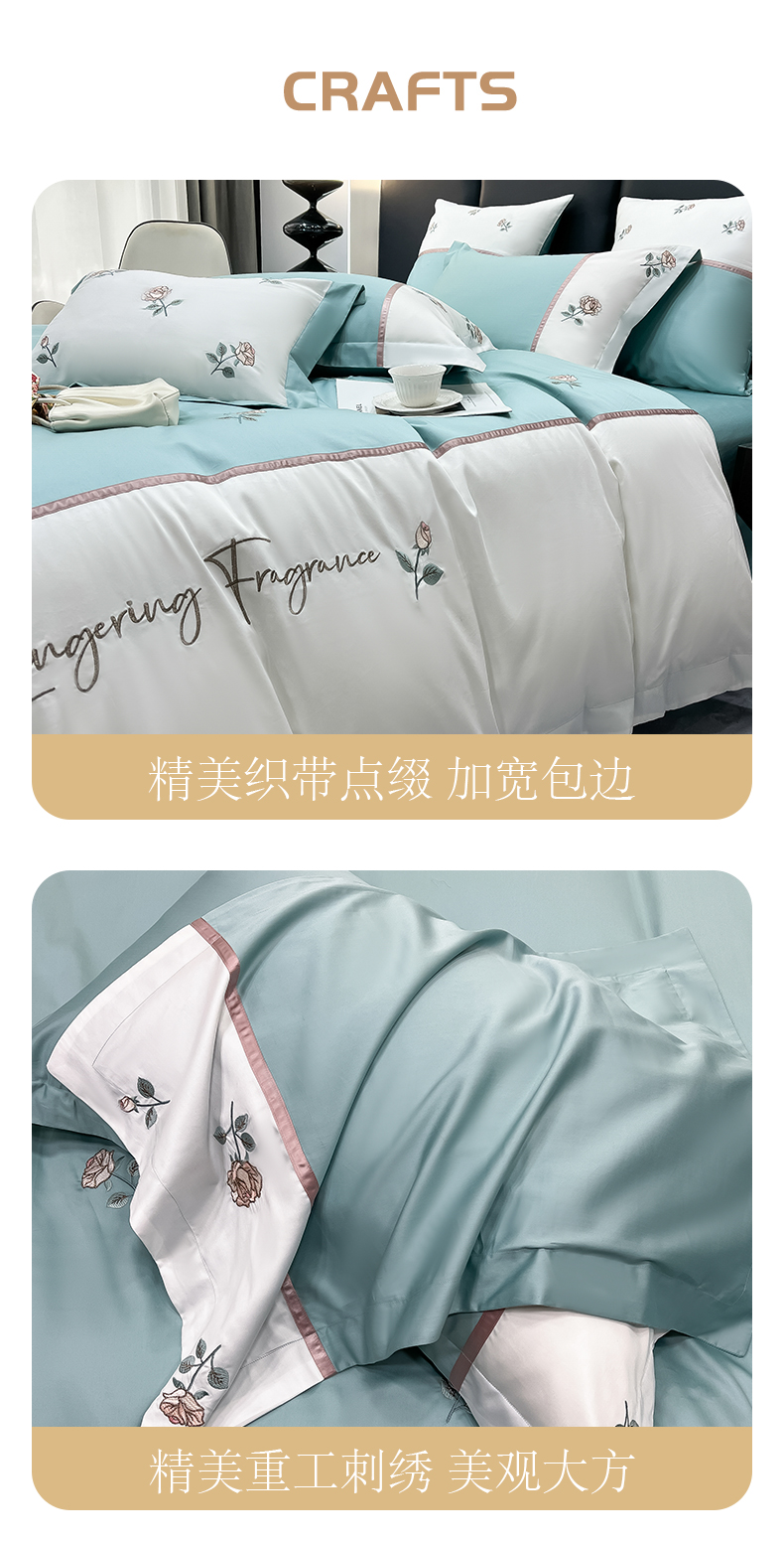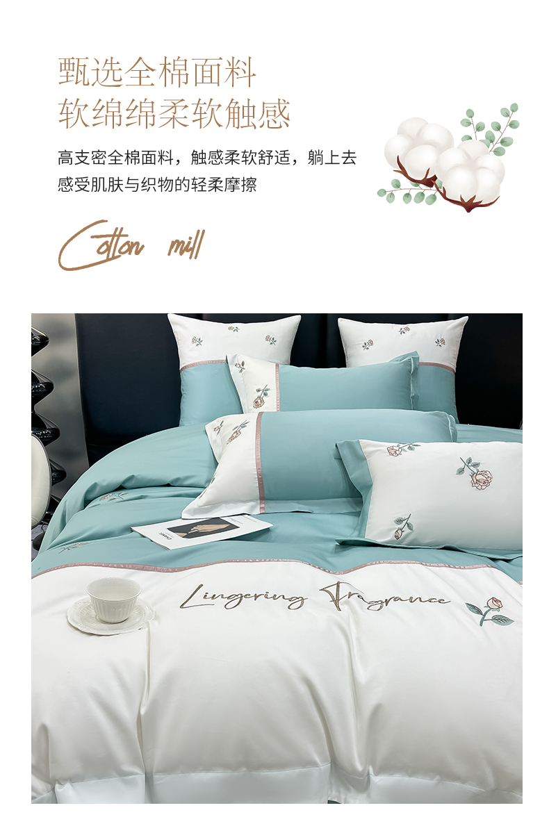 当前位置: 91家纺网 > 商品网购 > 床品套件 > 四件套 > 全棉普通四件套 > 家居1号家纺 2024新款13376全棉刺绣四件套-轻奢玫瑰 轻奢玫瑰-绿