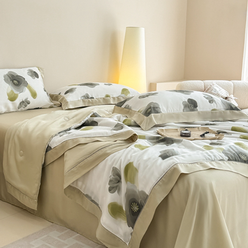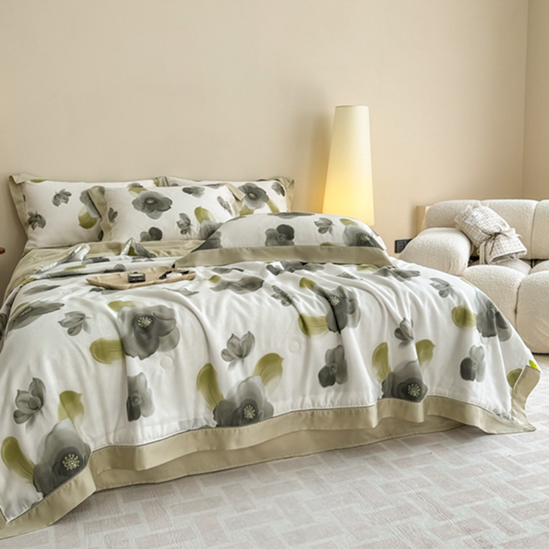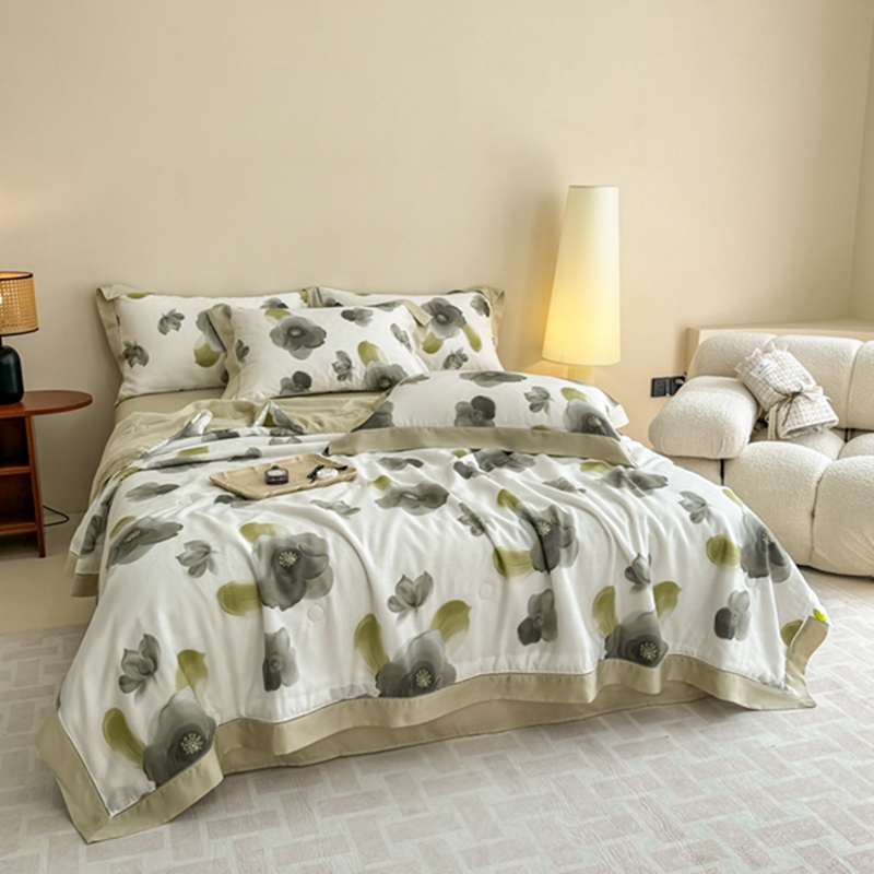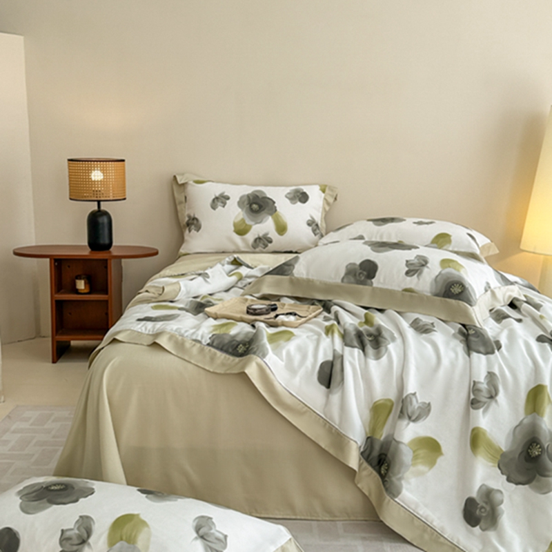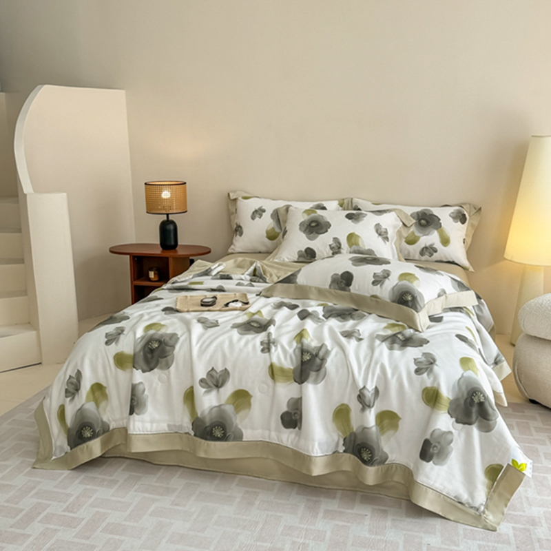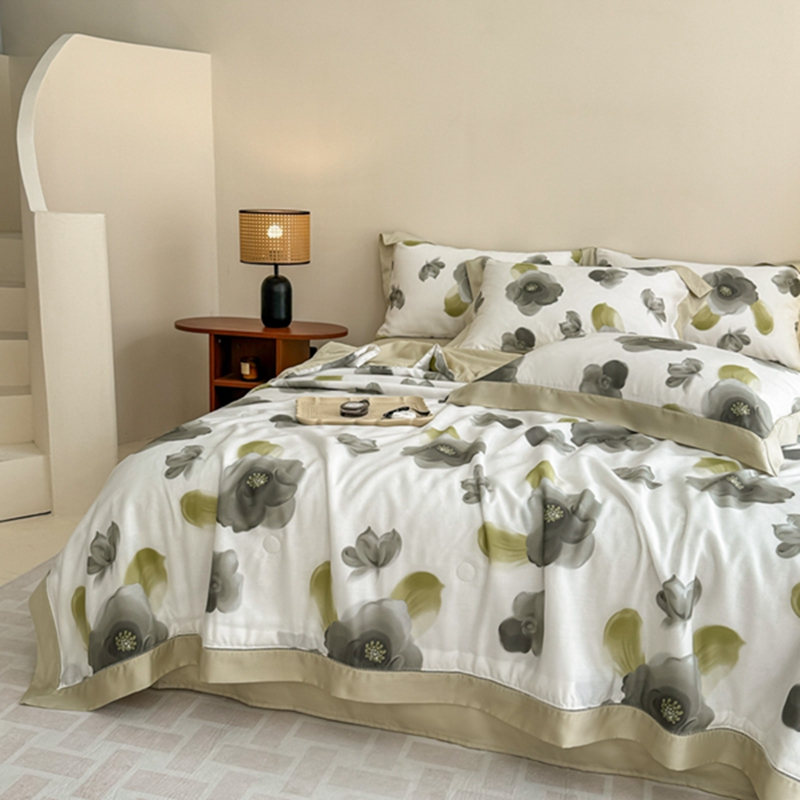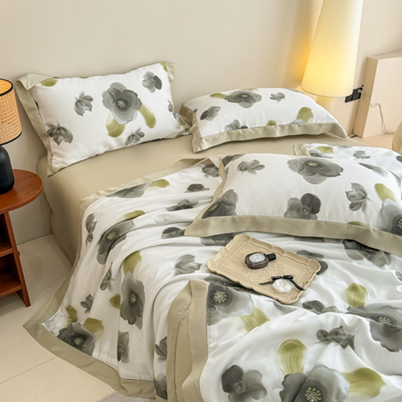 若未2025新款法式莱赛尔天丝印花镂空夏被和夏被四件套 亦有梦境