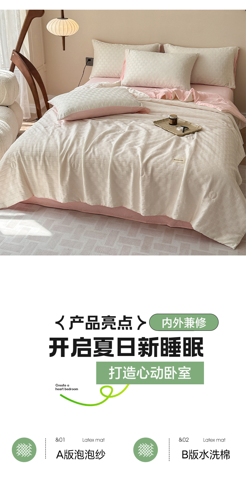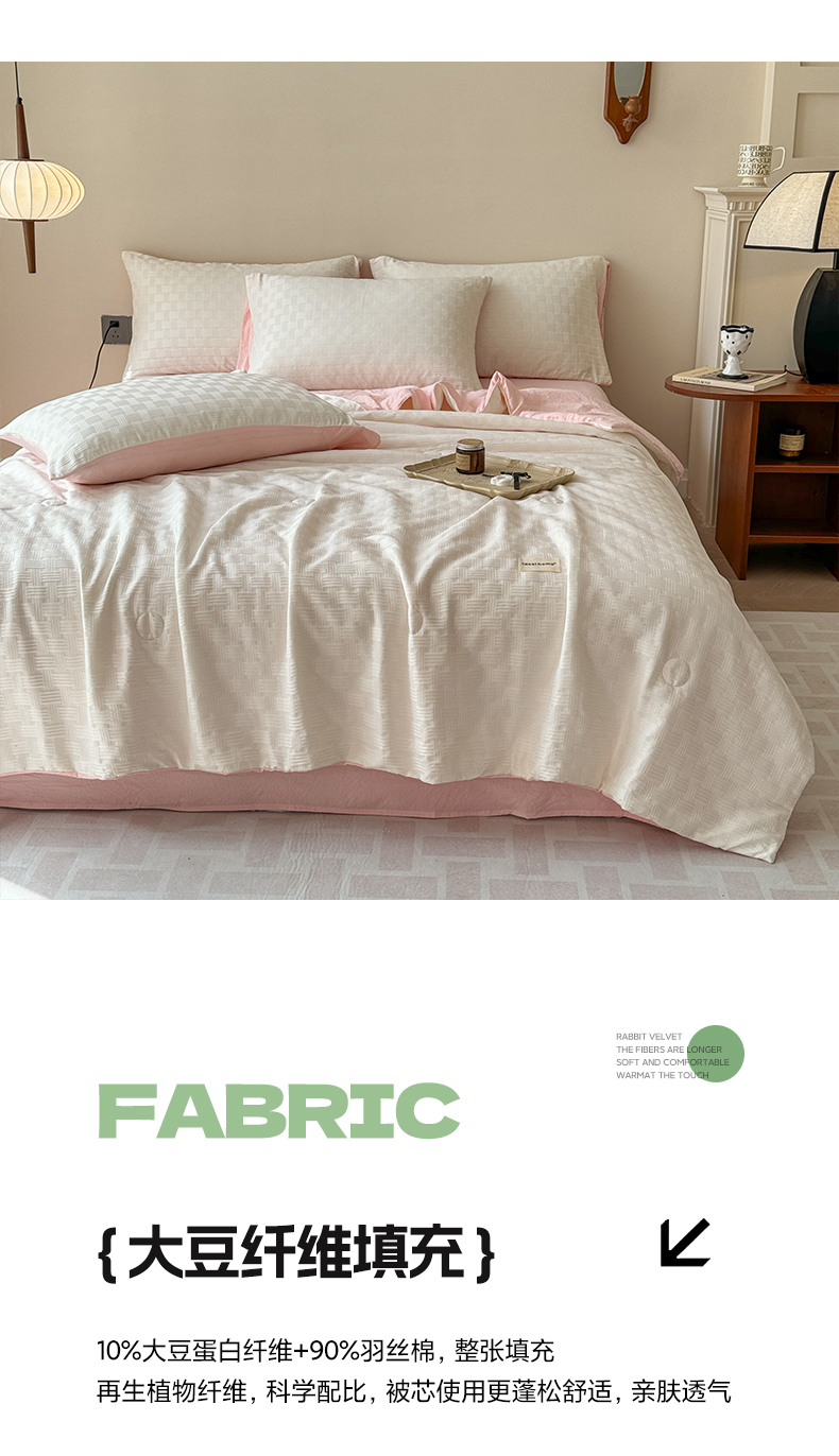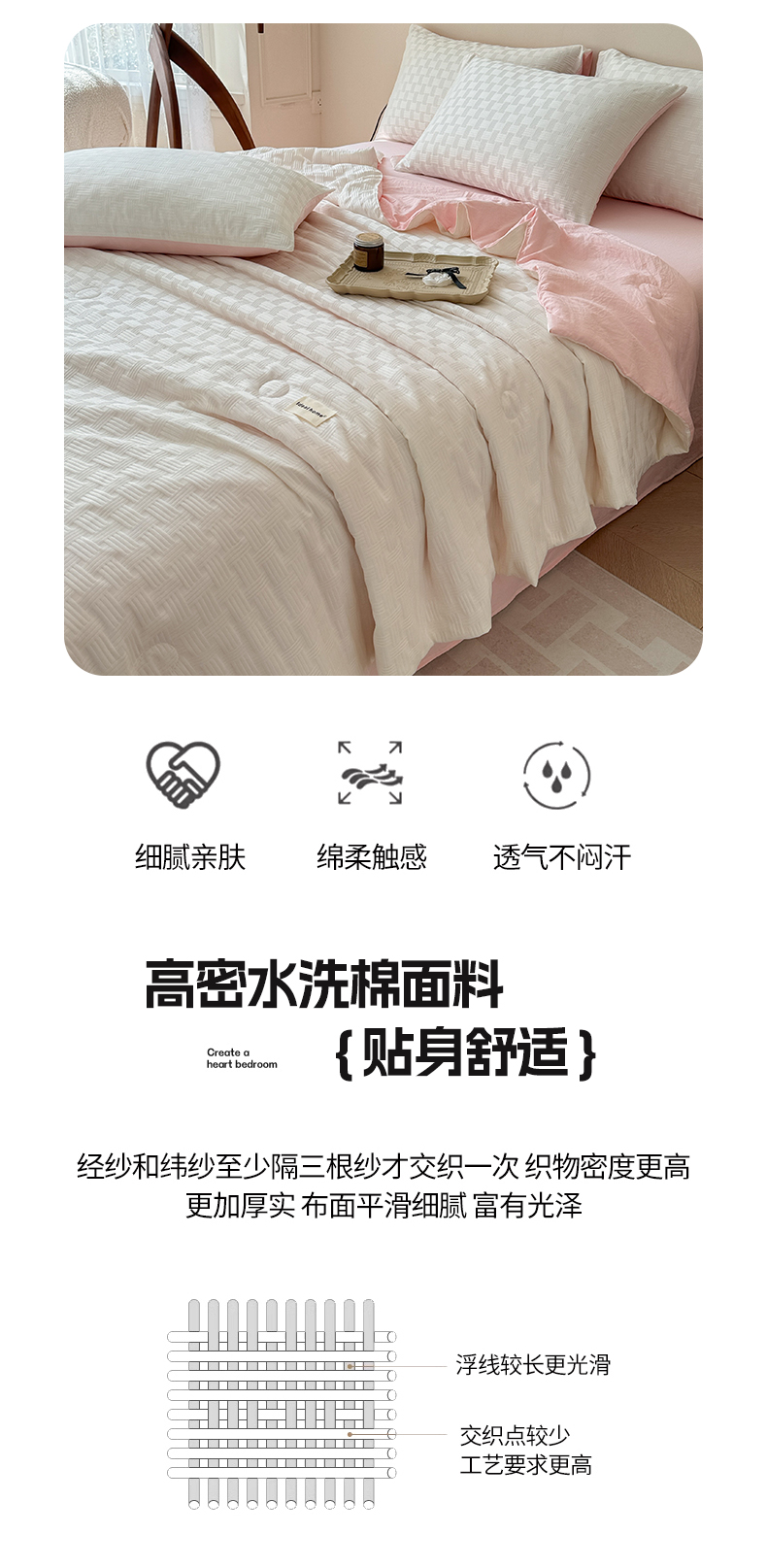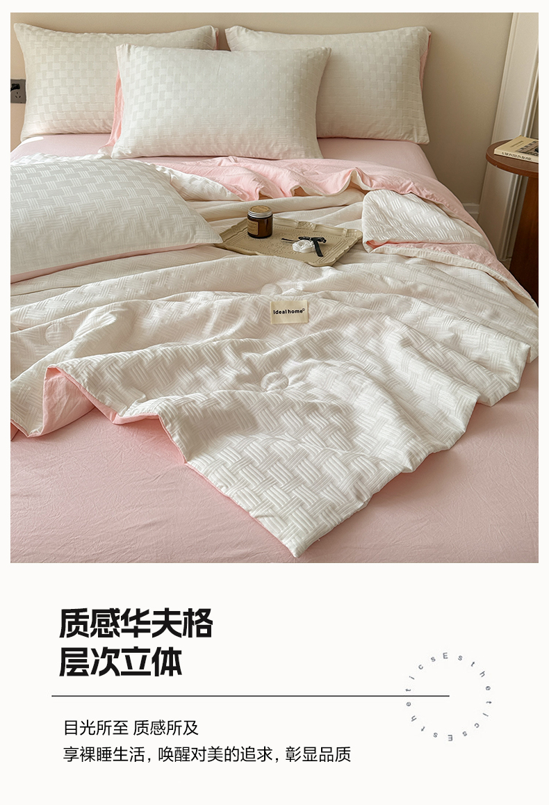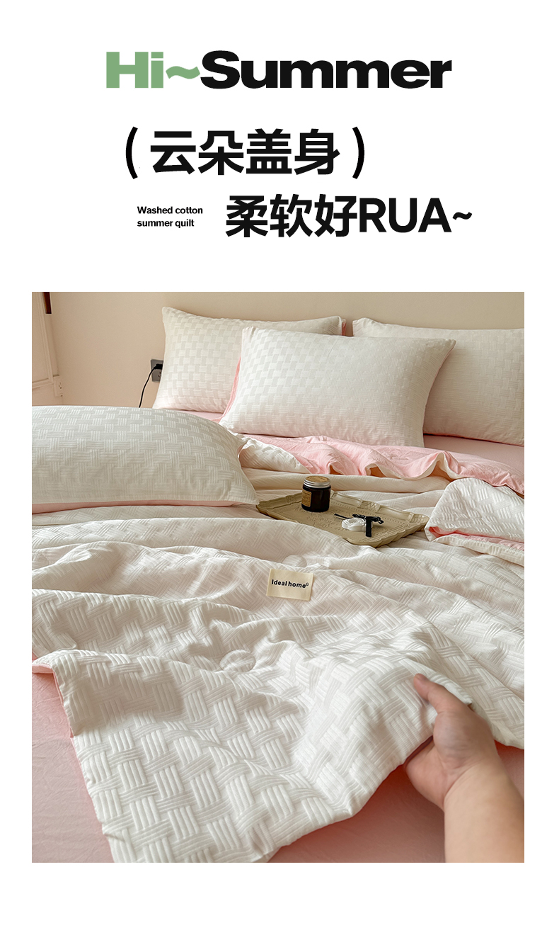 当前位置: 91家纺网 > 商品网购 > 床品套件 > 四件套 > 夏被四件套 > 2024沐辰家居-新款泡泡纱A类大豆纤维夏被四件套 奶油白粉