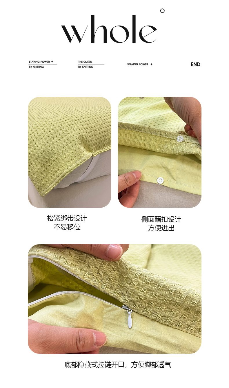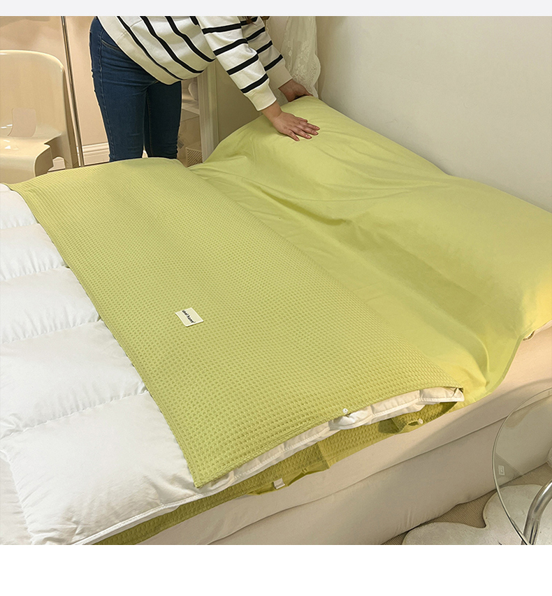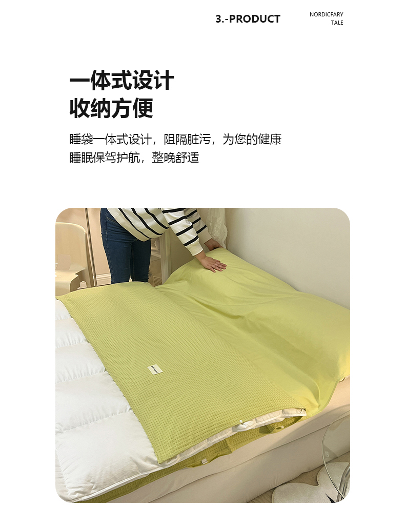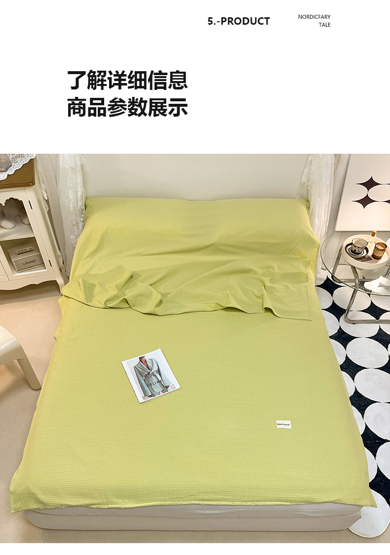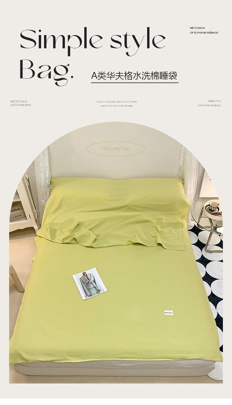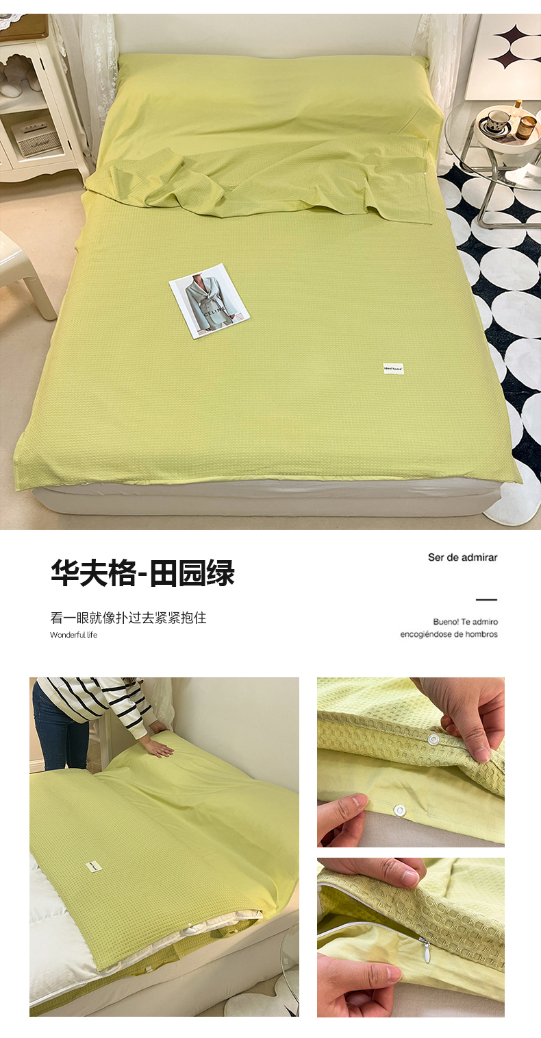 商品名称:沐辰 2024新款睡袋全棉A类华夫格睡袋 华夫格-田园绿