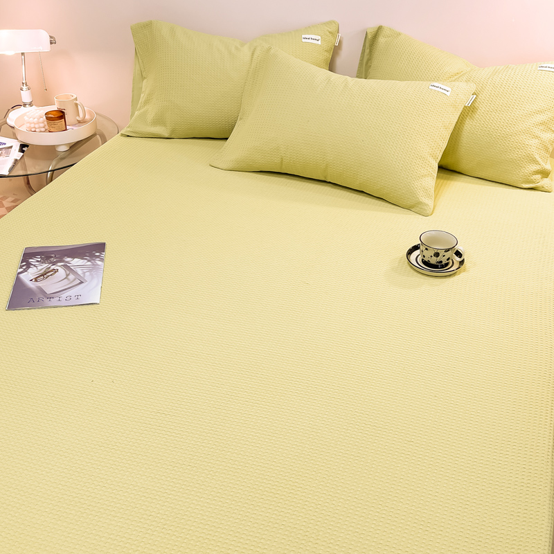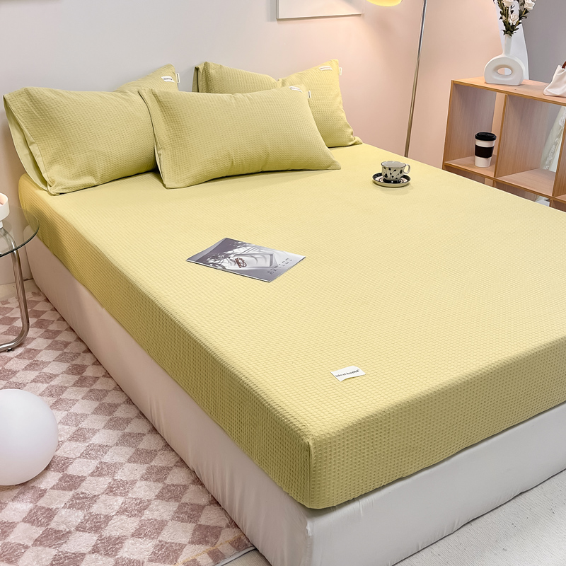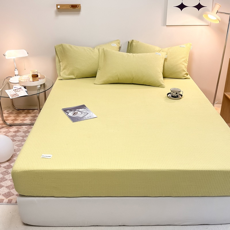 2024沐辰家居-华夫格系列床笠单品 嫩绿