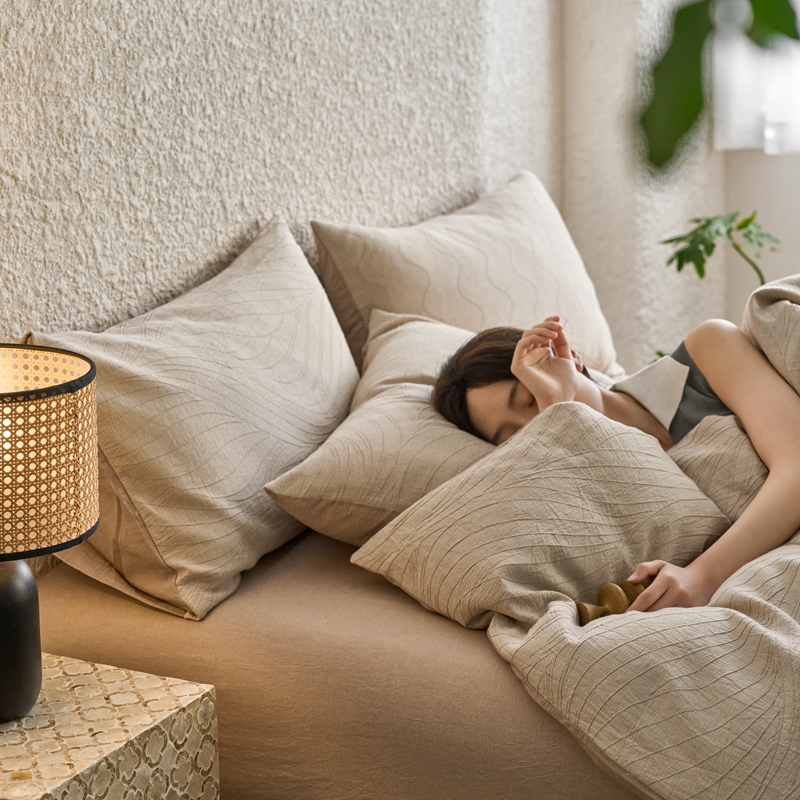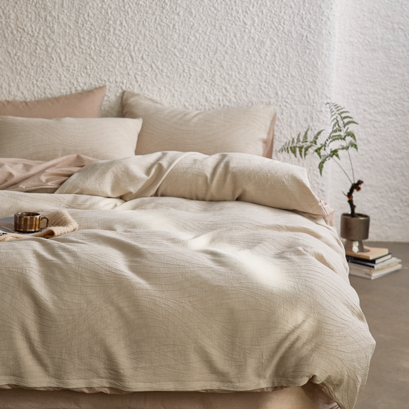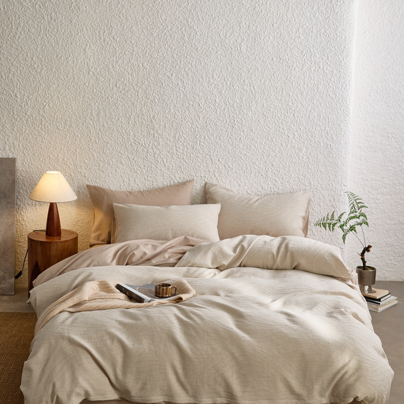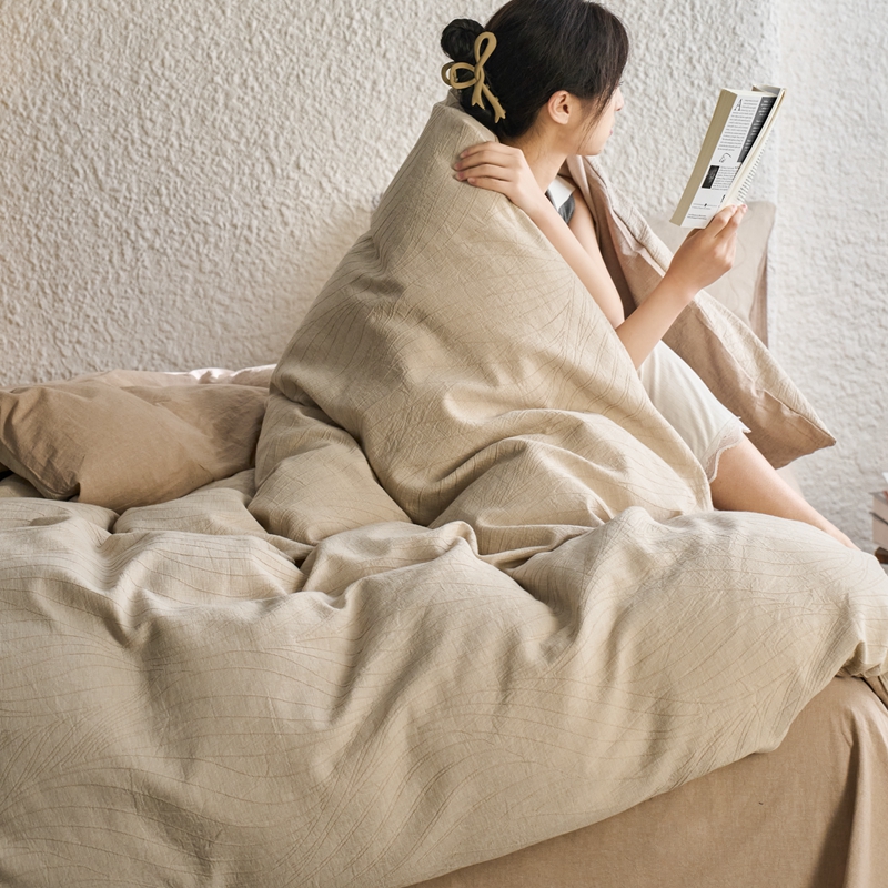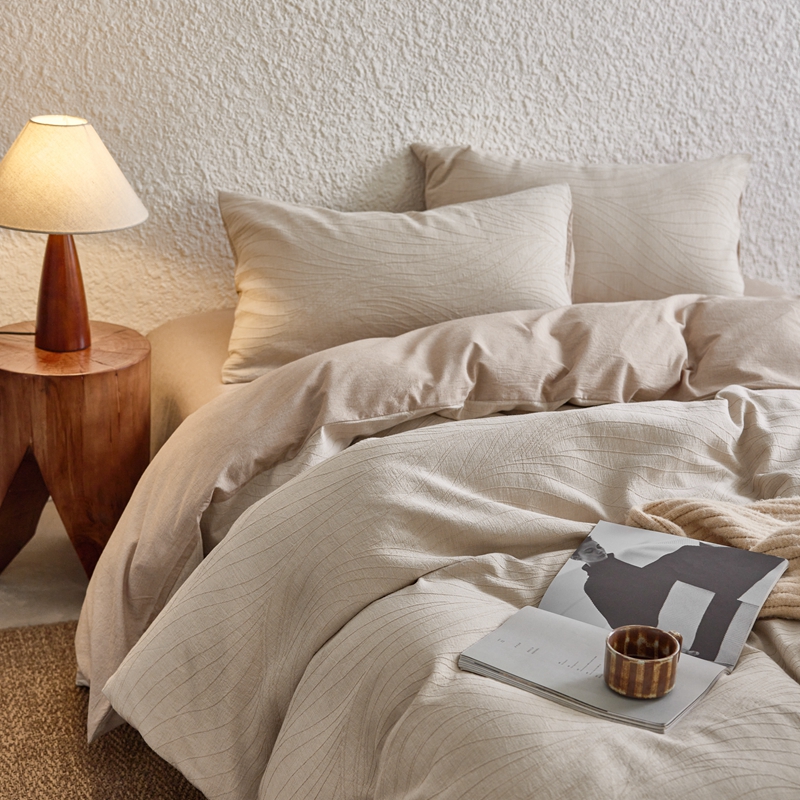商品名称:安莱生活 2025新款双层纱色织提花波浪系列四件套 乱纹波浪 乱纹波浪-卡其