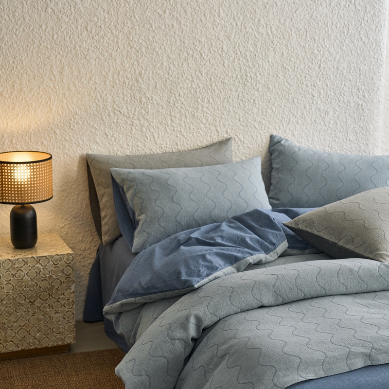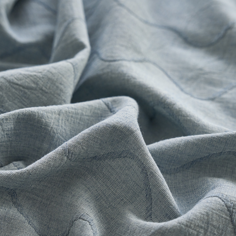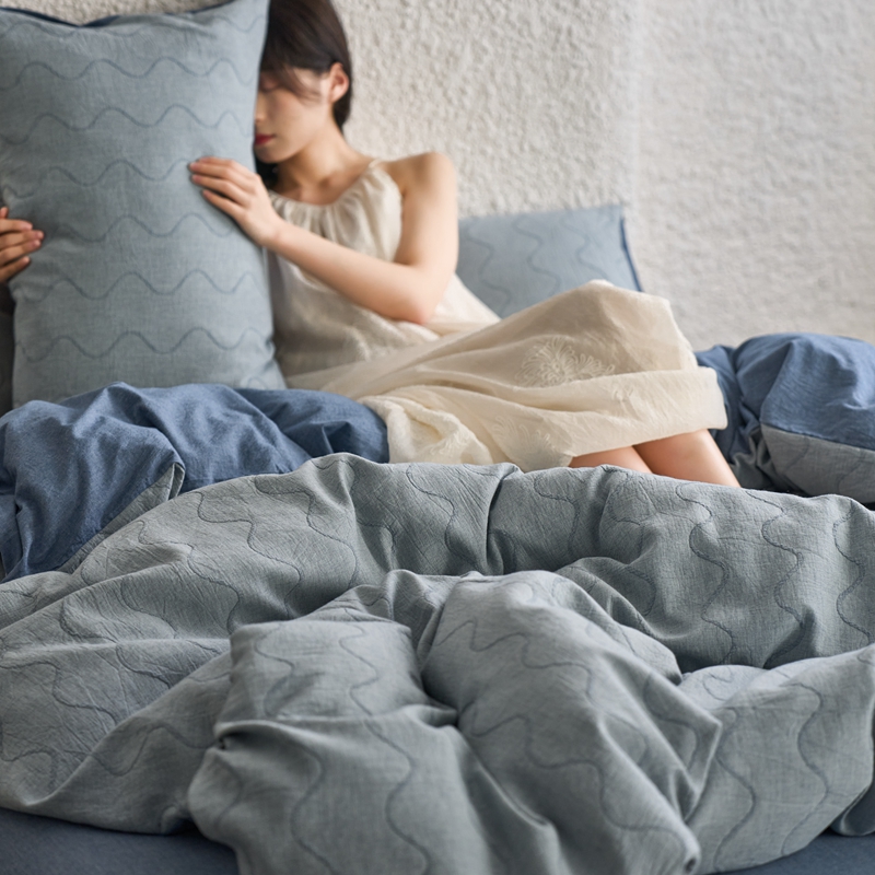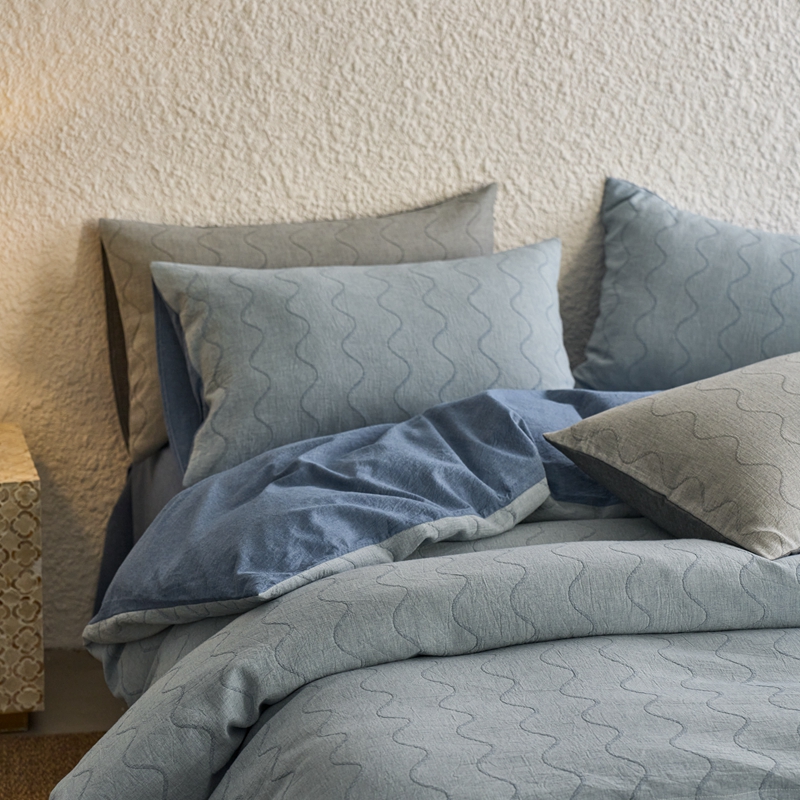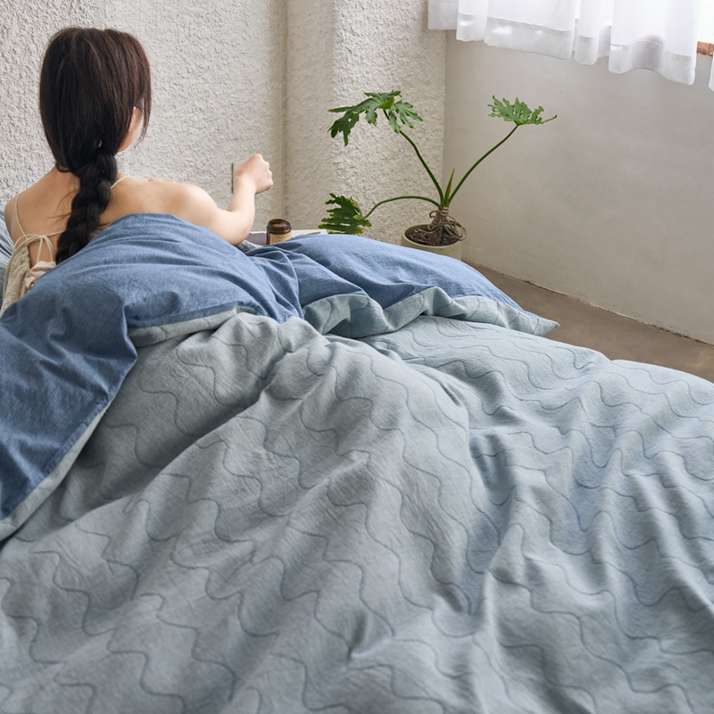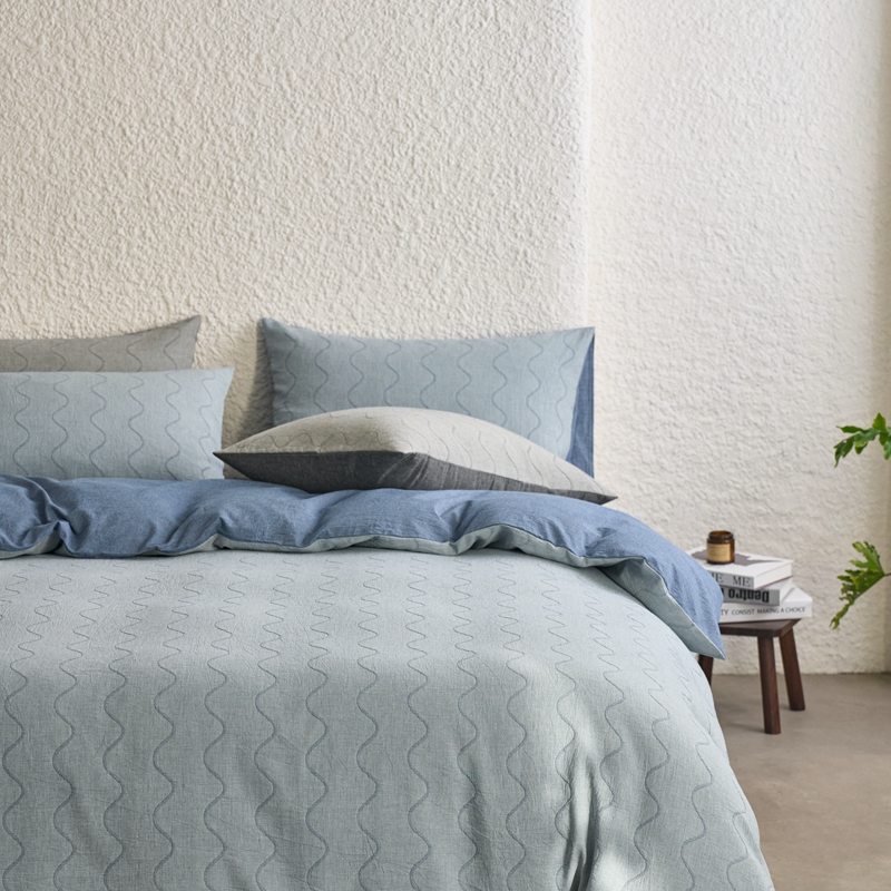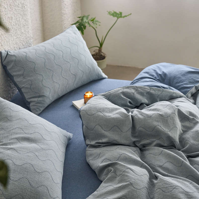 商品名称:安莱生活 2025新款双层纱色织提花波浪系列四件套 竖纹波浪 竖纹波浪-深蓝