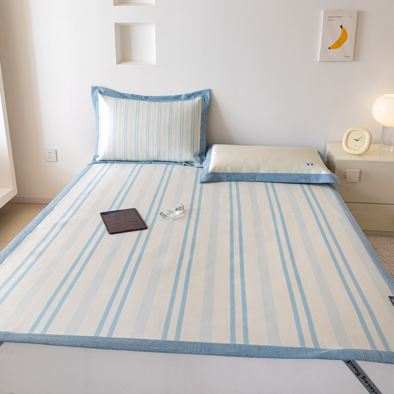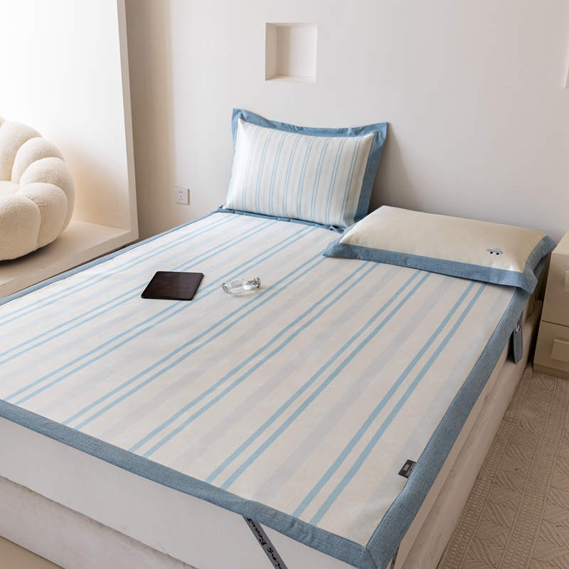 本希家居 2024新款小清新刺绣系列高端可水洗冰丝席 蓝条小汽车平席
