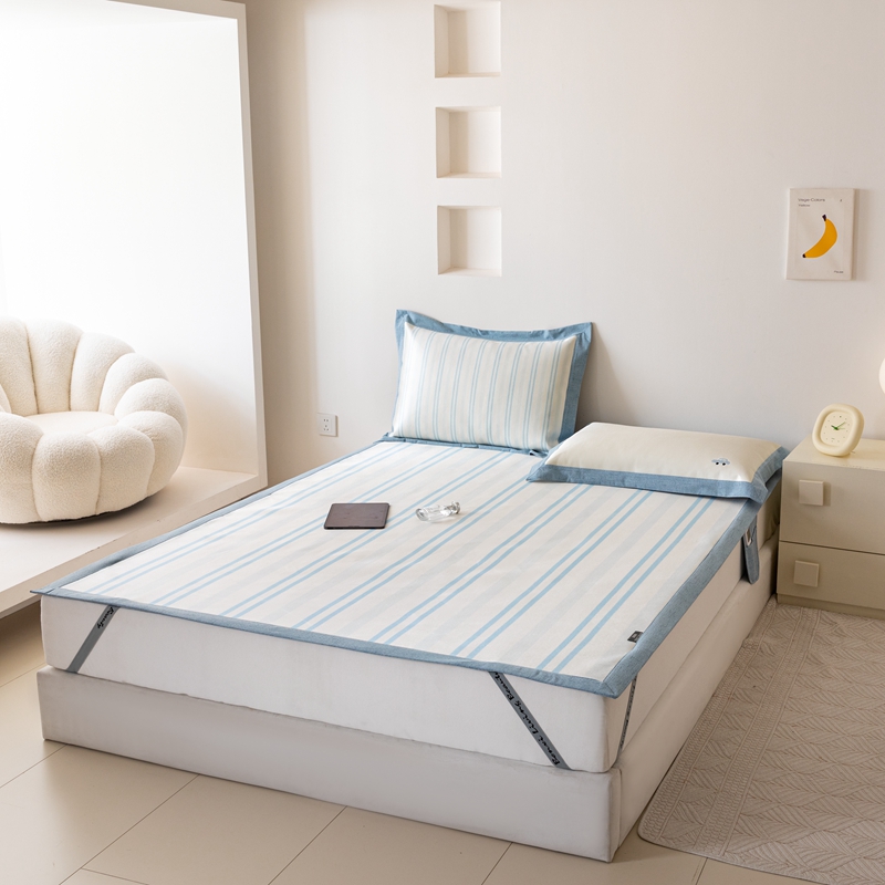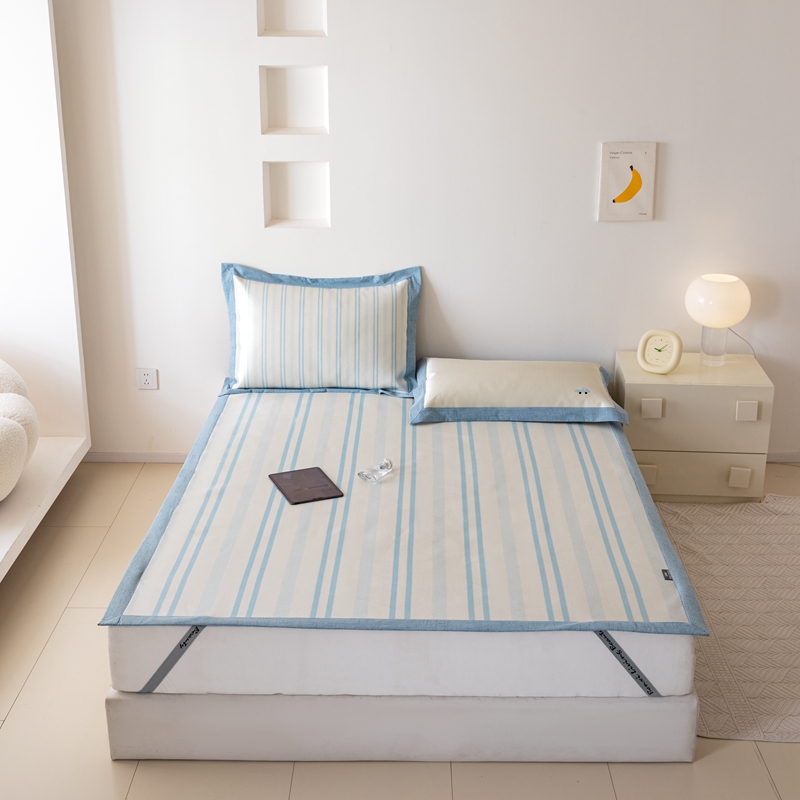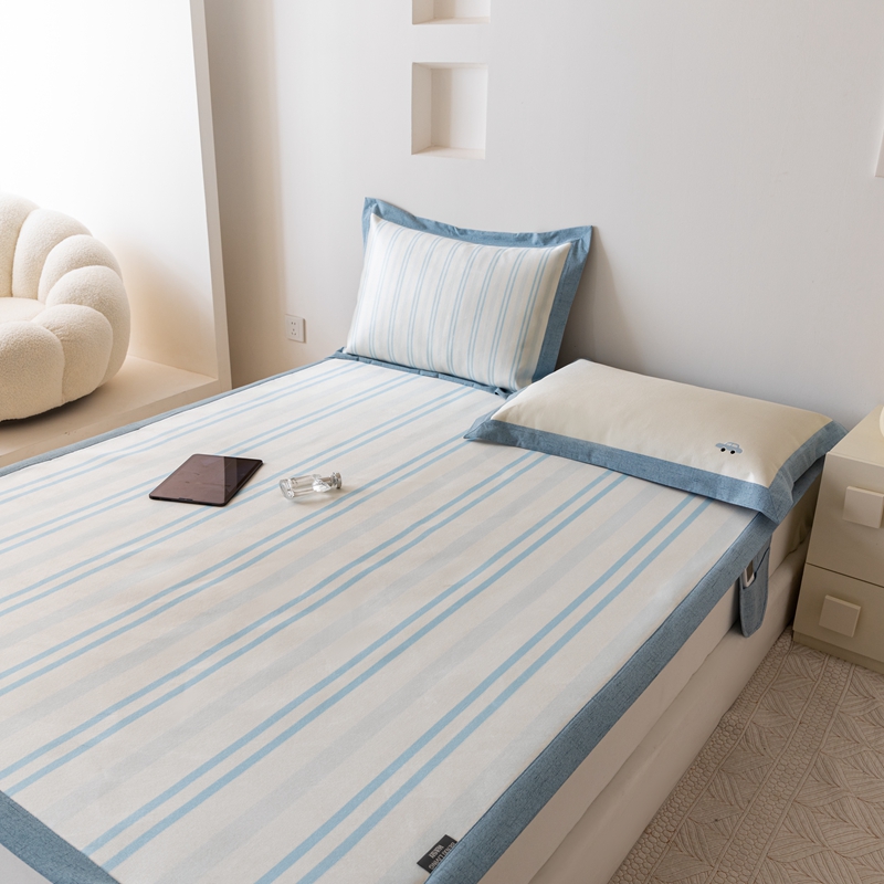 商品名称:本希家居 2024新款小清新刺绣系列高端可水洗冰丝席 蓝条小汽车平席