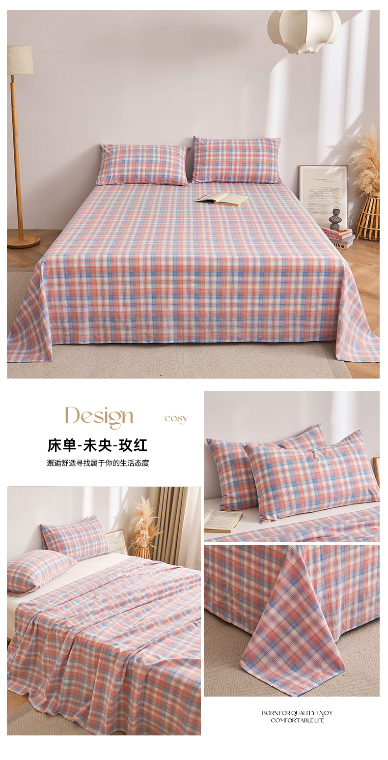 • 91家纺网 家纺一手货源 找家纺 雅萱家纺 2024新款雅萱-色织全棉水洗棉床单 床单-未央-玫红