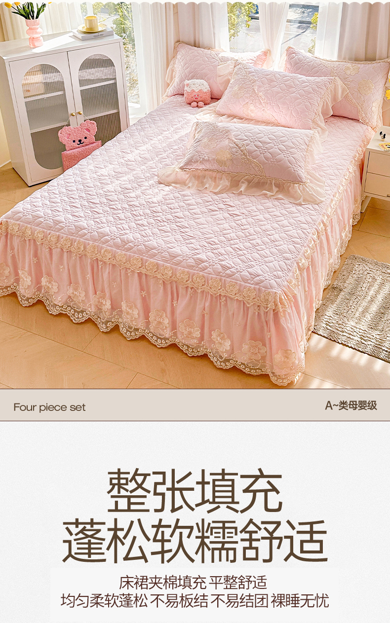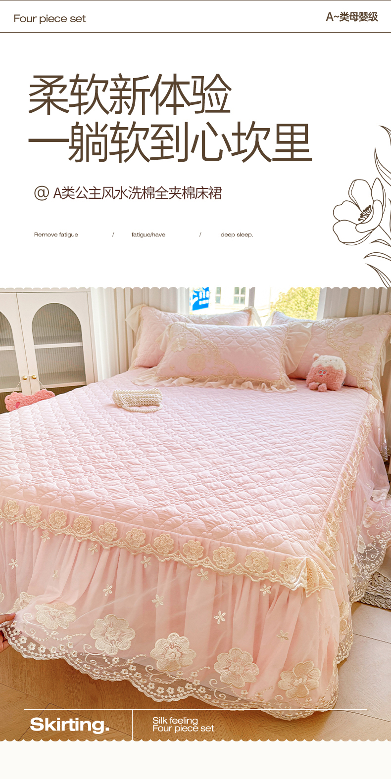 商品名称:(总)罗艺轩 2024新款公主风水洗棉夹棉单床裙-浪漫满屋床