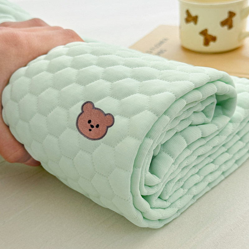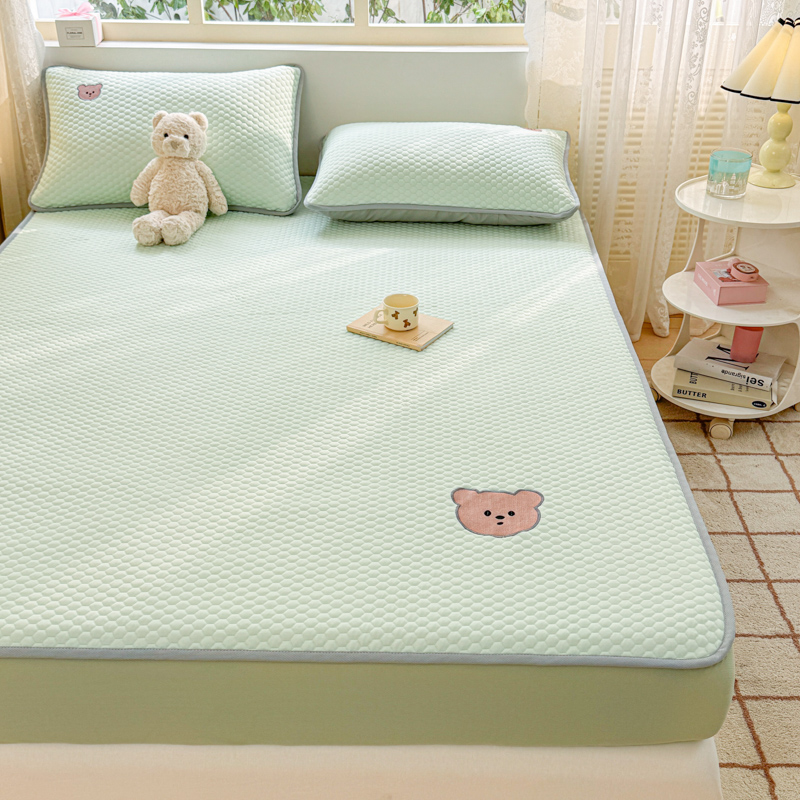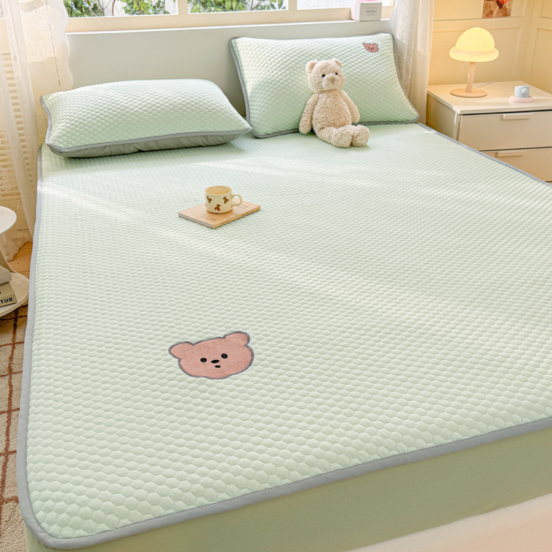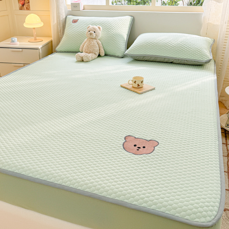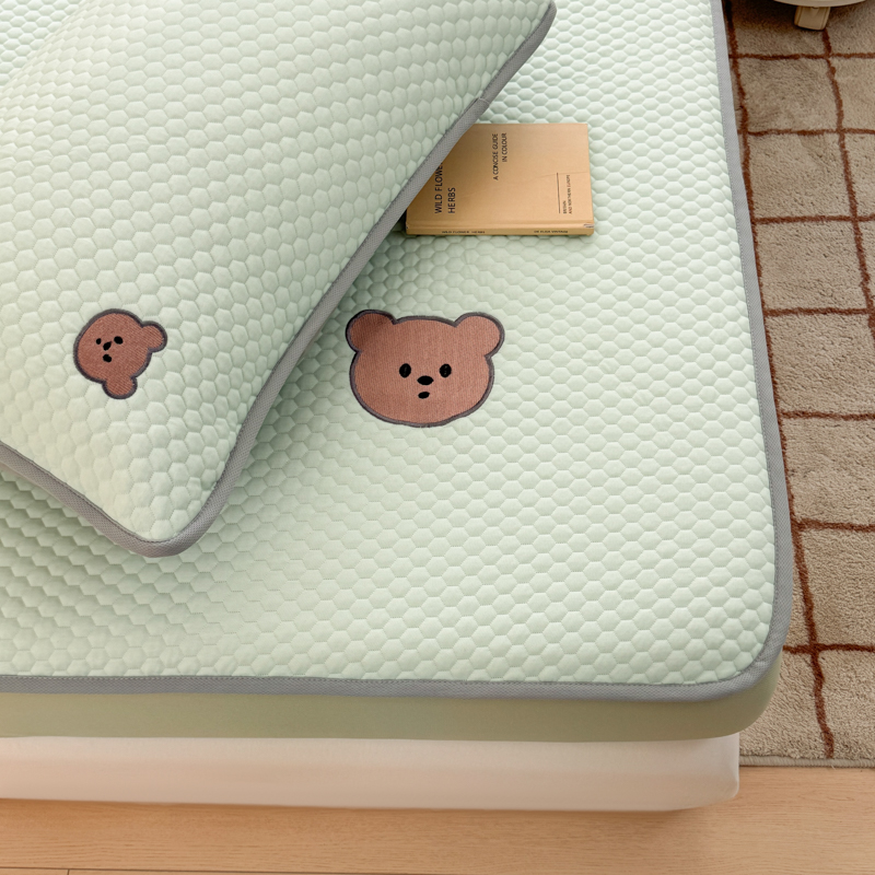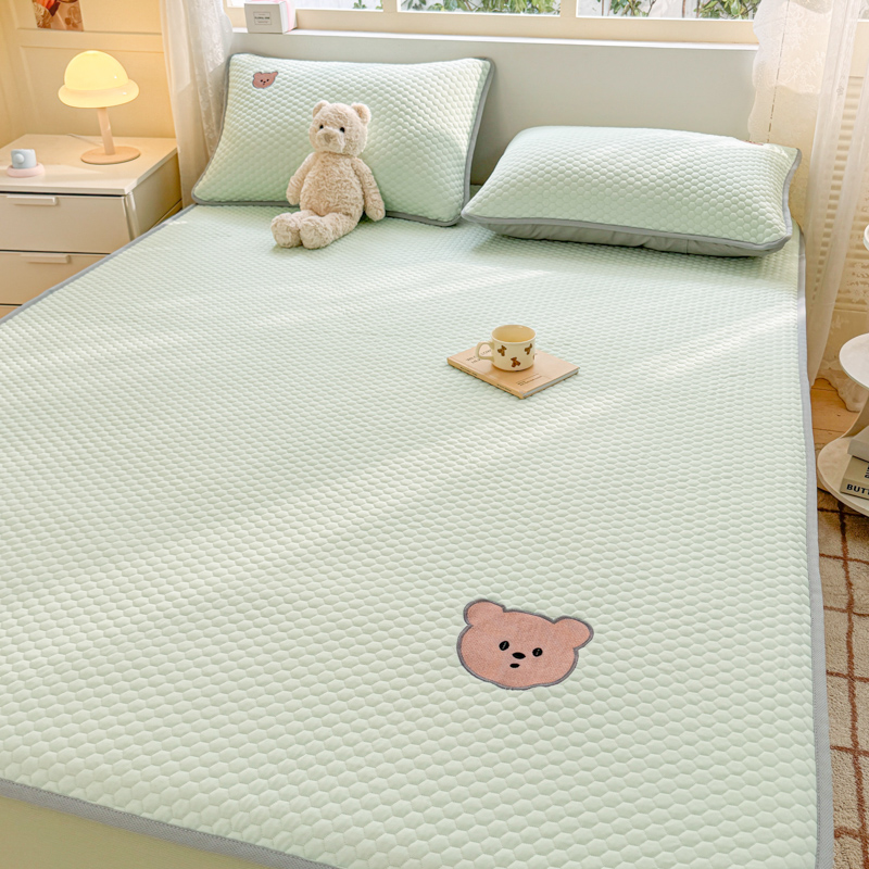 慕尚家纺 2025新款冻冻席刺绣系列 凉冻冻席小熊绿