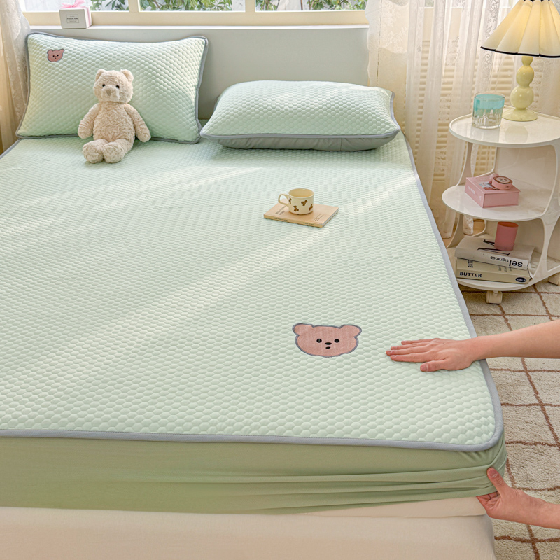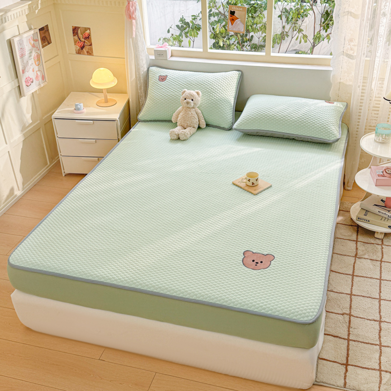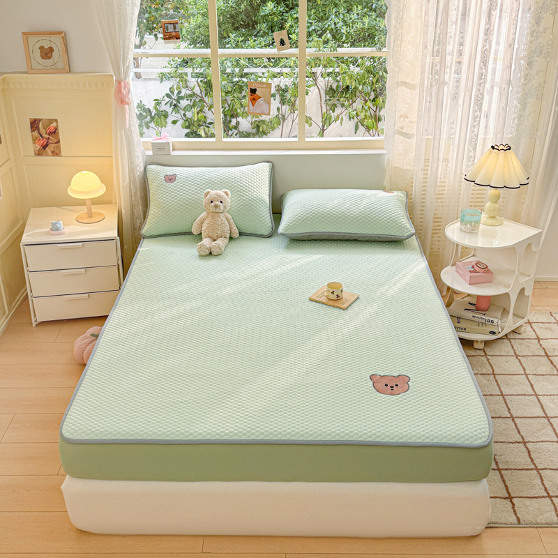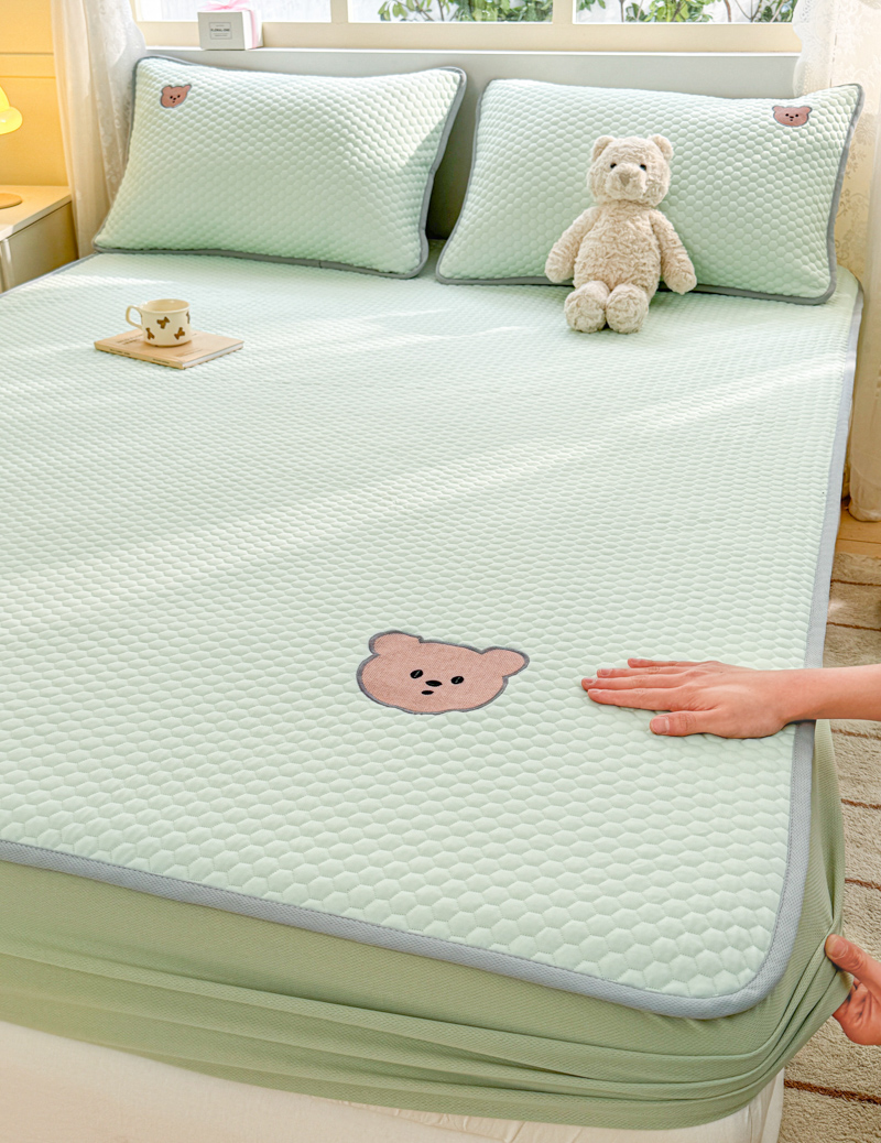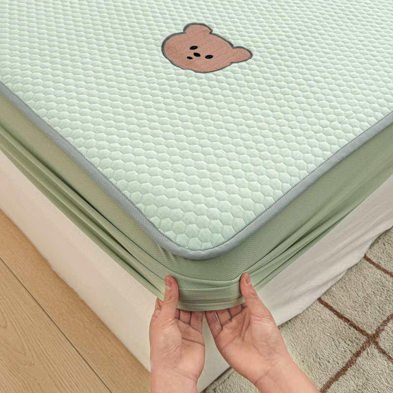 慕尚家纺 2025新款冻冻席刺绣系列 凉冻冻席小熊绿