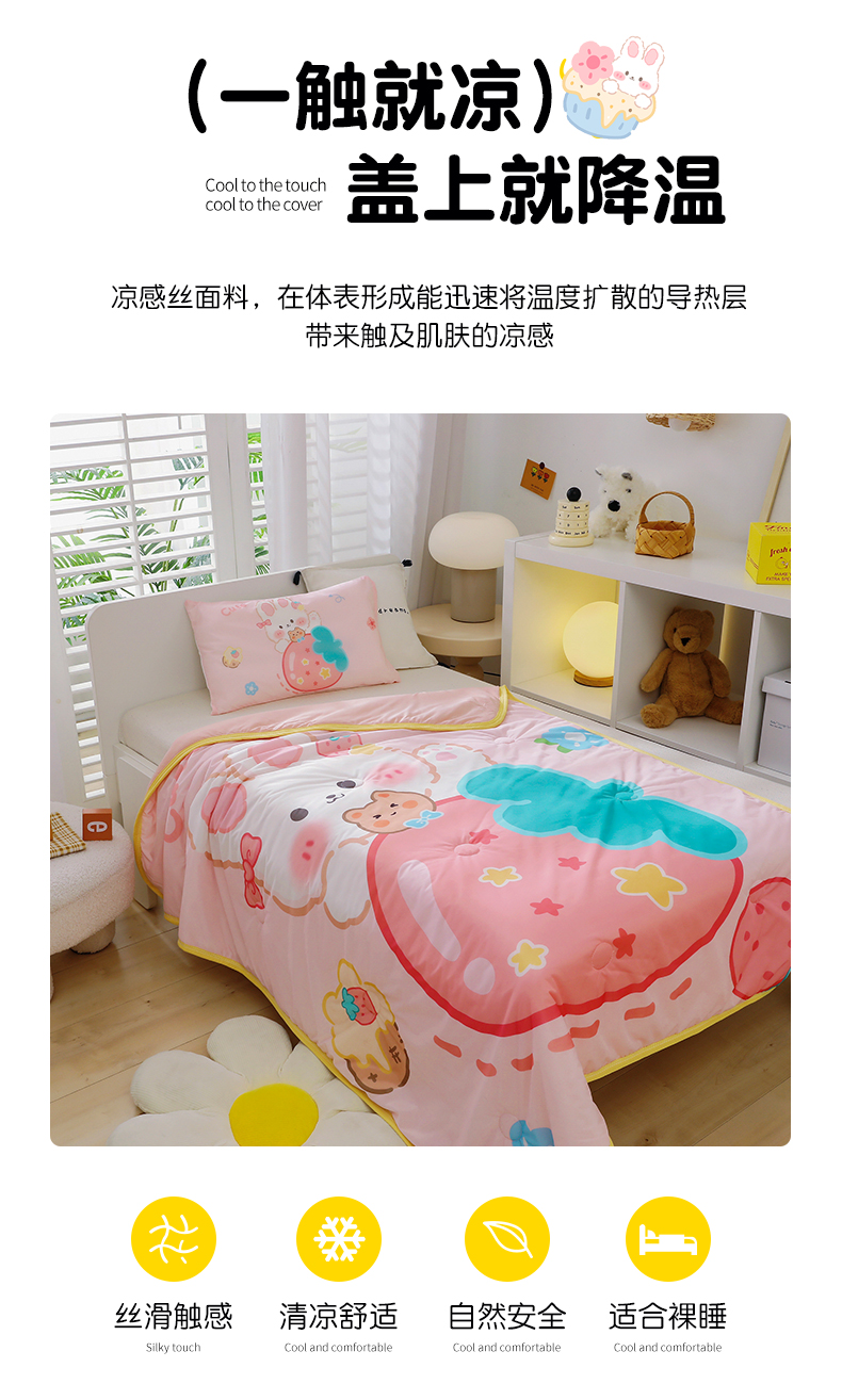 商品名称:鱼宝 2024新款大版卡通儿童凉感丝夏被 甜心小兔