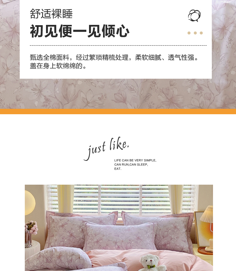 当前位置: 91家纺网 > 商品网购 > 床品套件 > 四件套 > 全棉普通四件套 > 星期三家纺 2024年5月新款铂金全棉13372四件套(加老板微信有会员价) 栀柔