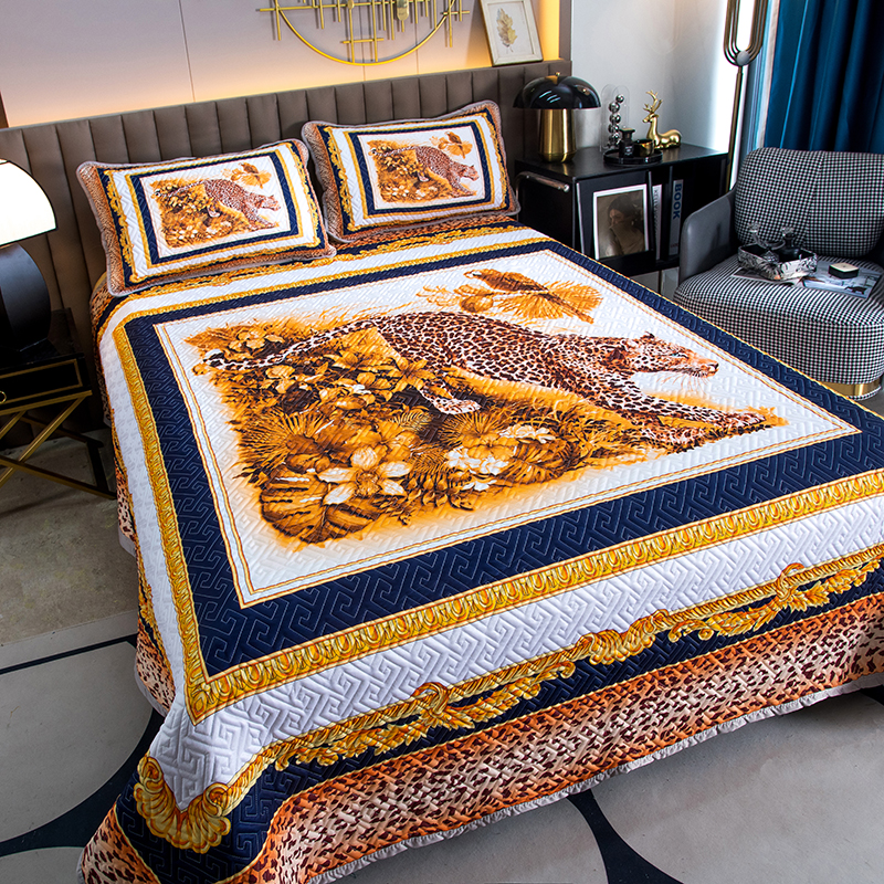 商品名称:爵仕家纺 2025新款凉感真丝床盖三件套 豹