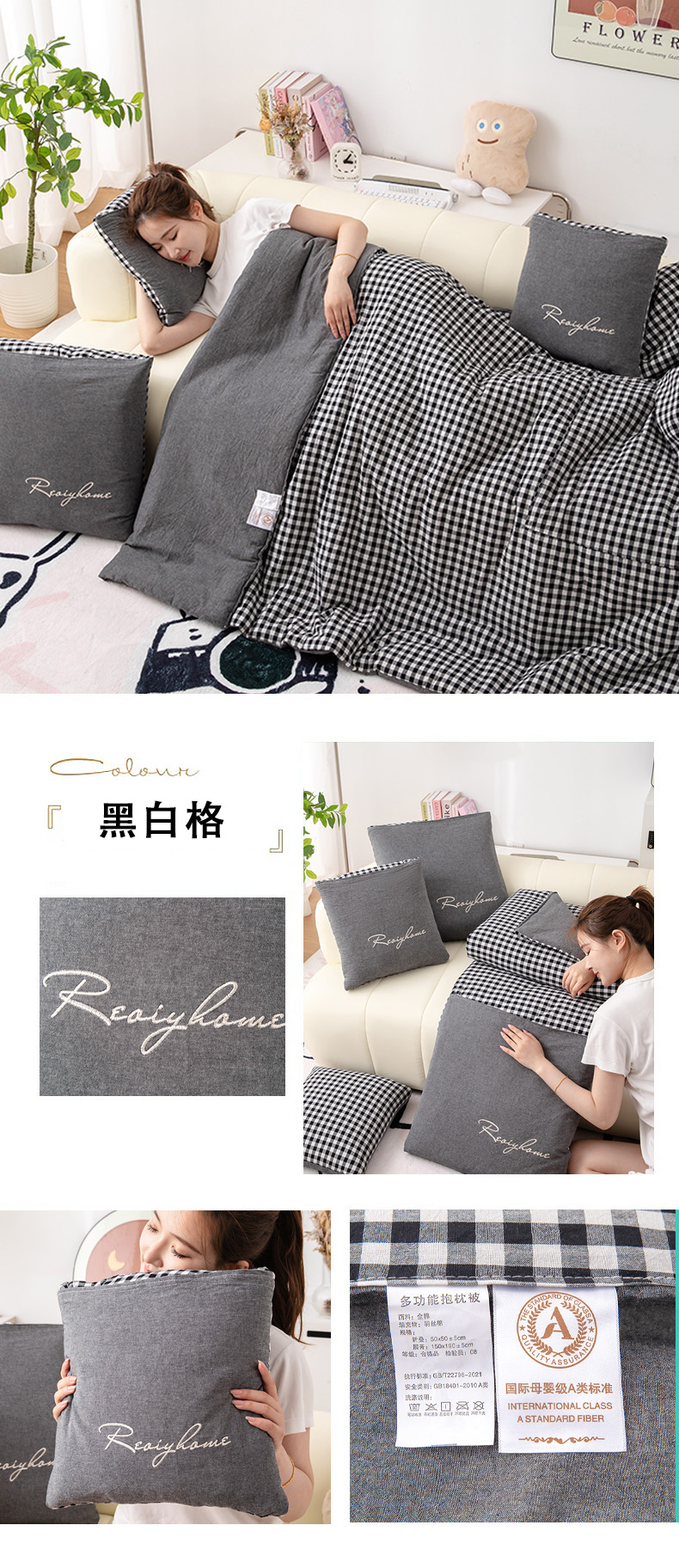 商品名称:吉利家居 2024新款A类全棉多功能口袋抱枕被 黑白格