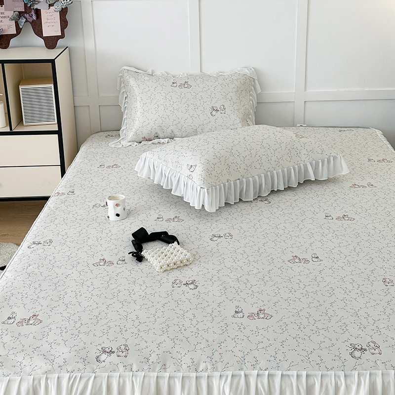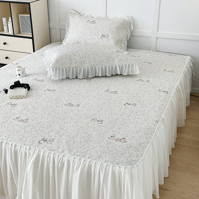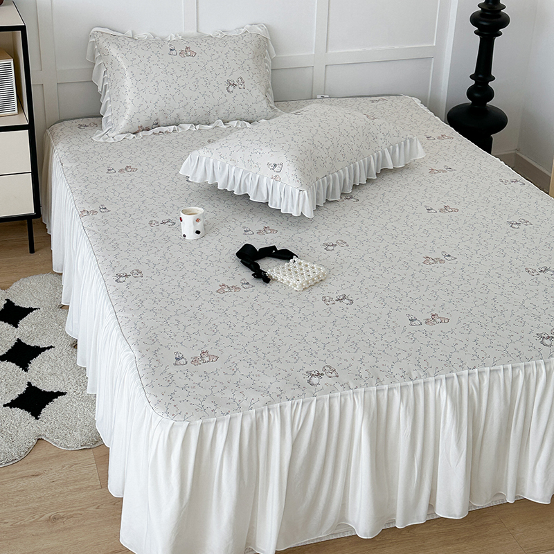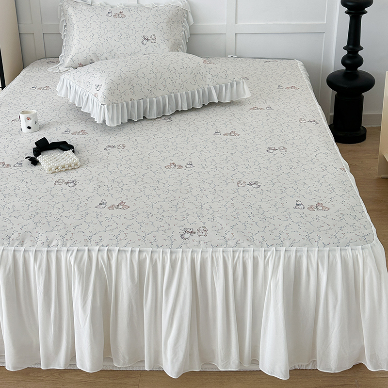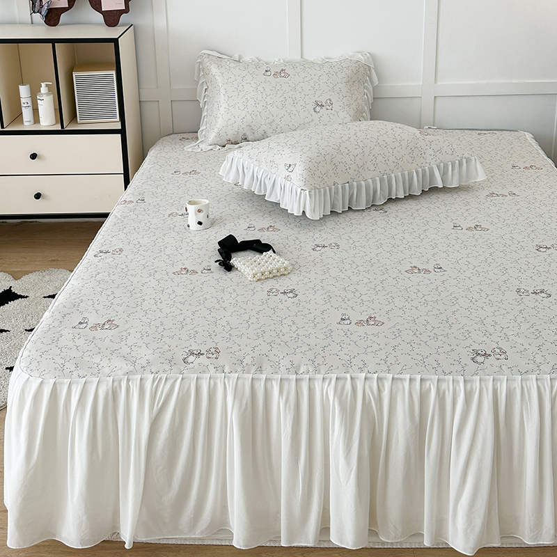 昔可家纺 2024新款A类900D仙仙雪纺床裙冰丝席 花楹兔