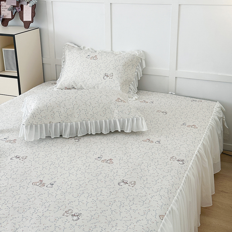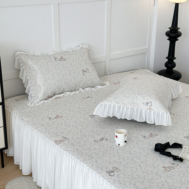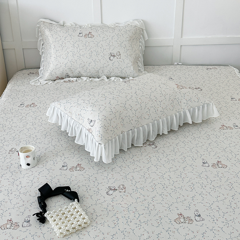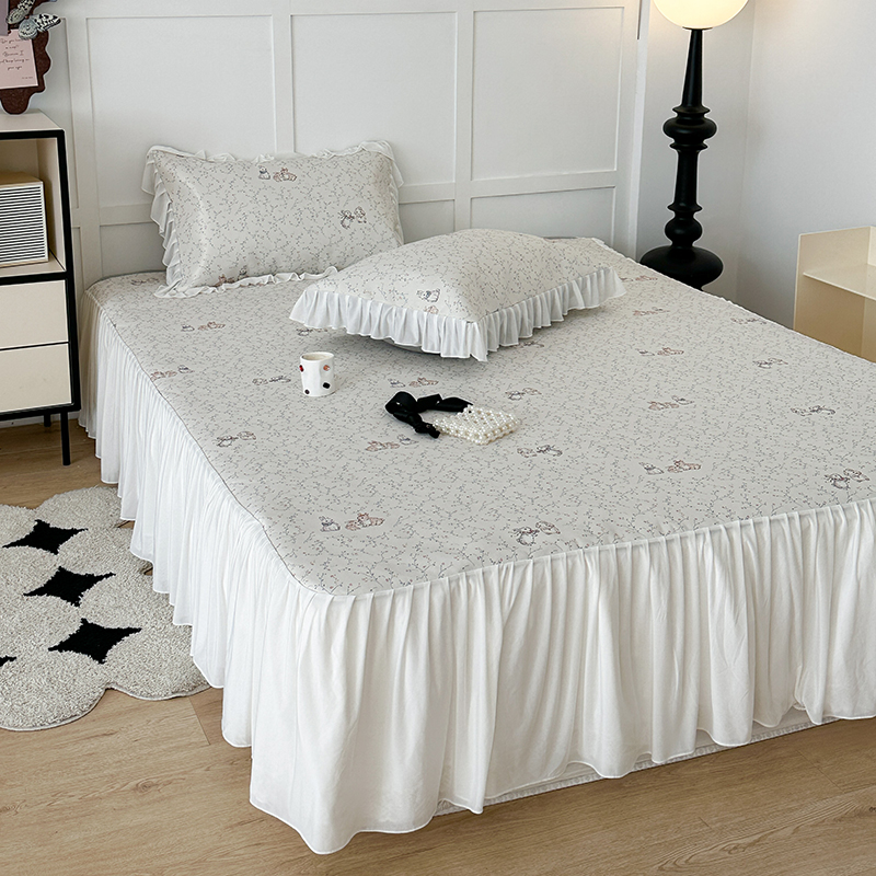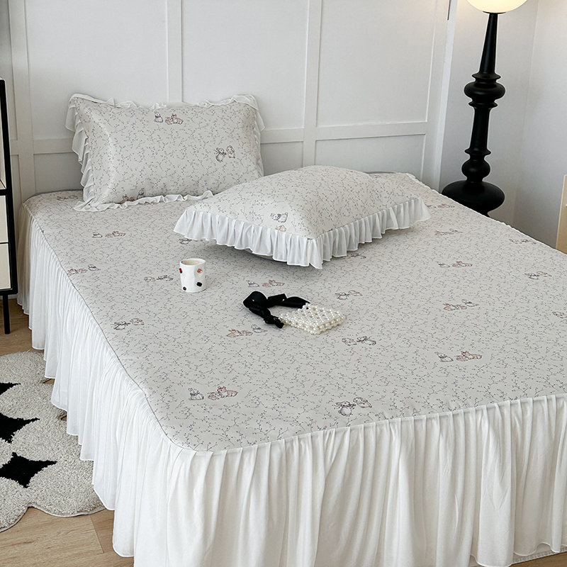 昔可家纺 2024新款A类900D仙仙雪纺床裙冰丝席 花楹兔