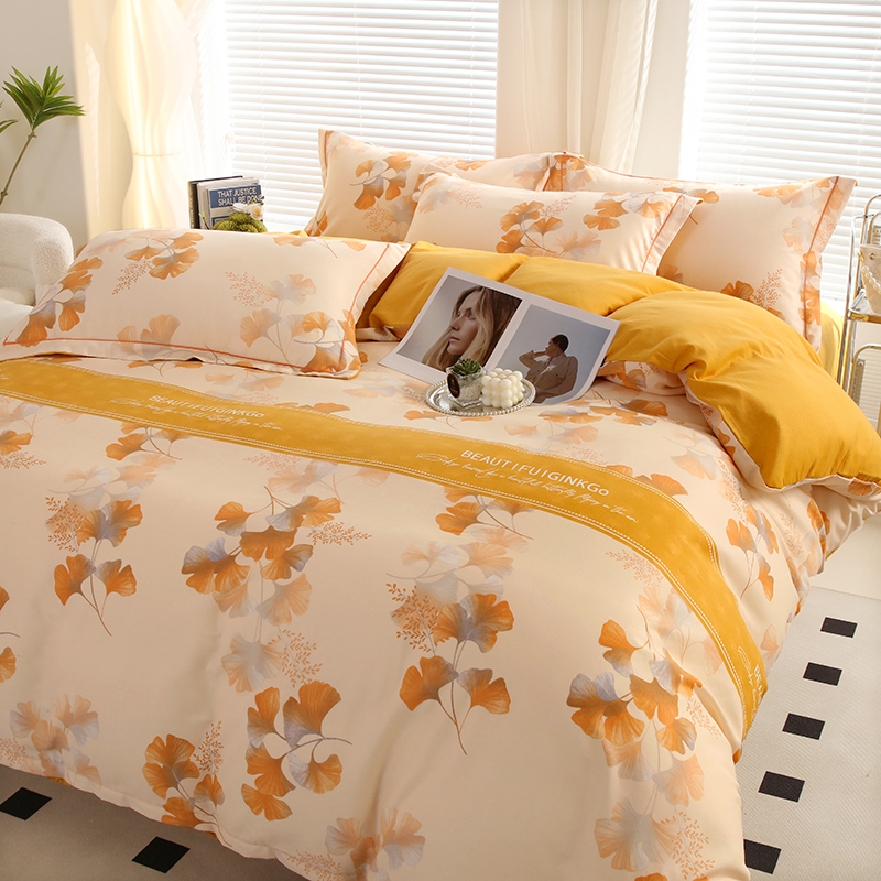 金纱玉纺家纺 2024新款加厚AB版四件套金叶飘香黄AB