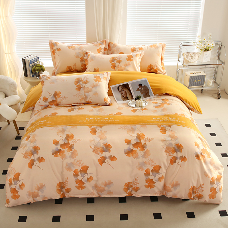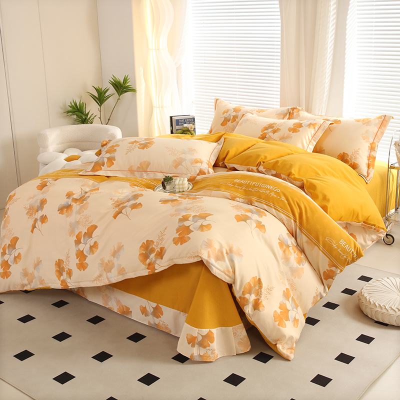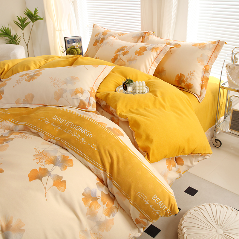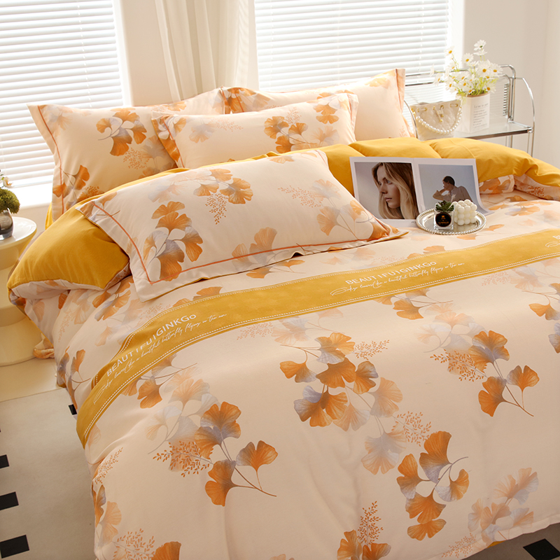 商品名称:金纱玉纺家纺 2024新款加厚AB版四件套金叶飘香黄AB