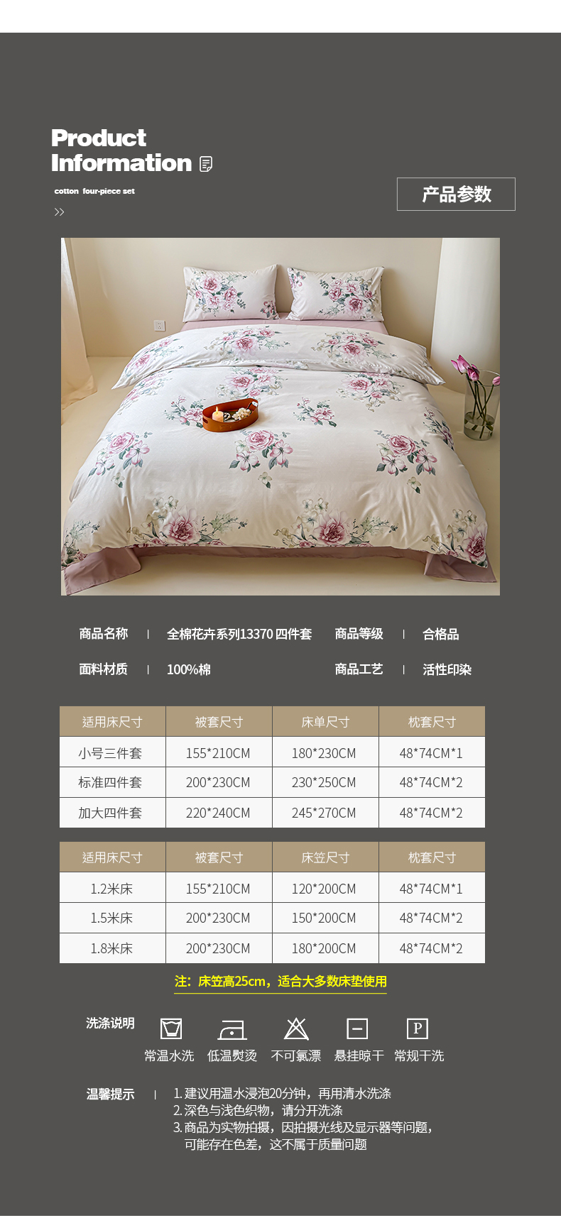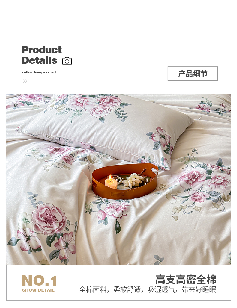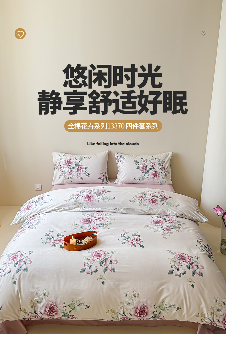 当前位置: 91家纺网 > 商品网购 > 床品套件 > 四件套 > 全棉普通四件套 > 2024新款全棉13370花卉款系列四件套 花云