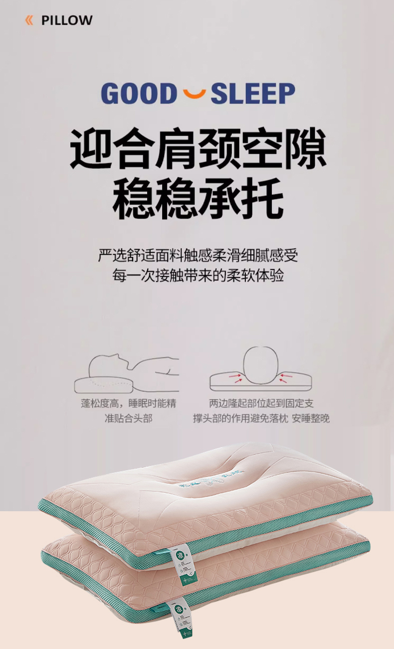 (总)梵希良品家纺 2025新款针织棉7A护颈枕头枕芯,反c深睡牵引分区枕-绿色,反c深睡牵引分区枕- 粉色