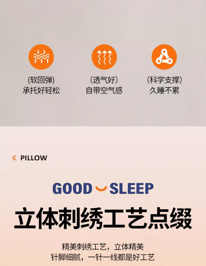 (总)梵希良品 2024新款纯棉双层三合一护颈枕助睡眠枕头枕芯40*60cm,双层三合一护颈枕800g,双层三合一护颈枕900g,双层三合一护颈枕1000g