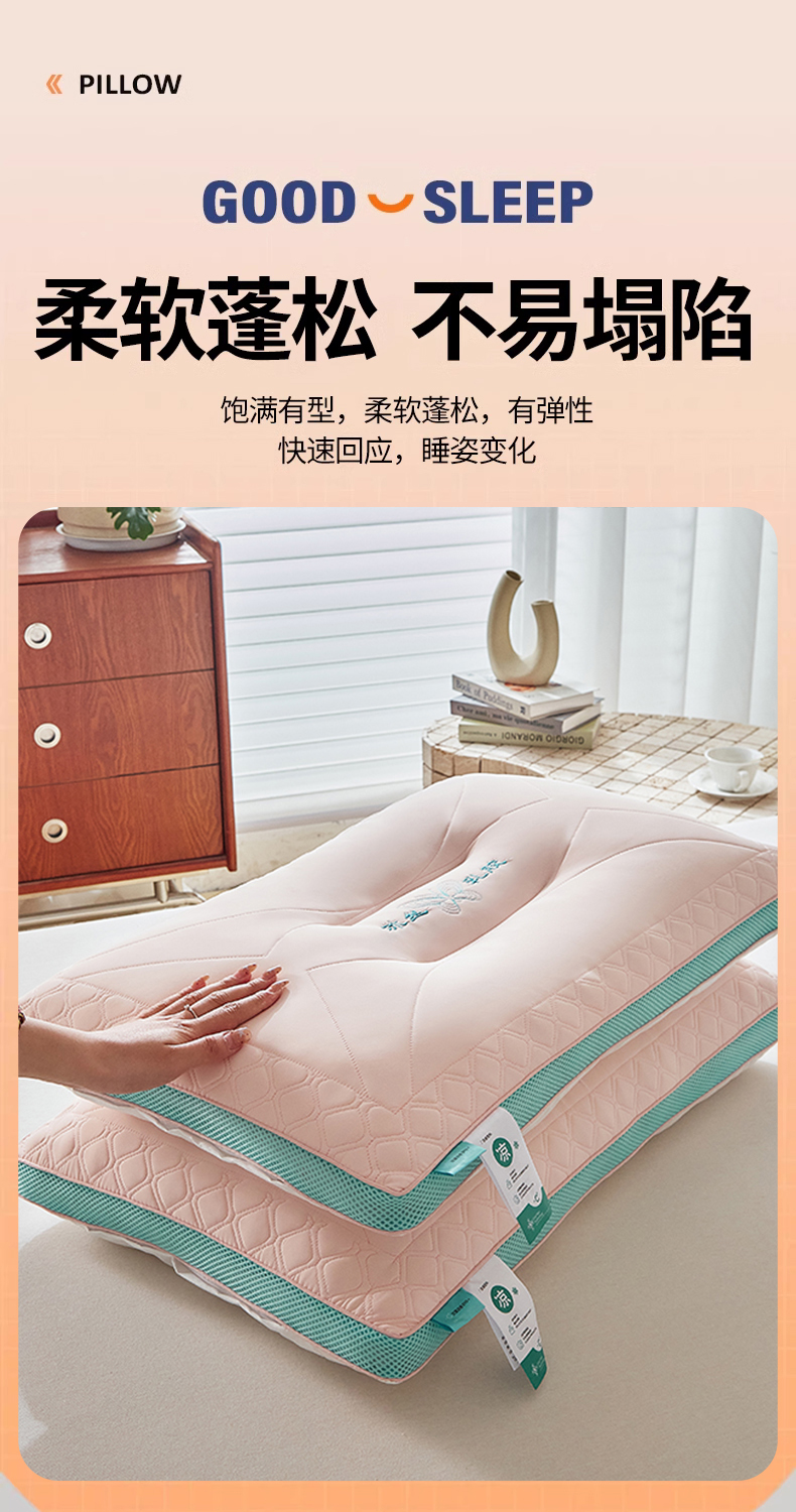 (总)梵希良品家纺 2024新款双层三枕合一护颈枕助睡眠枕头枕芯,低枕800g,中枕900g,高枕1000g