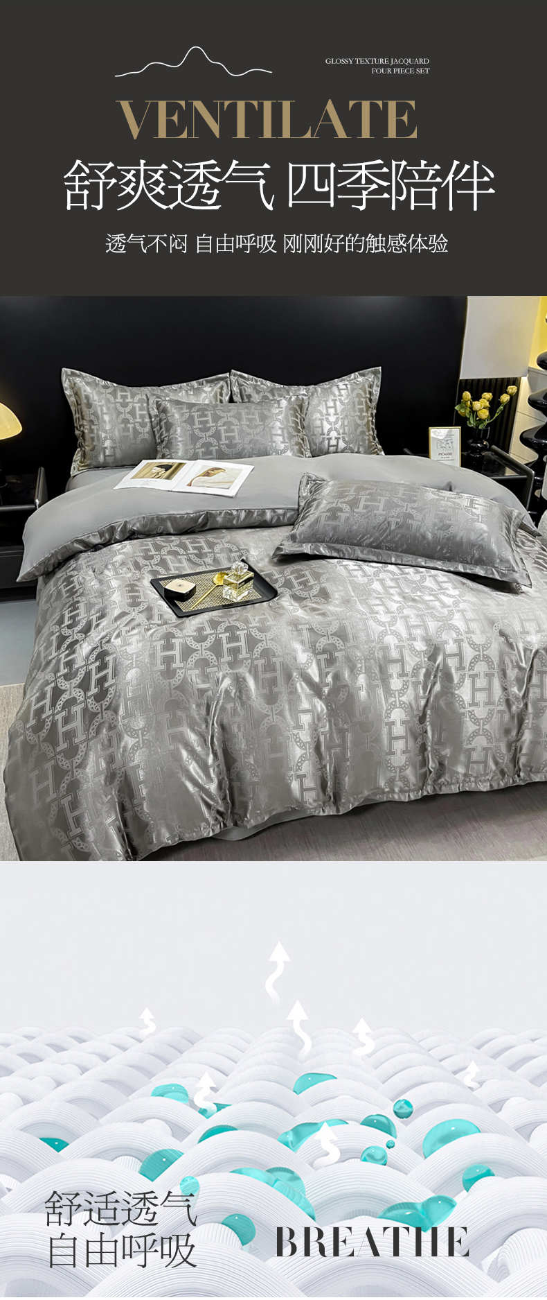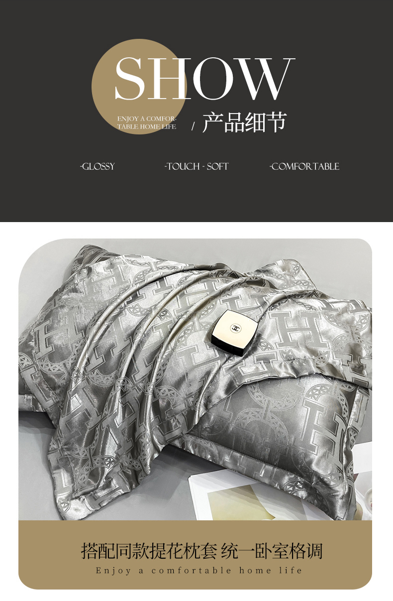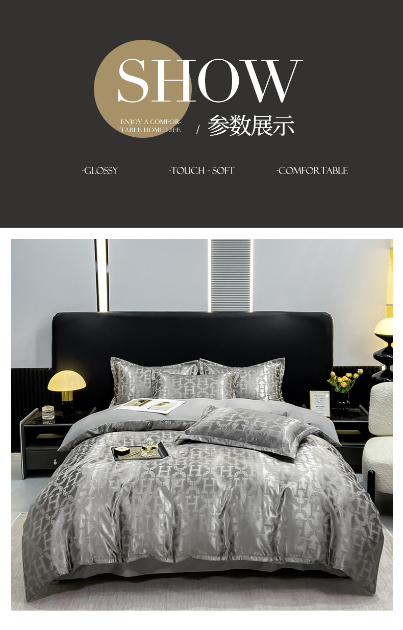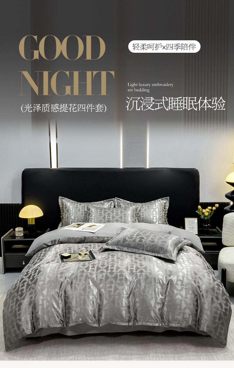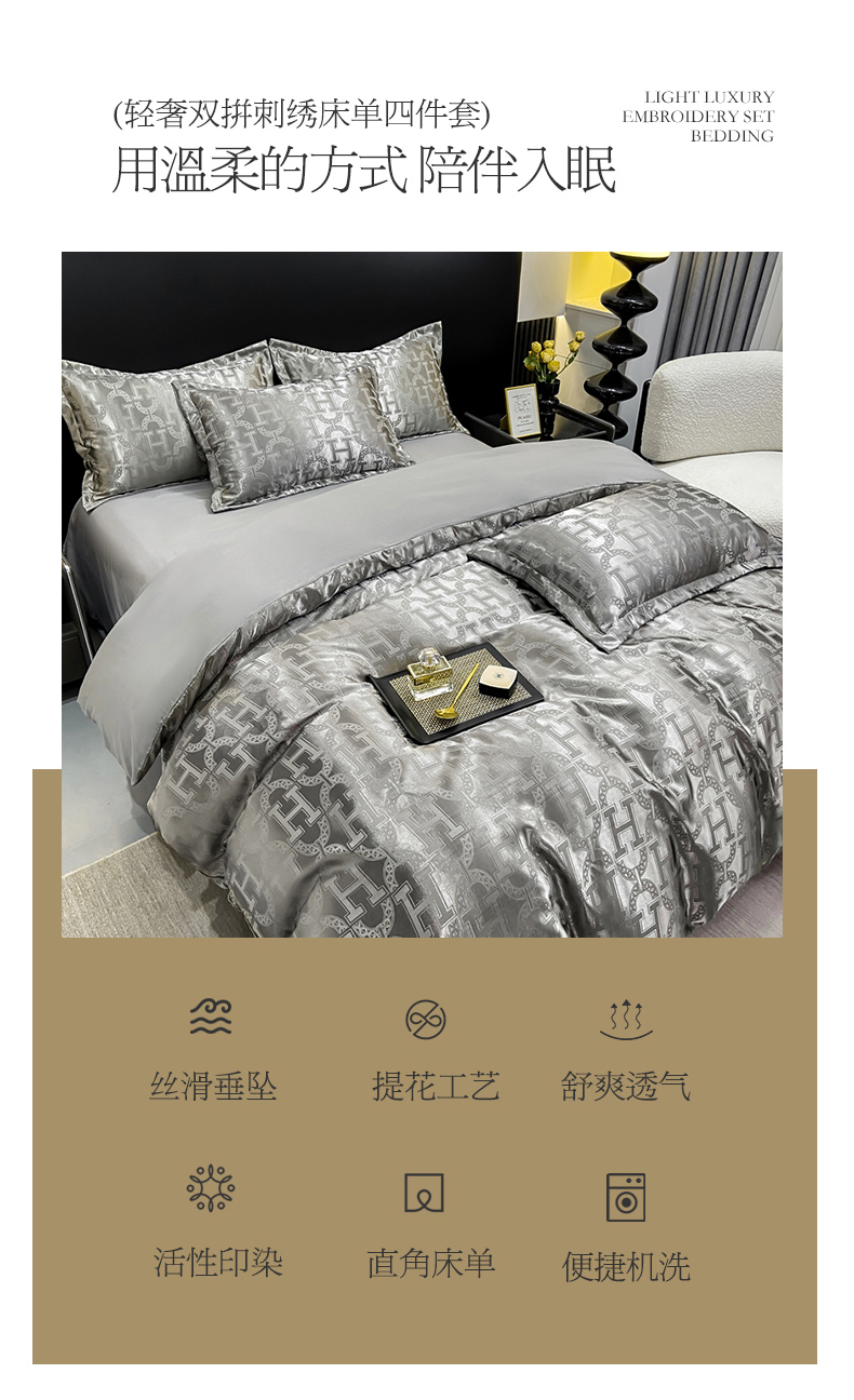 (总)莱欧纳家纺 2025新款提花夏被四件套,豆沙,灰色,香槟,紫色