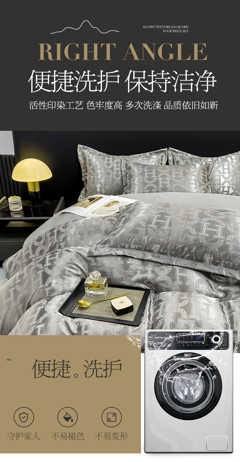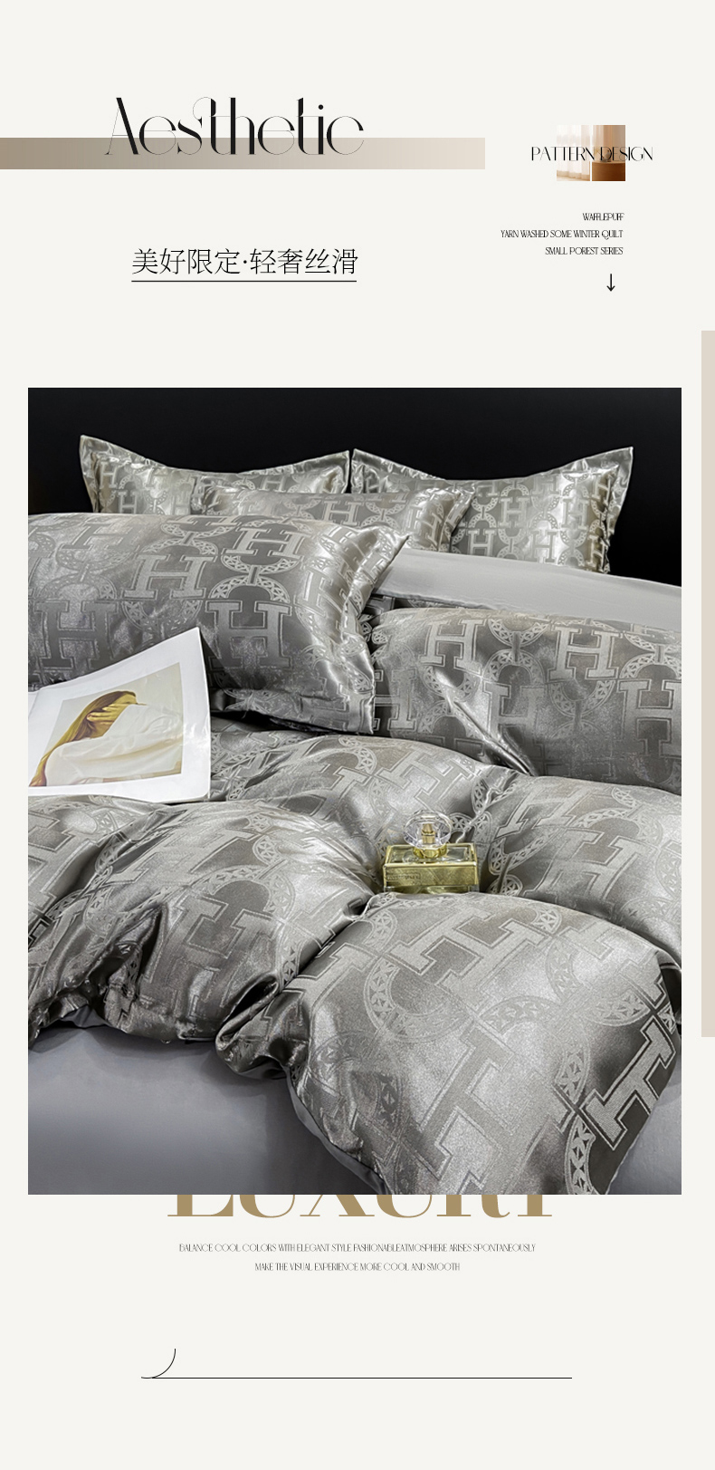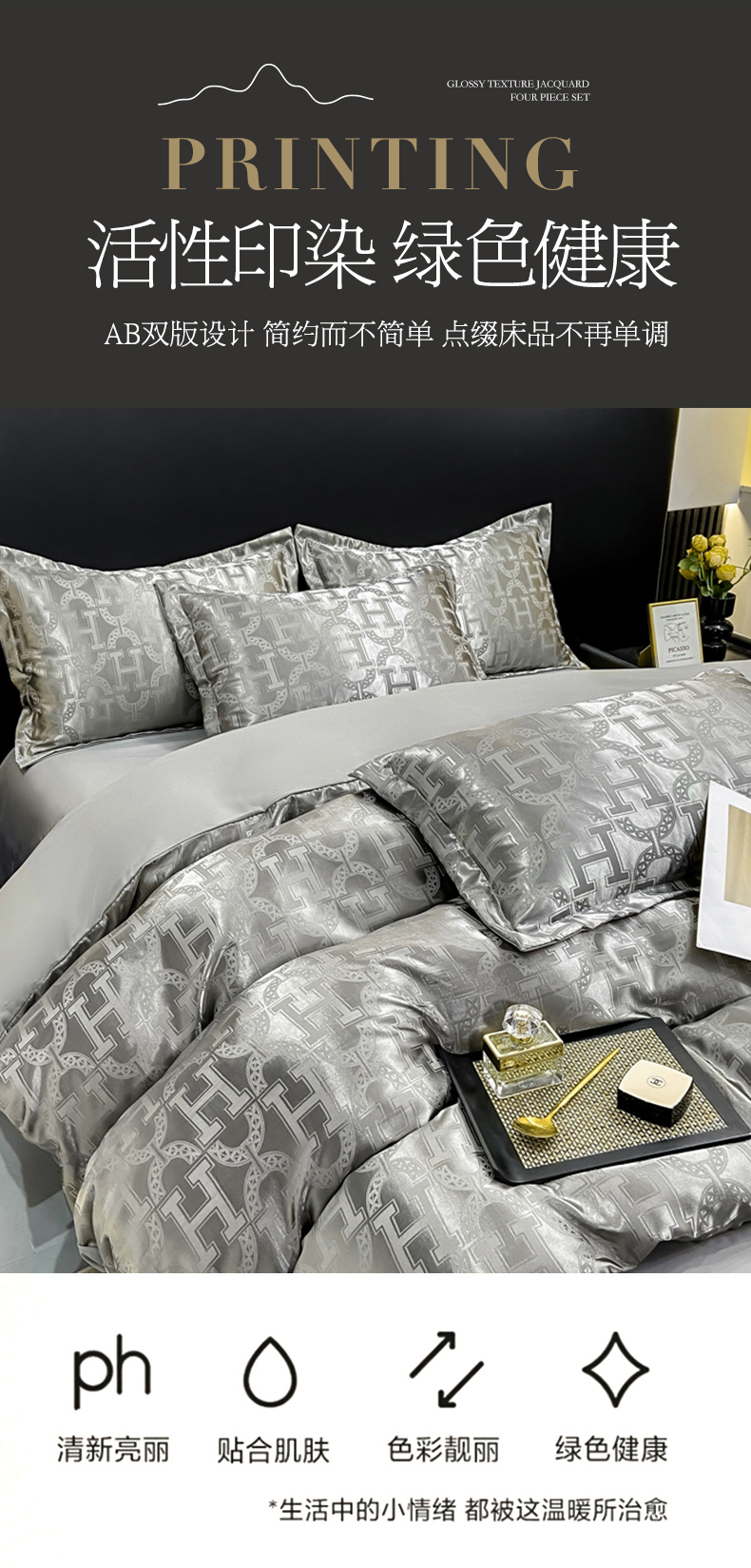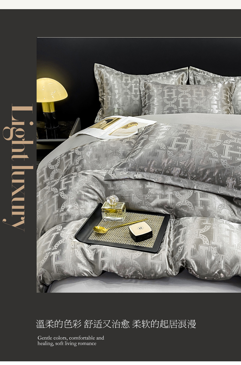 (总)莱欧纳家纺 2025新款提花夏被四件套,豆沙,灰色,香槟,紫色
