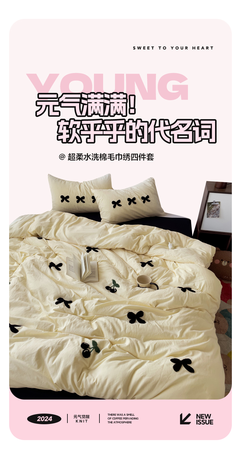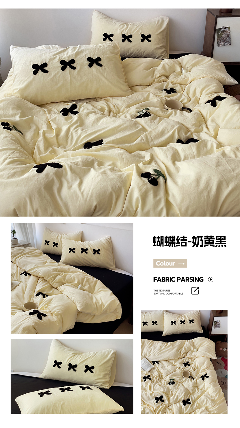 当前位置: 91家纺网 > 商品网购 > 床品套件 > 四件套 > 毛巾绣四件套 > 水墨江南 2024新款超柔水洗棉毛巾绣四件套-蝴蝶结 蝴蝶结-奶黄黑
