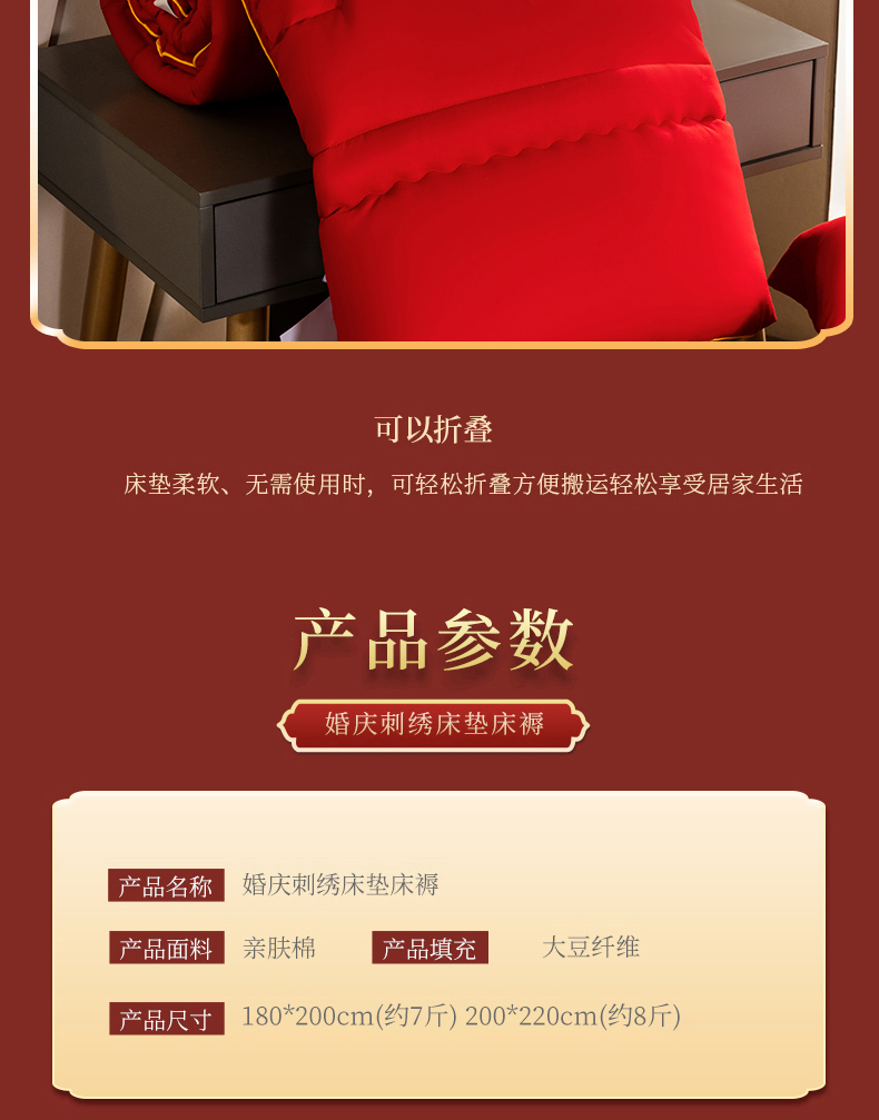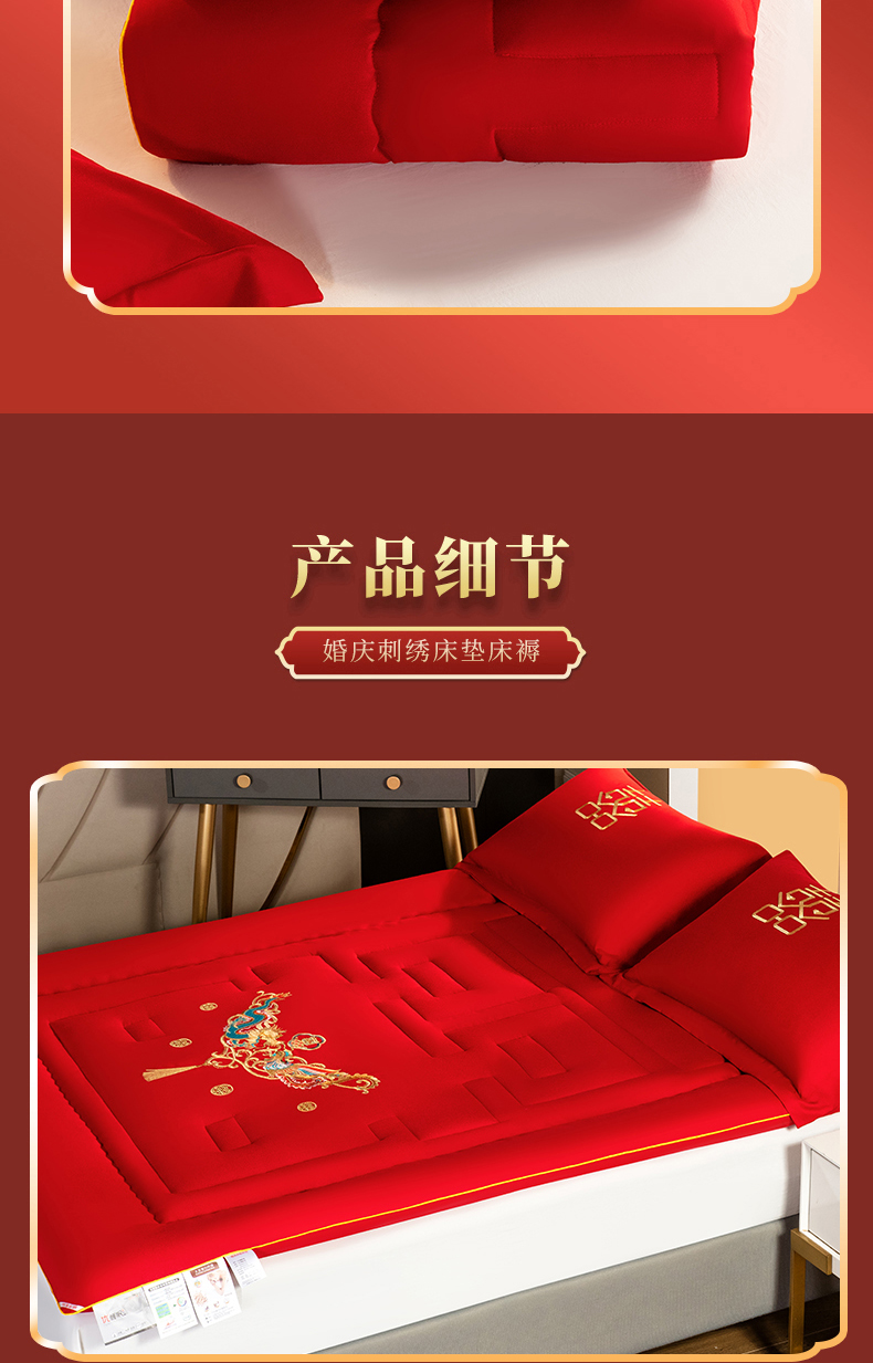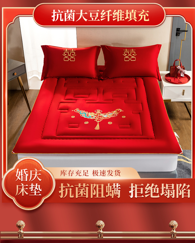 商品名称:玉雅家纺 2025新款婚庆绣花结婚棉花大豆床垫床褥加厚垫被 大豆床垫-金玉龙凤
